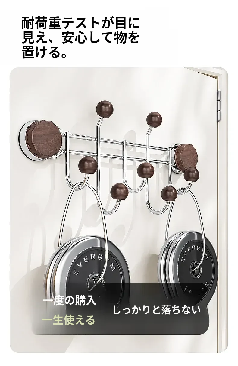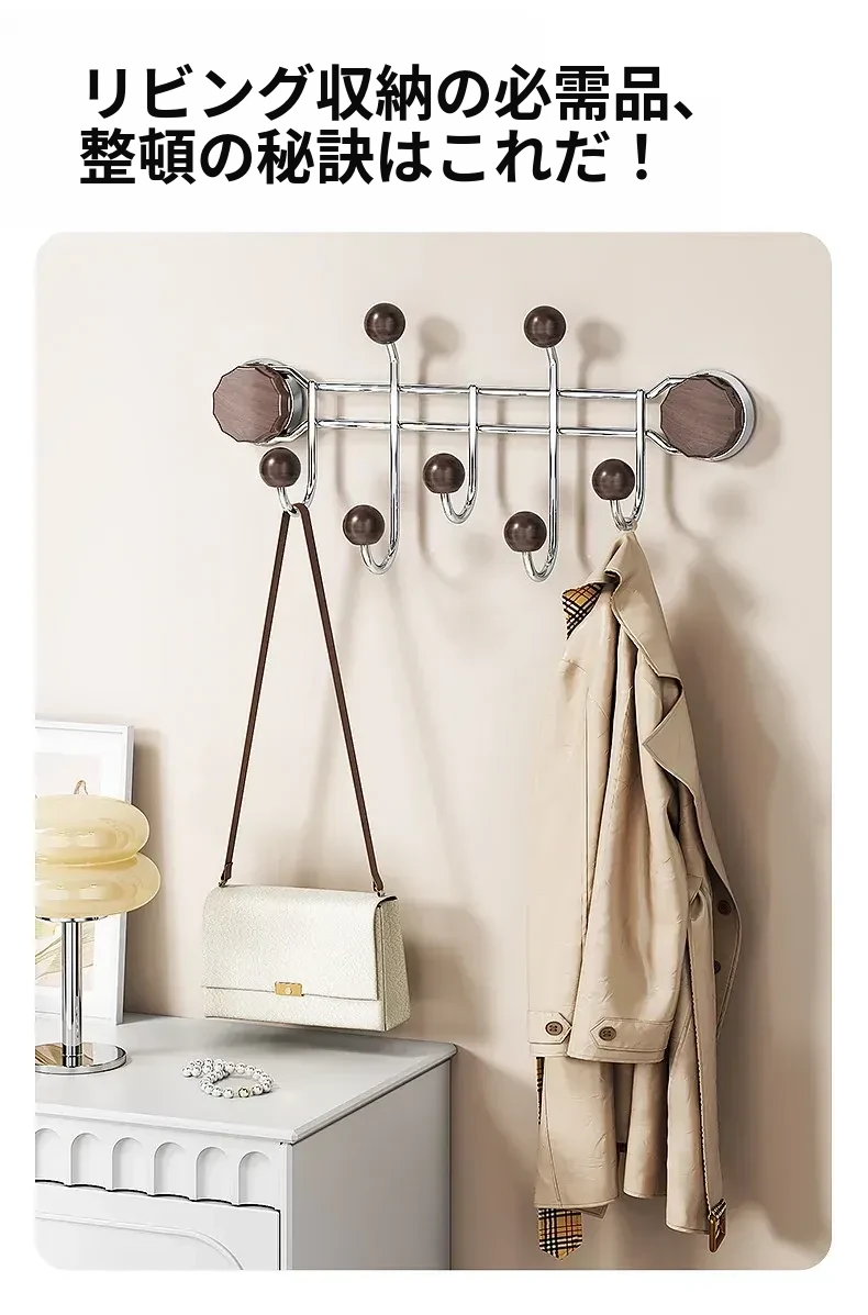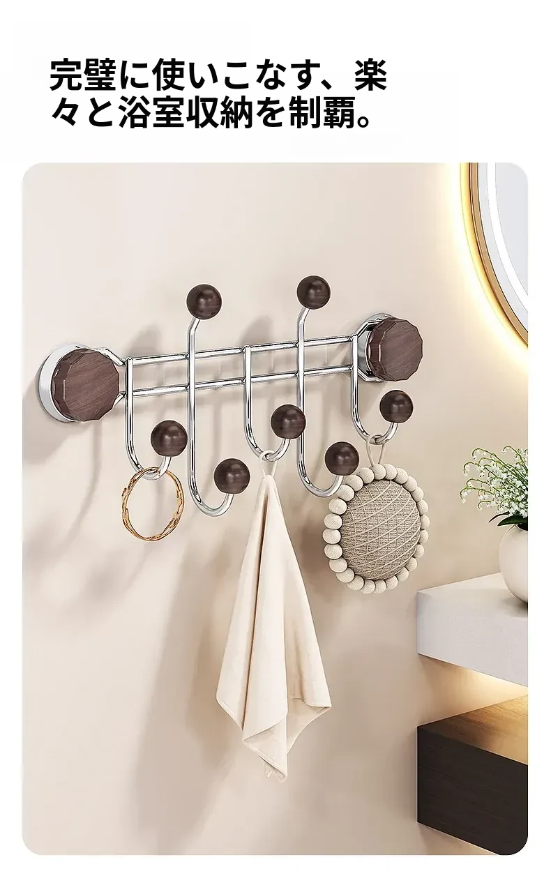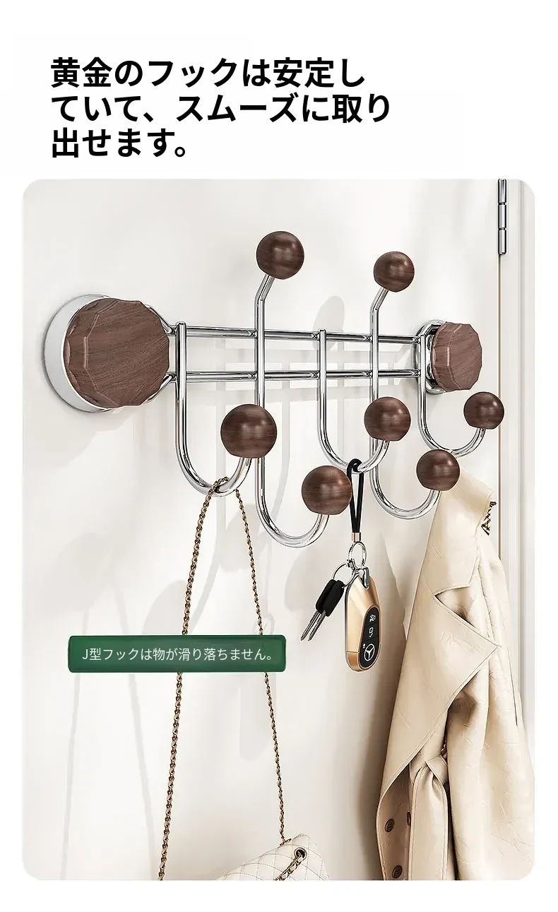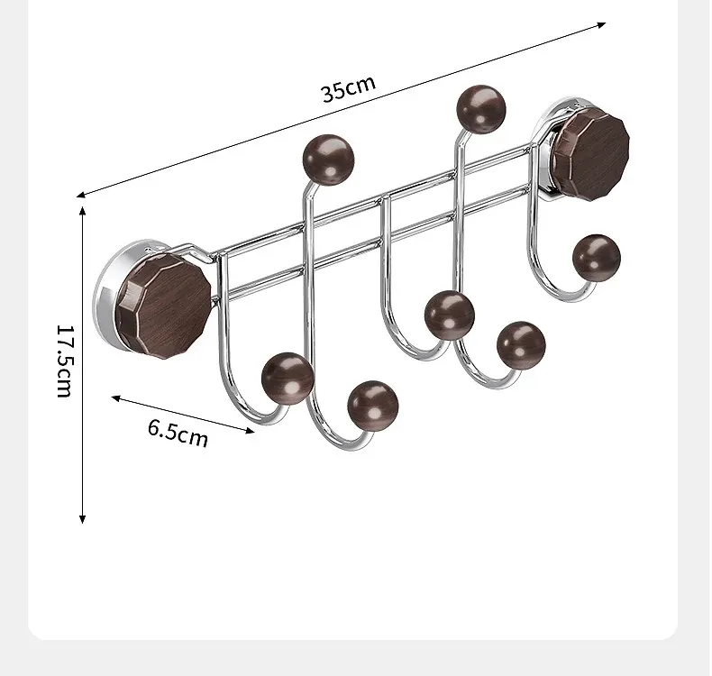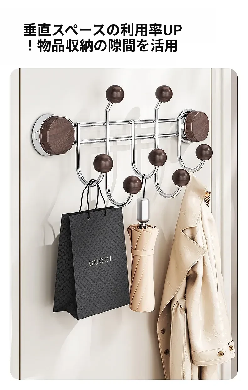 胡桃木目調【排フック】吸盤式