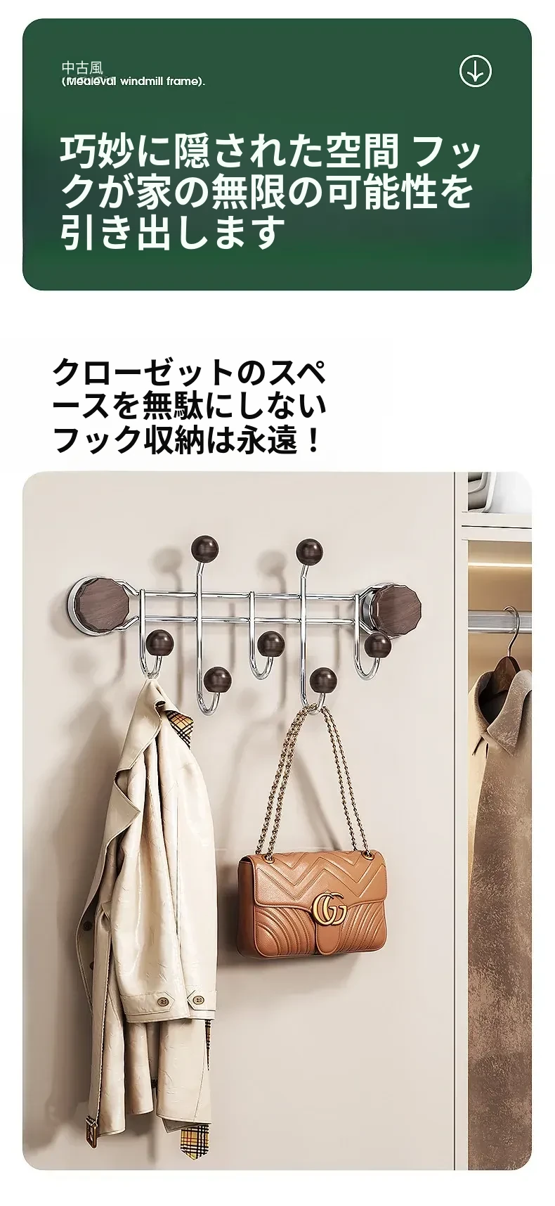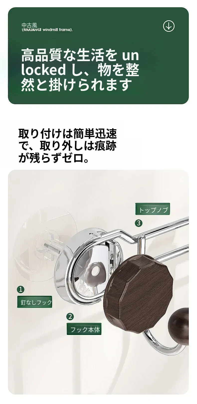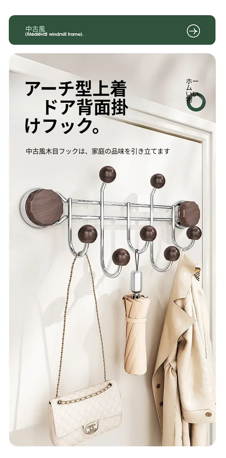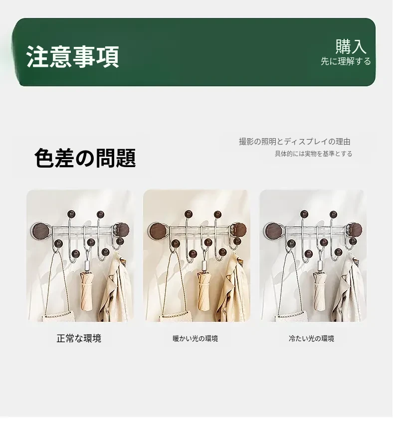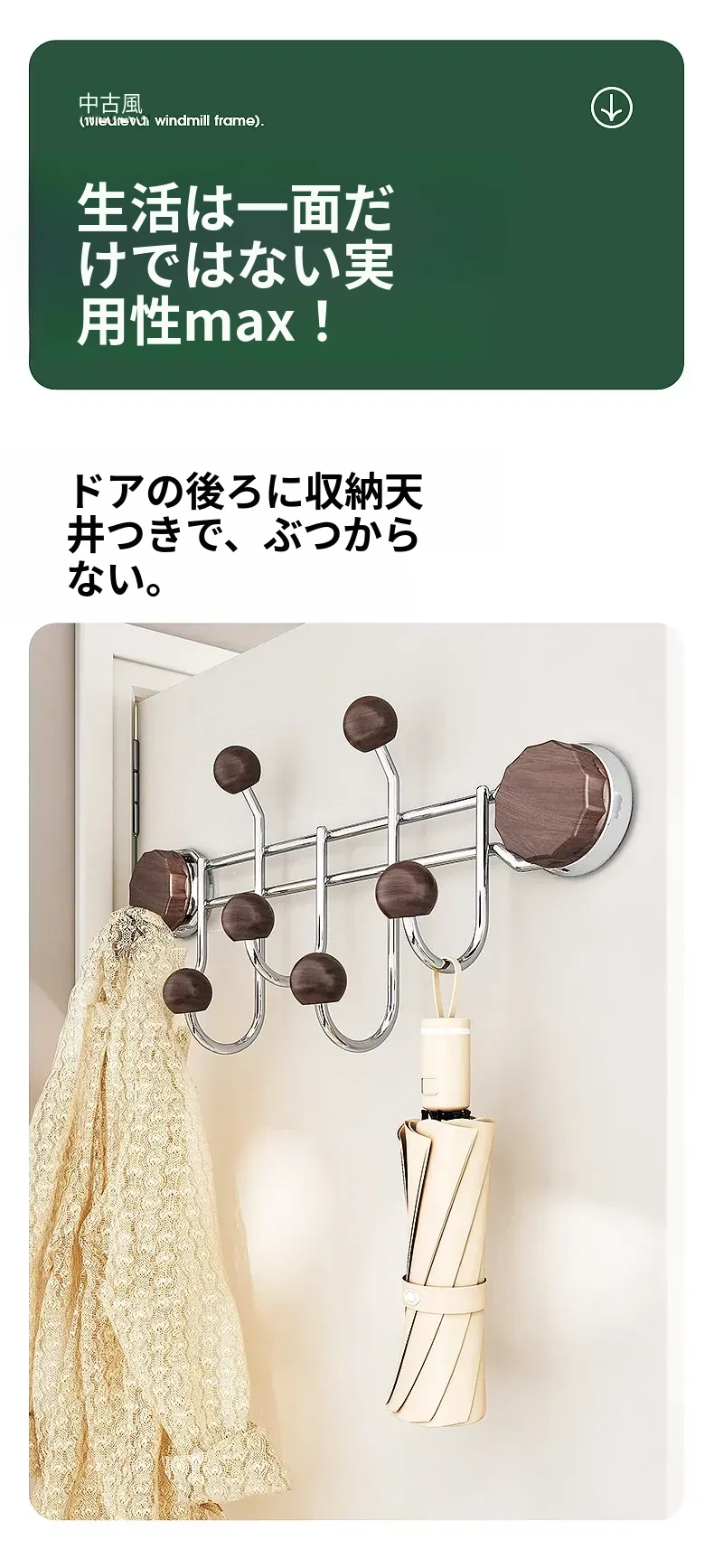 胡桃木目調【排フック】吸盤式