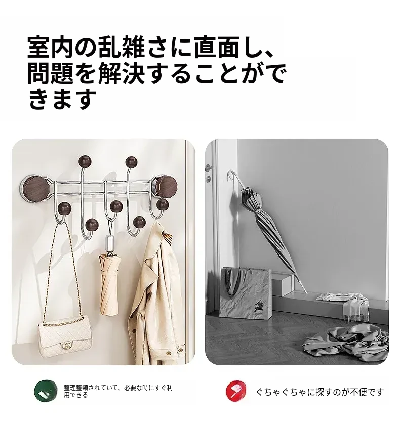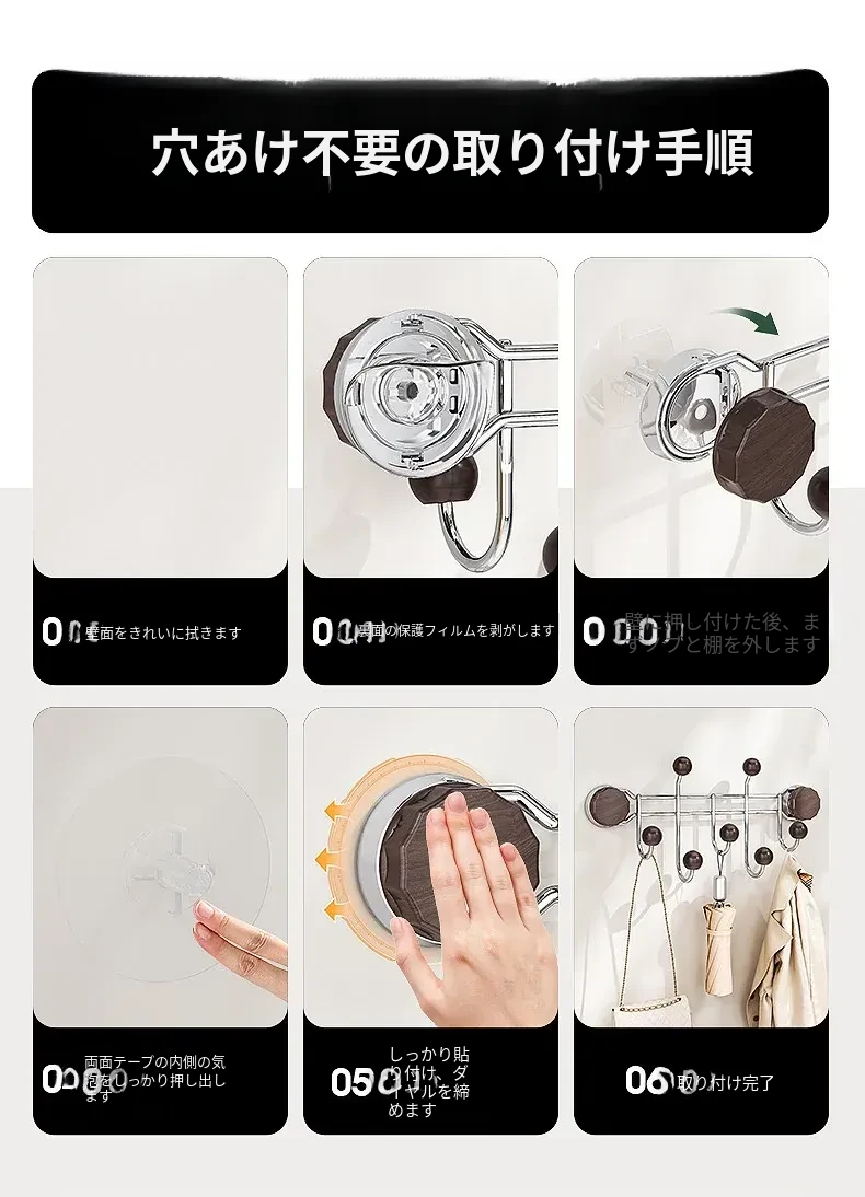 穴あけ不要!強力吸着の回転フック - 壁やドアに簡単取り付け、傷跡なしで衣類をしっかり支える!無痕粘着フックでお部屋をスッキリ整理。