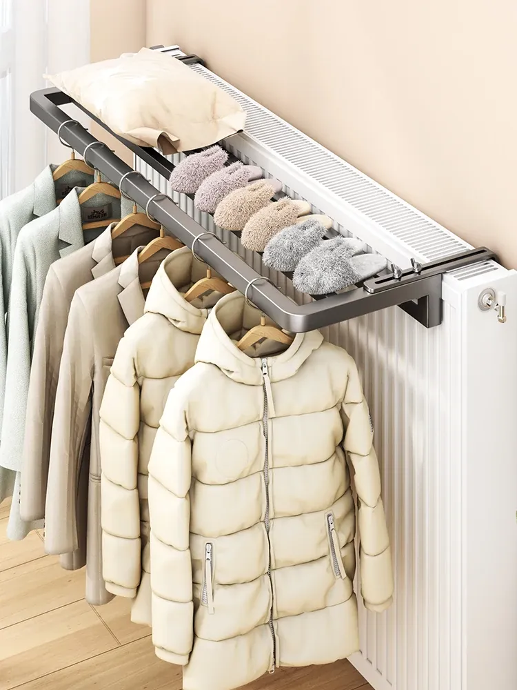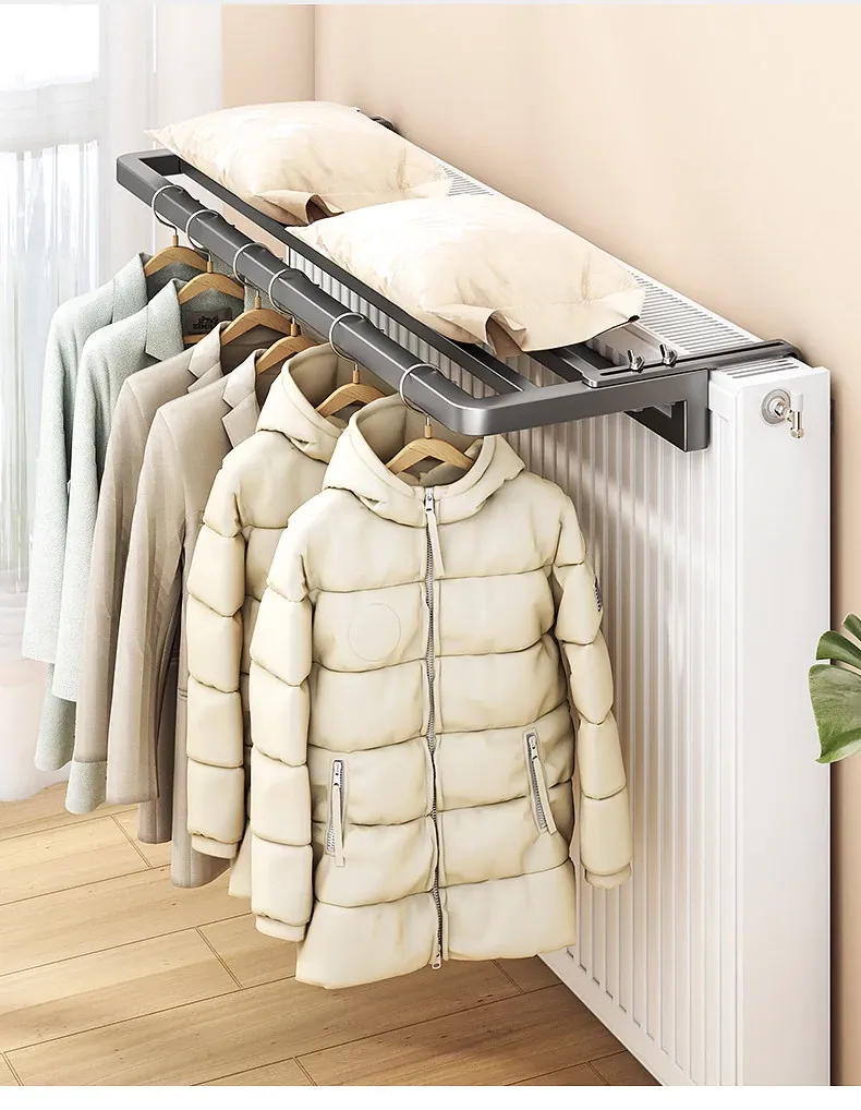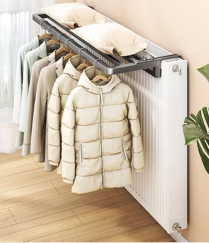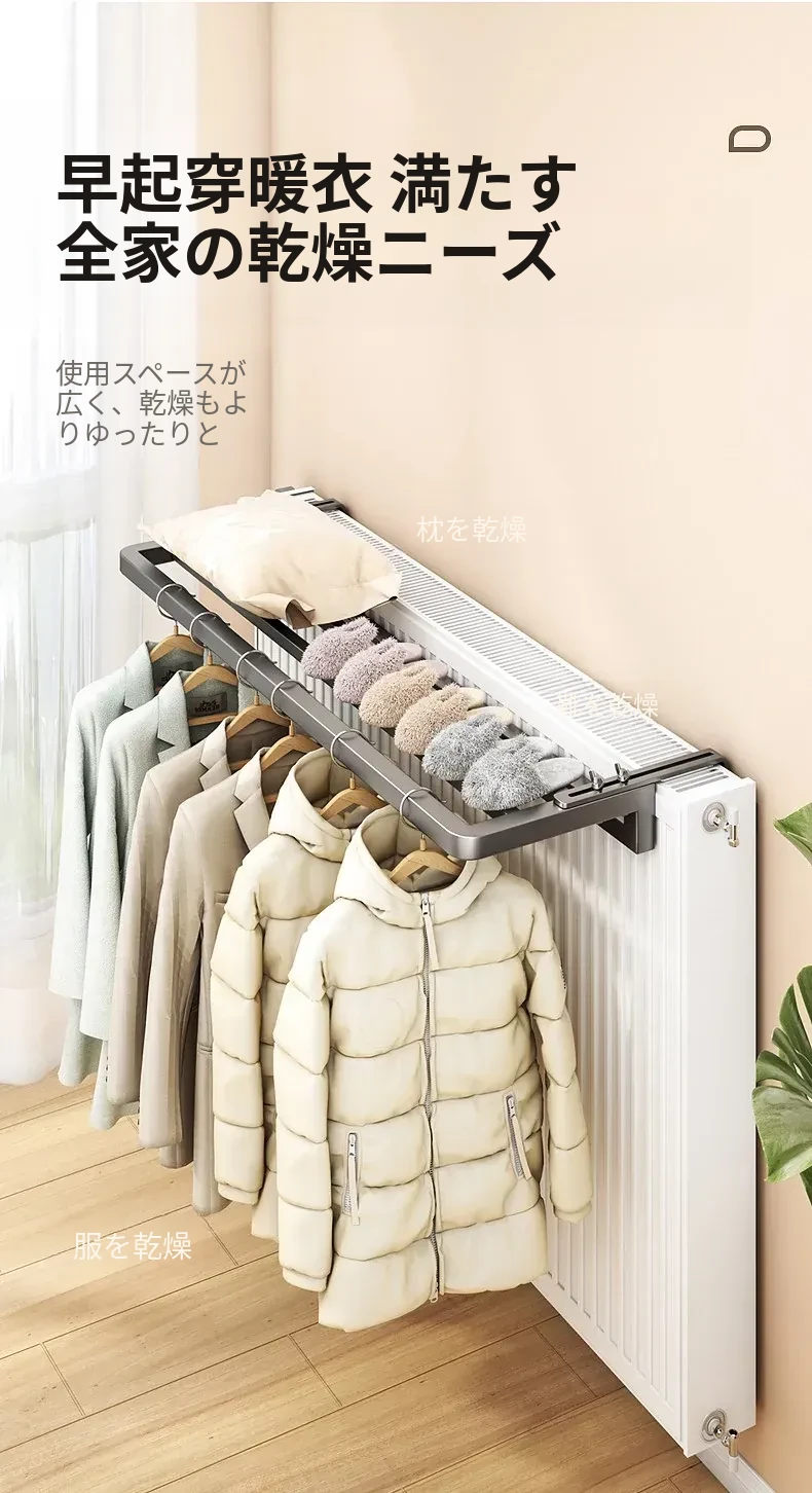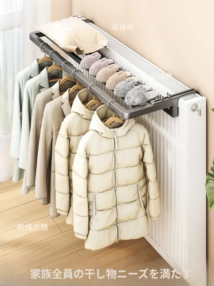 暖房用!暖気パイプ専用の洗濯物干しラック – 窓のガード付き、伸縮可能で便利な乾燥・干しラック!冬でも衣類をしっかり乾かせる理想的なアイテムです。