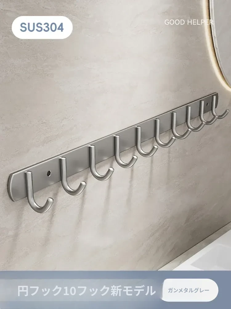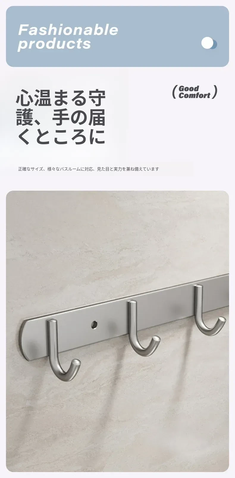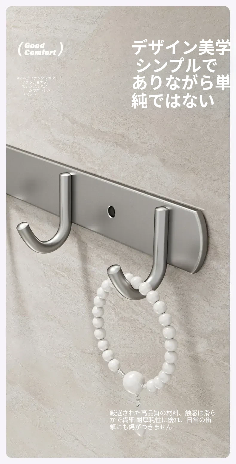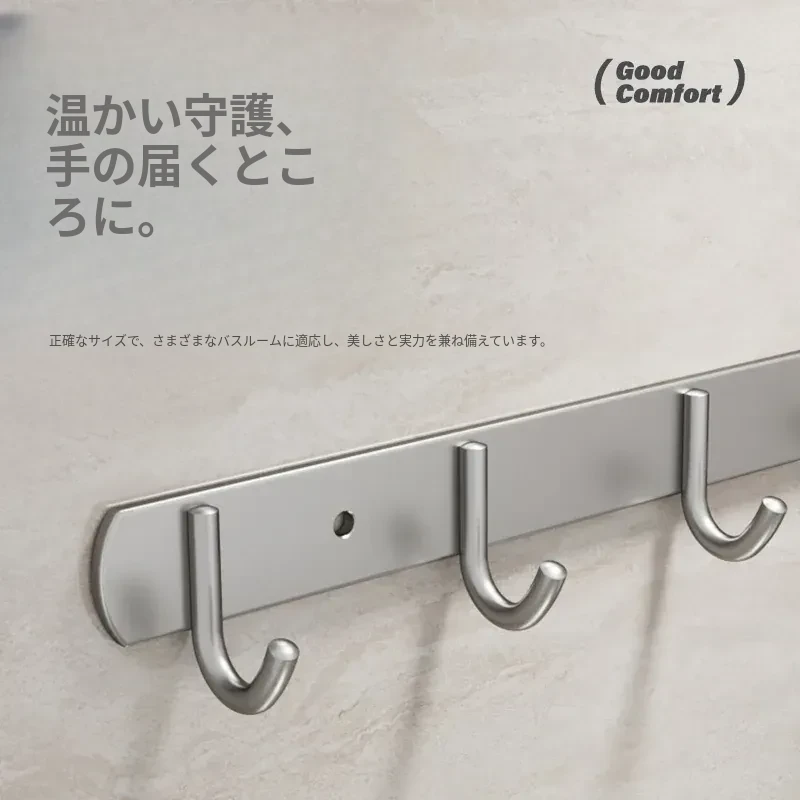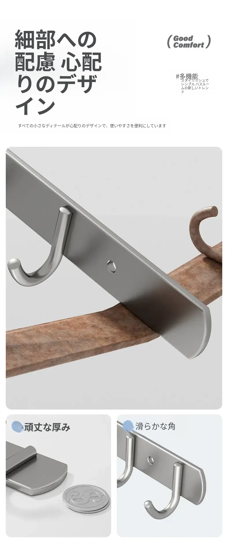 ステンレス製フック 取り付け不要の強力粘着バスルーム用コートフック キッチン壁掛け式壁面粘着フック 一列収納でスペースを有効活用!