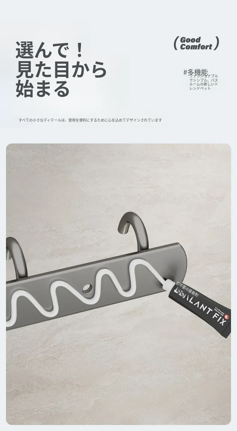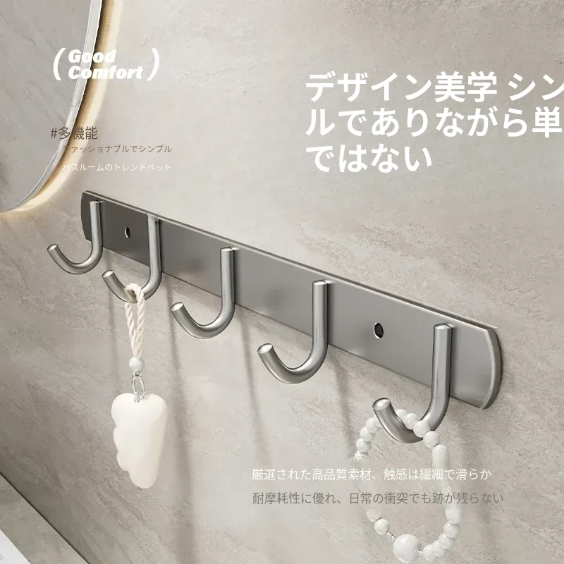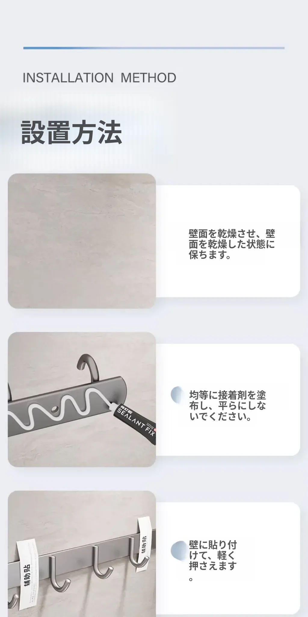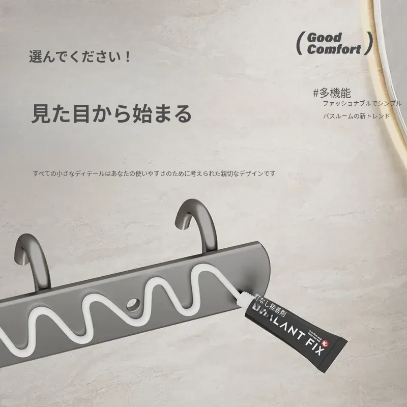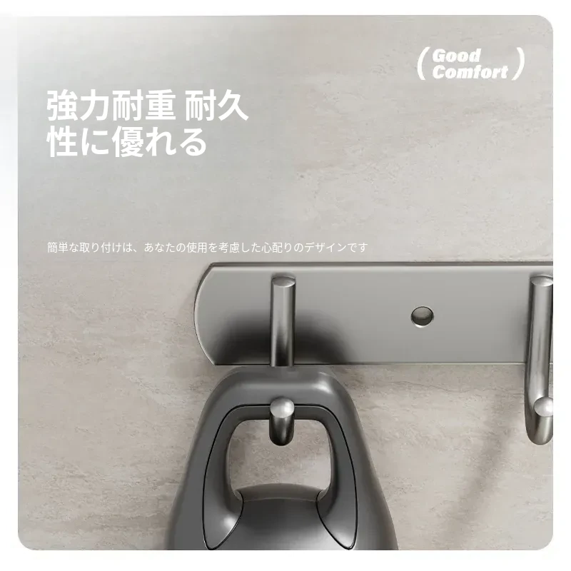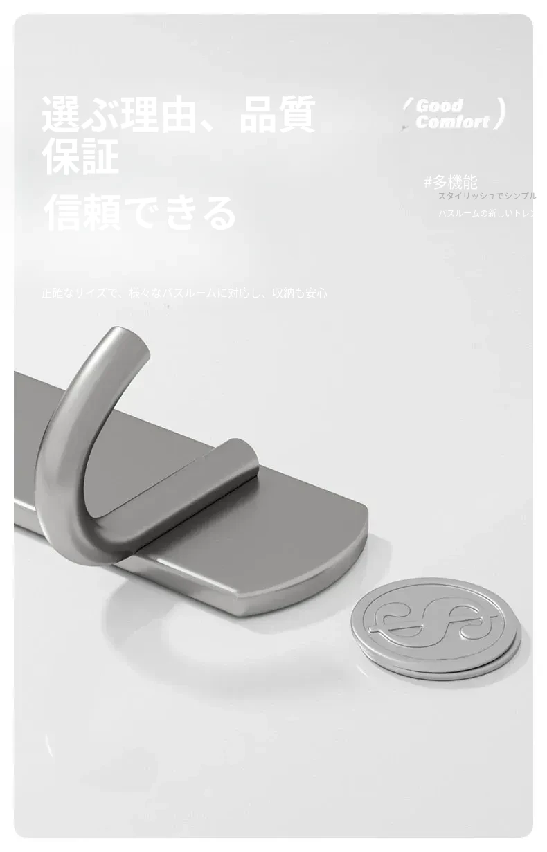 ステンレス製フック 取り付け不要の強力粘着バスルーム用コートフック キッチン壁掛け式壁面粘着フック 一列収納でスペースを有効活用!