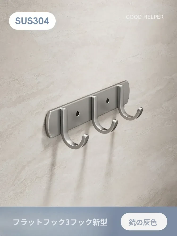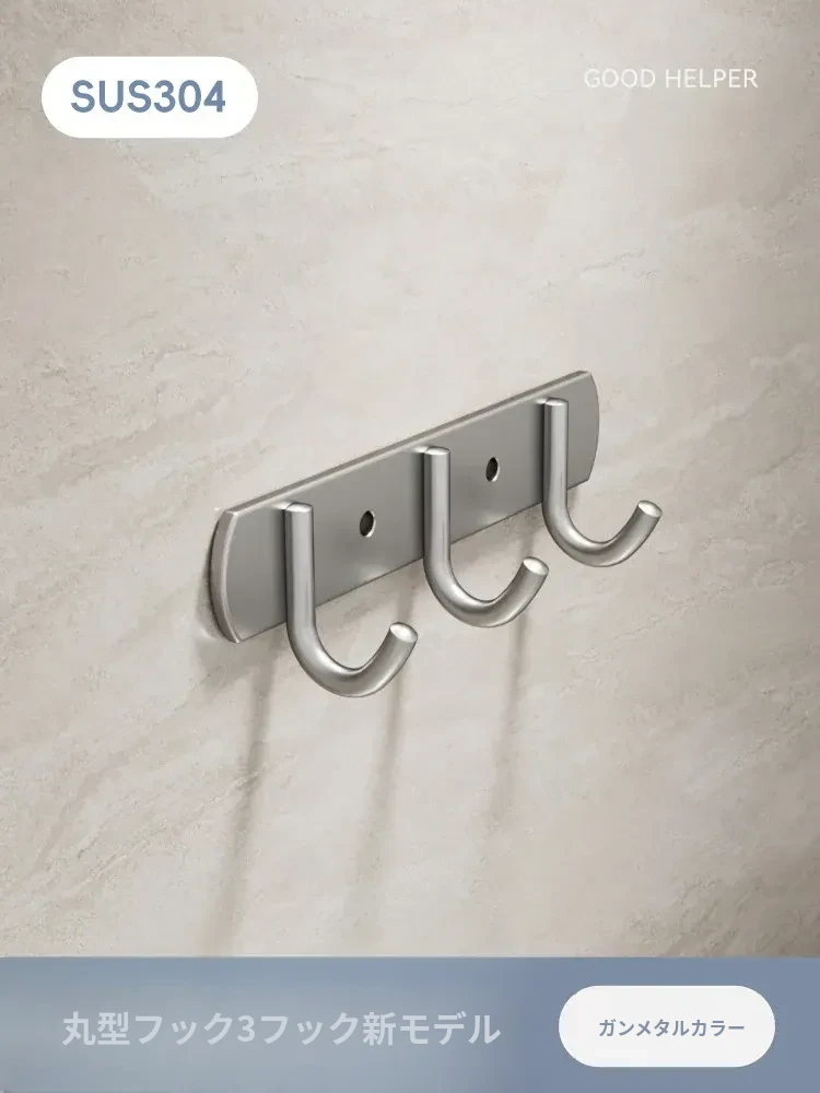 ガンメタリック【新型ラウンドフック3フック】 太くて厚く、強い耐荷重