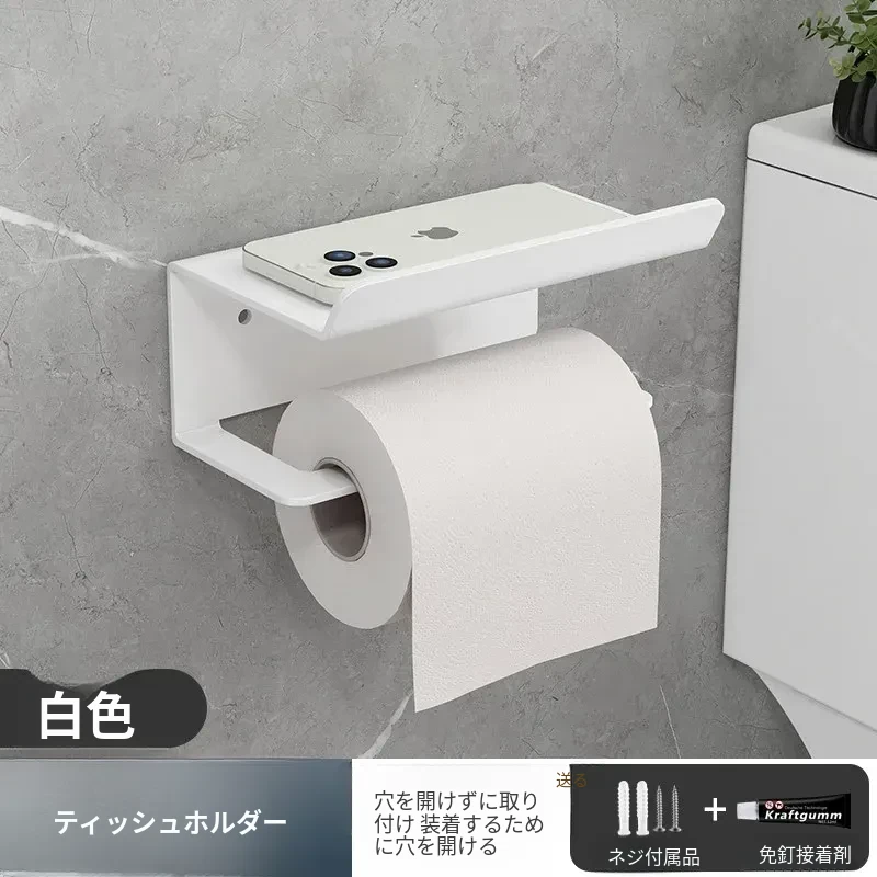 ホワイト-ラック+ティッシュロールラック