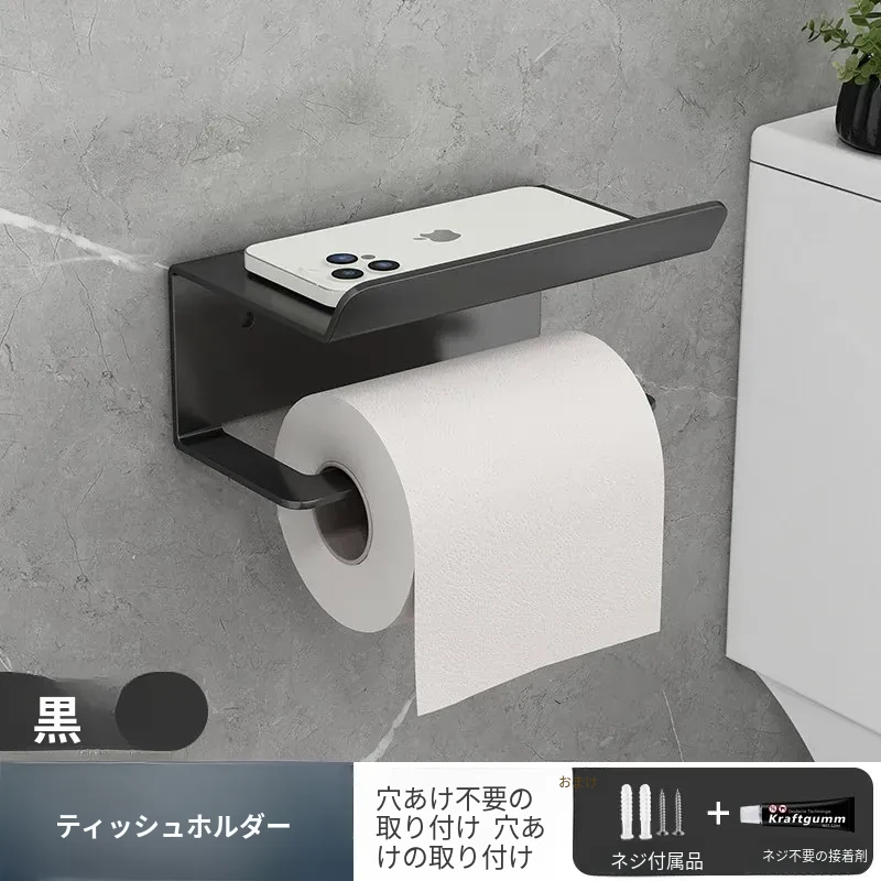 ブラック-ラック+ティッシュロールラック