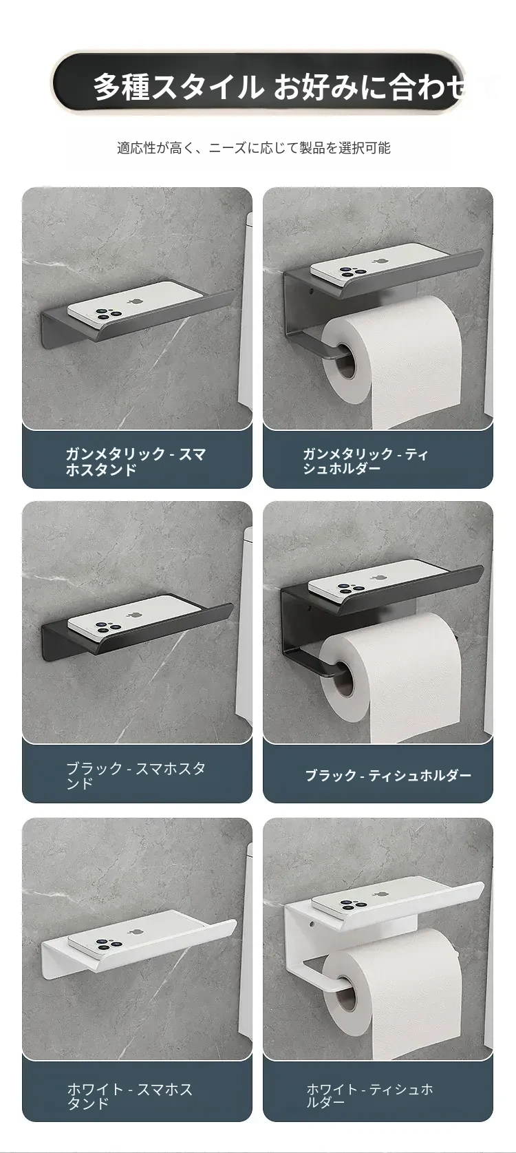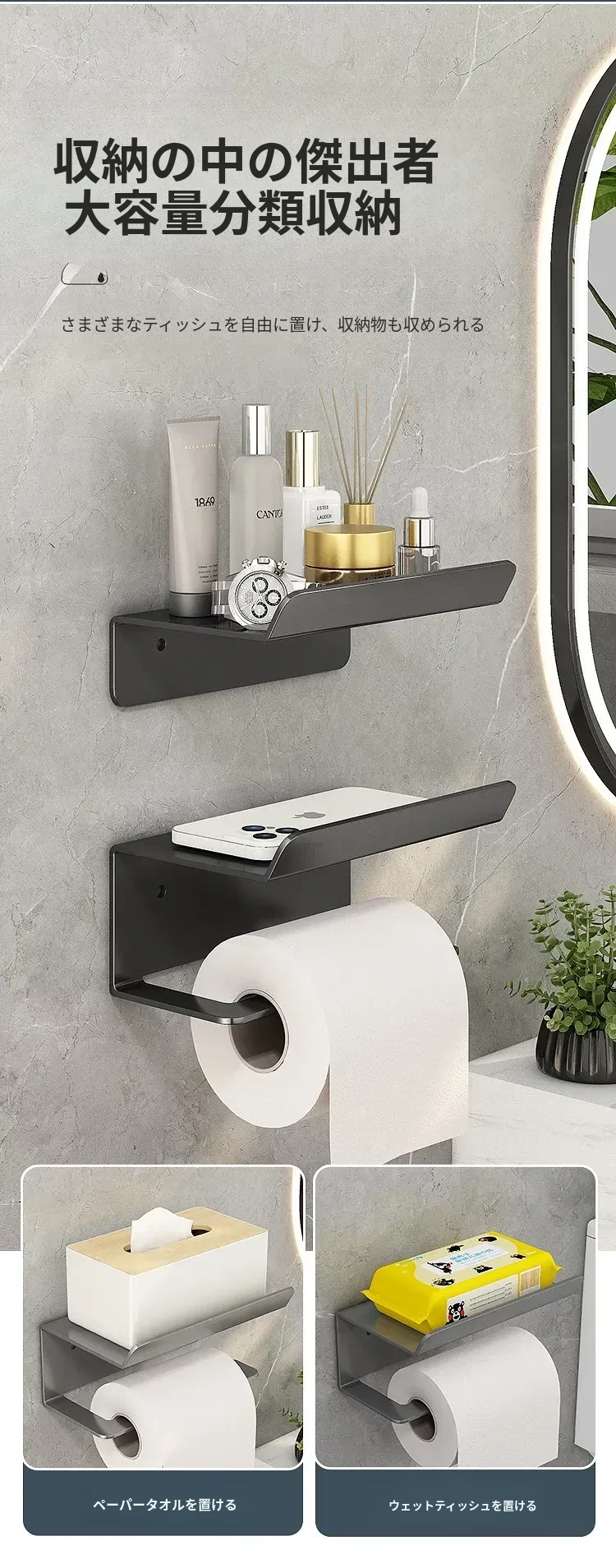 ガンメタル-ラック+ティッシュロールラック
