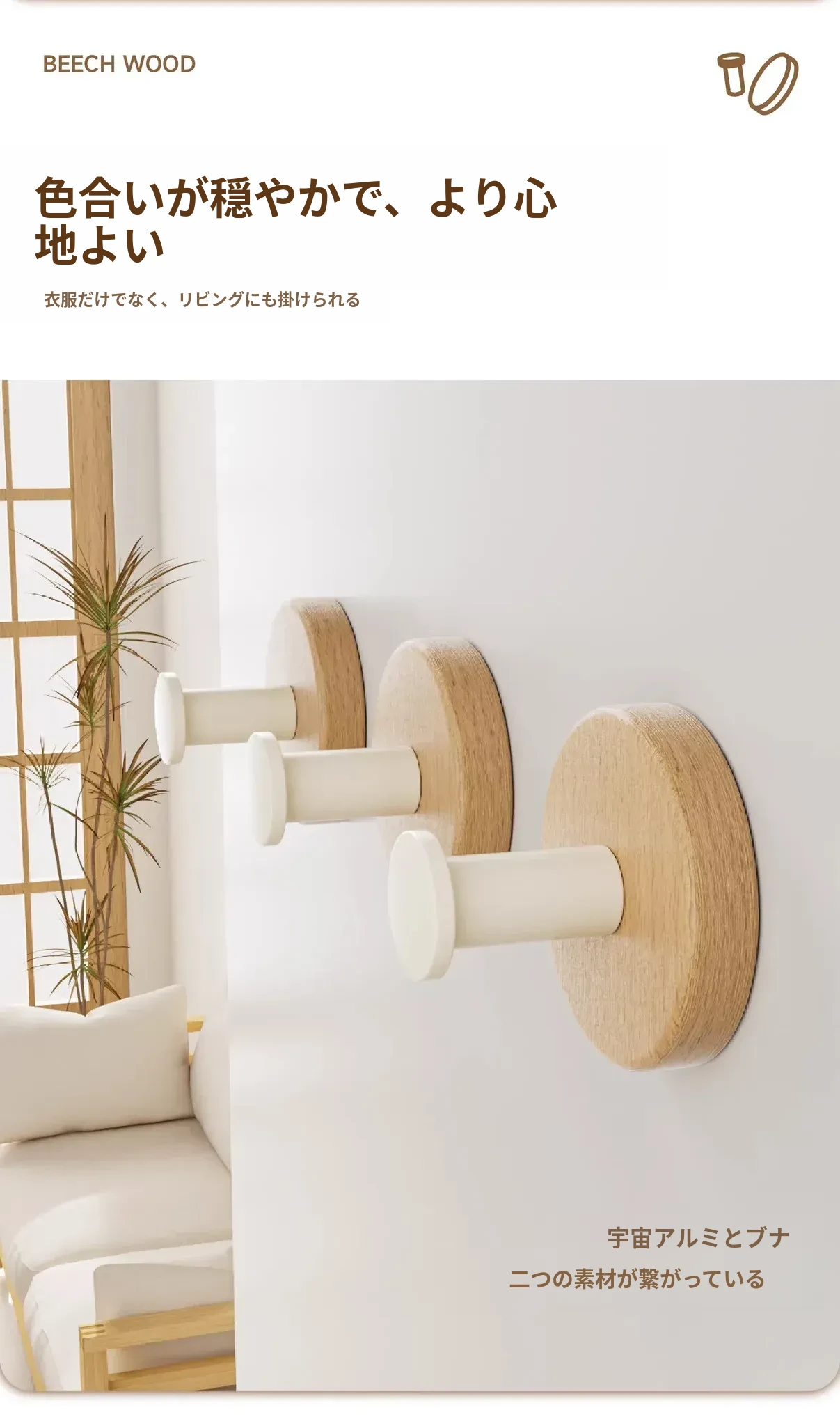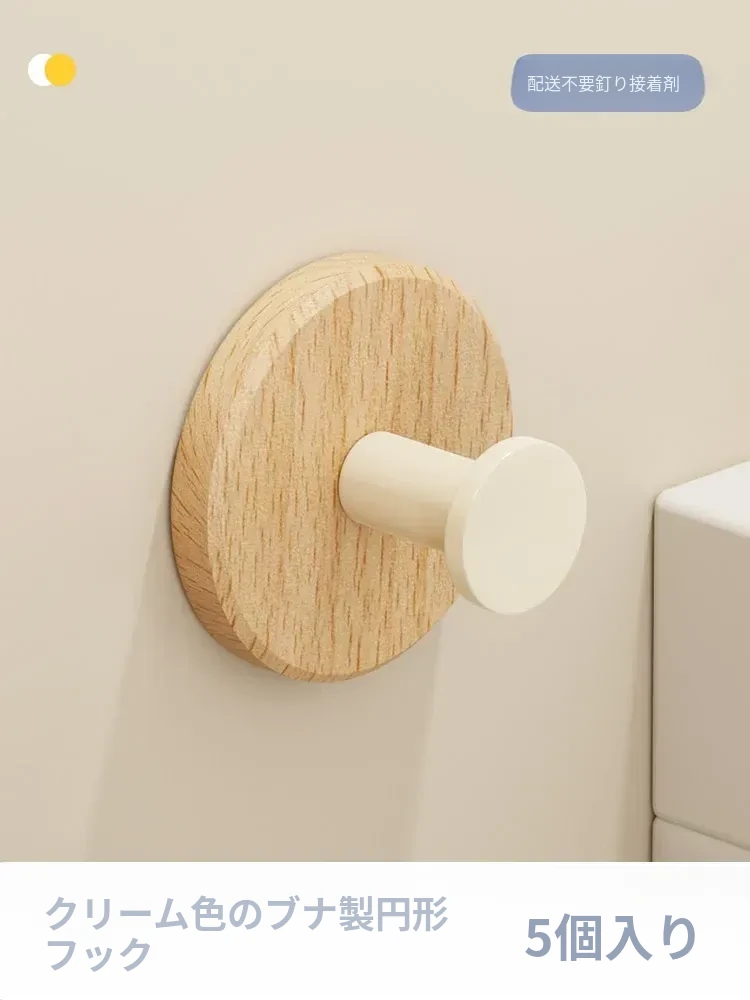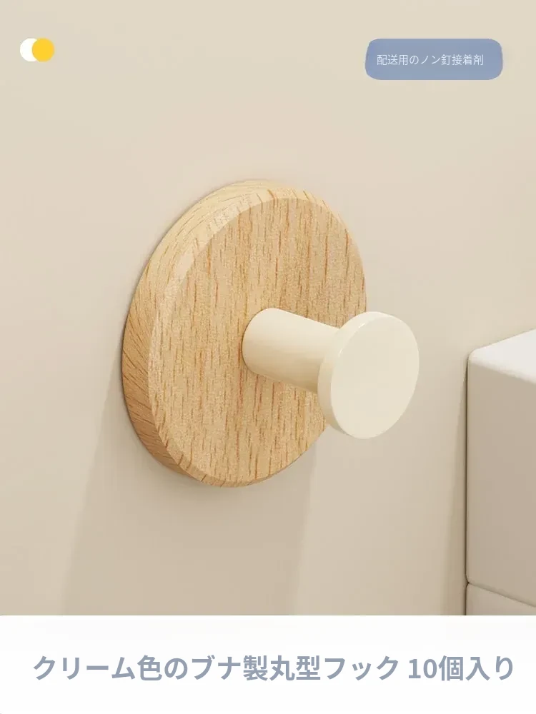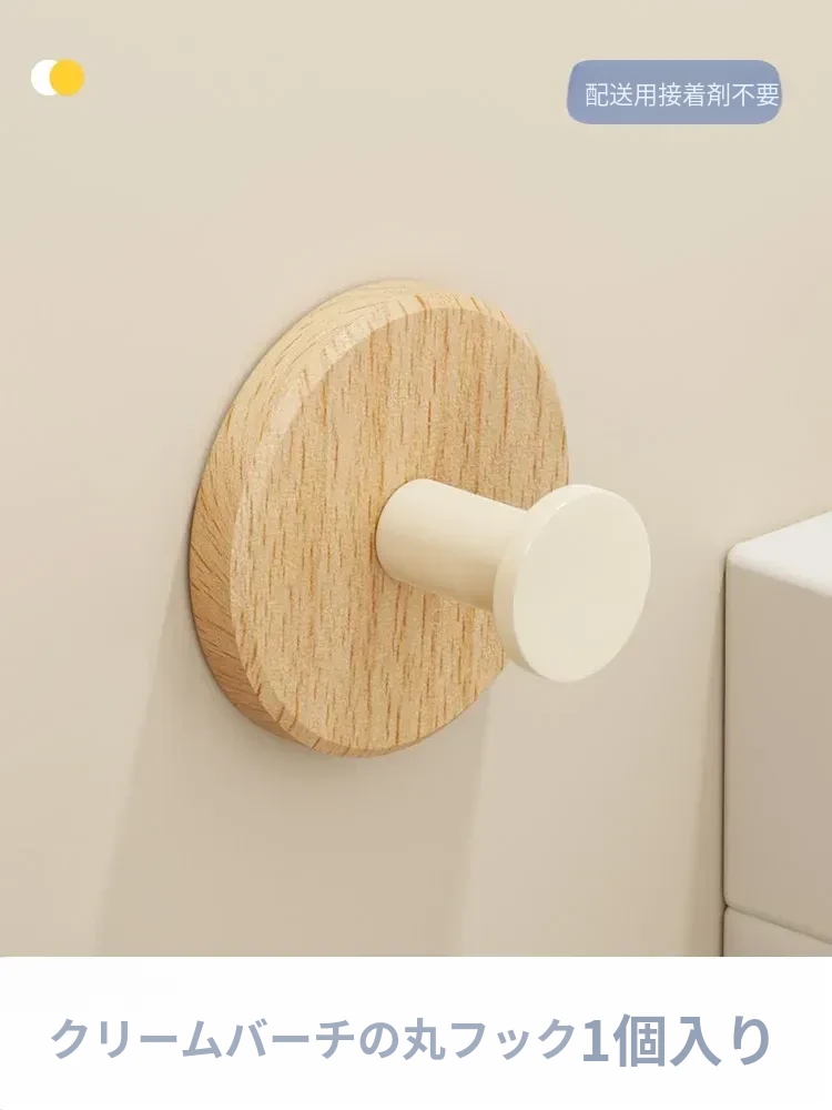 強力粘着フック!穴を開けずに使えるクリーム風フック。ドアの裏や壁に最適な衣類、タオル、帽子用ハンガー。木製デザインでおしゃれに収納!