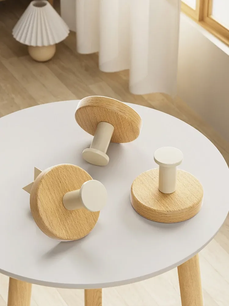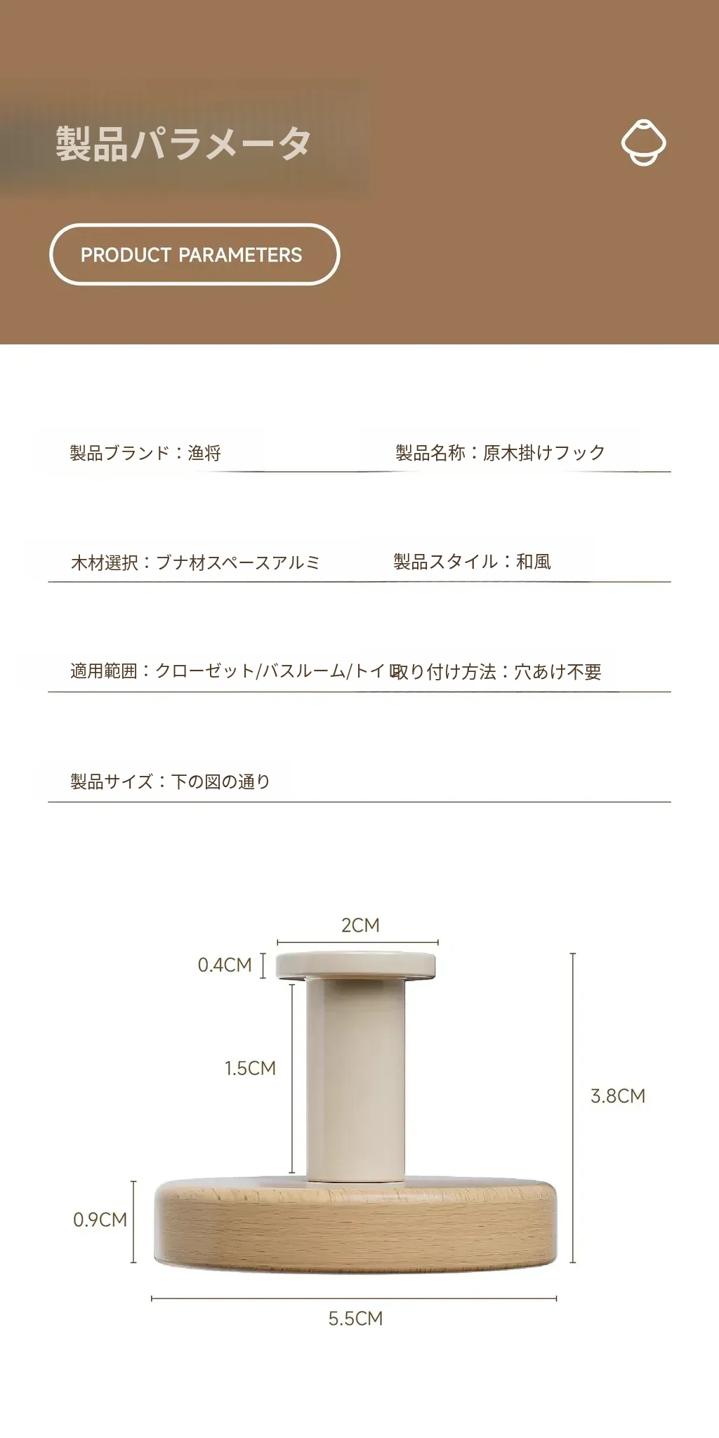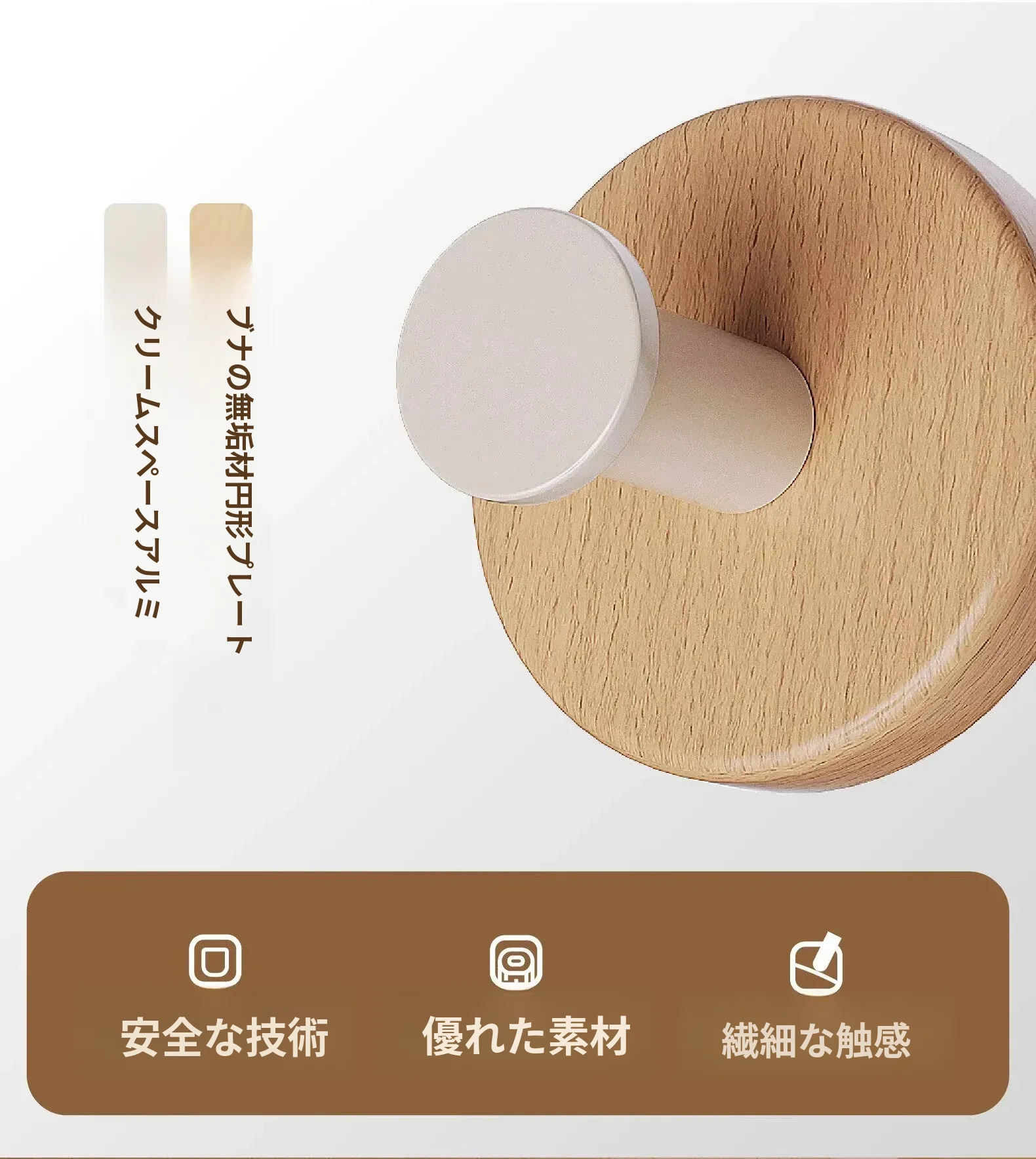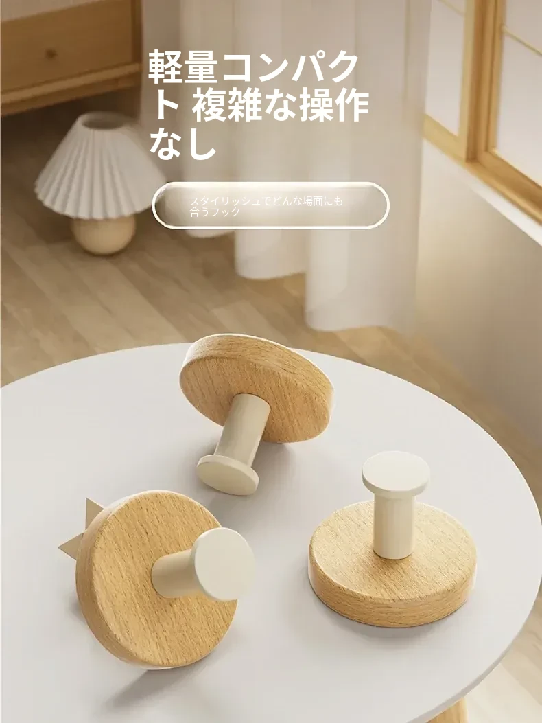 強力粘着フック!穴を開けずに使えるクリーム風フック。ドアの裏や壁に最適な衣類、タオル、帽子用ハンガー。木製デザインでおしゃれに収納!