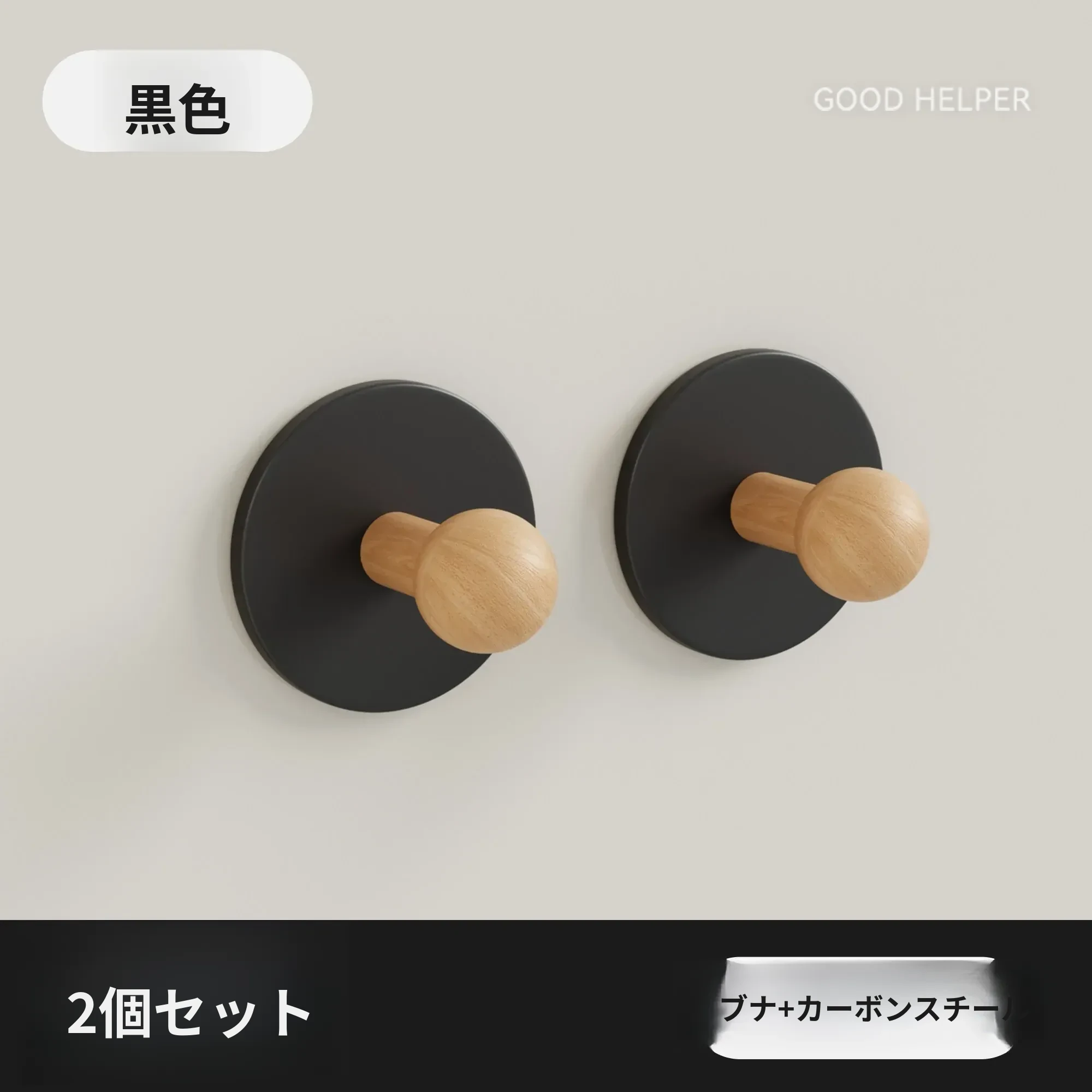 黒色-ブナ【丸型フック2個入り】