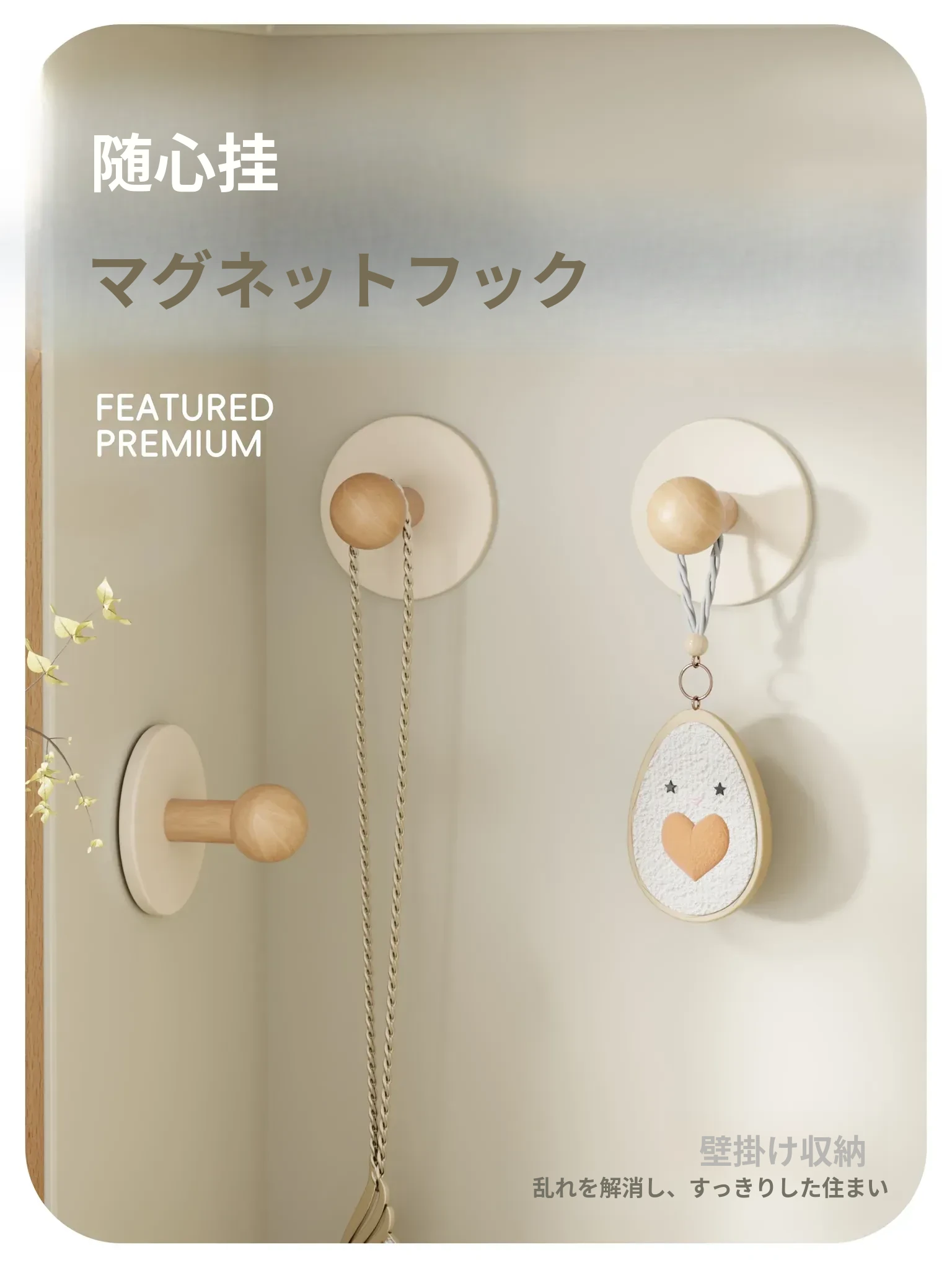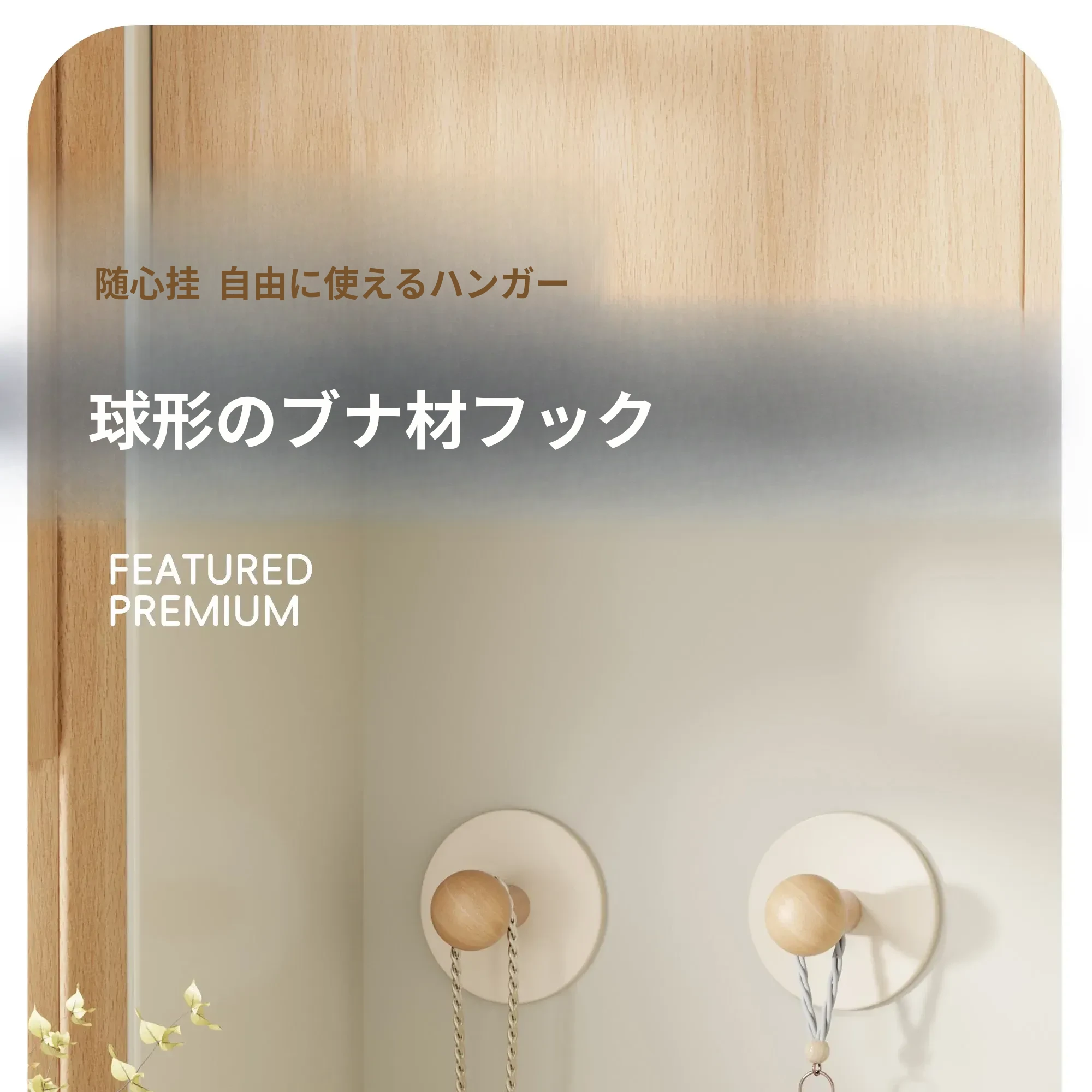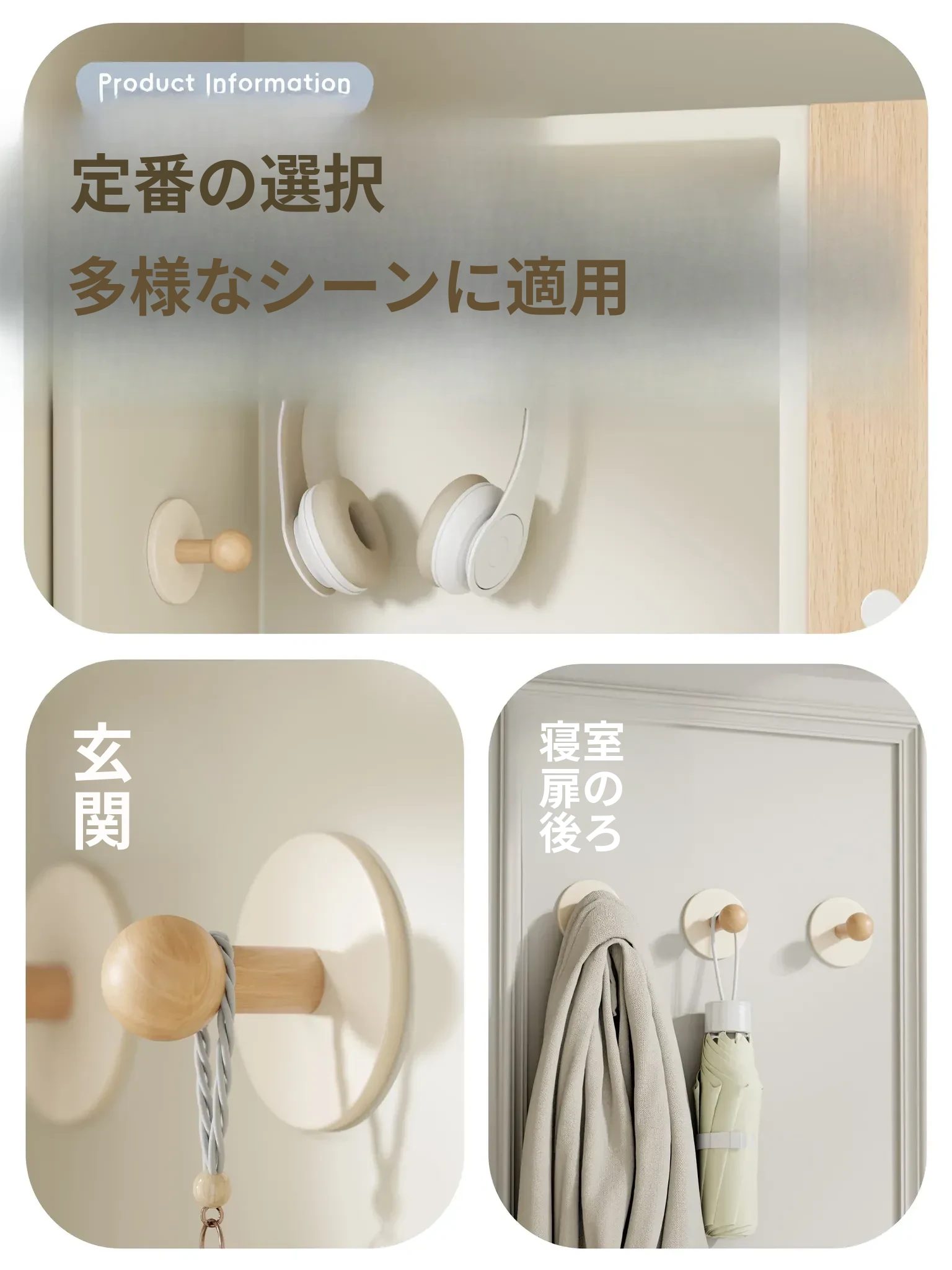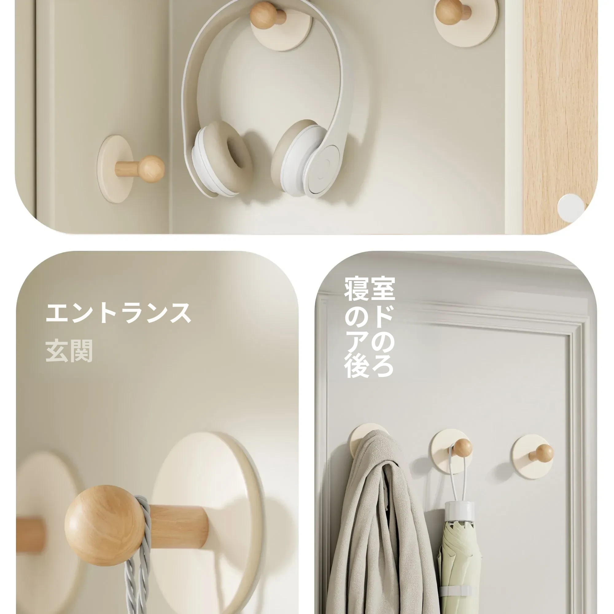 強力粘着フック - 取り付け不要!バスルームドアの後ろに最適なクリーム風デザイン。タオルや衣類をスマートに収納!壁にぴったり貼り付けることができる実木製のスタイリッシュなフック。