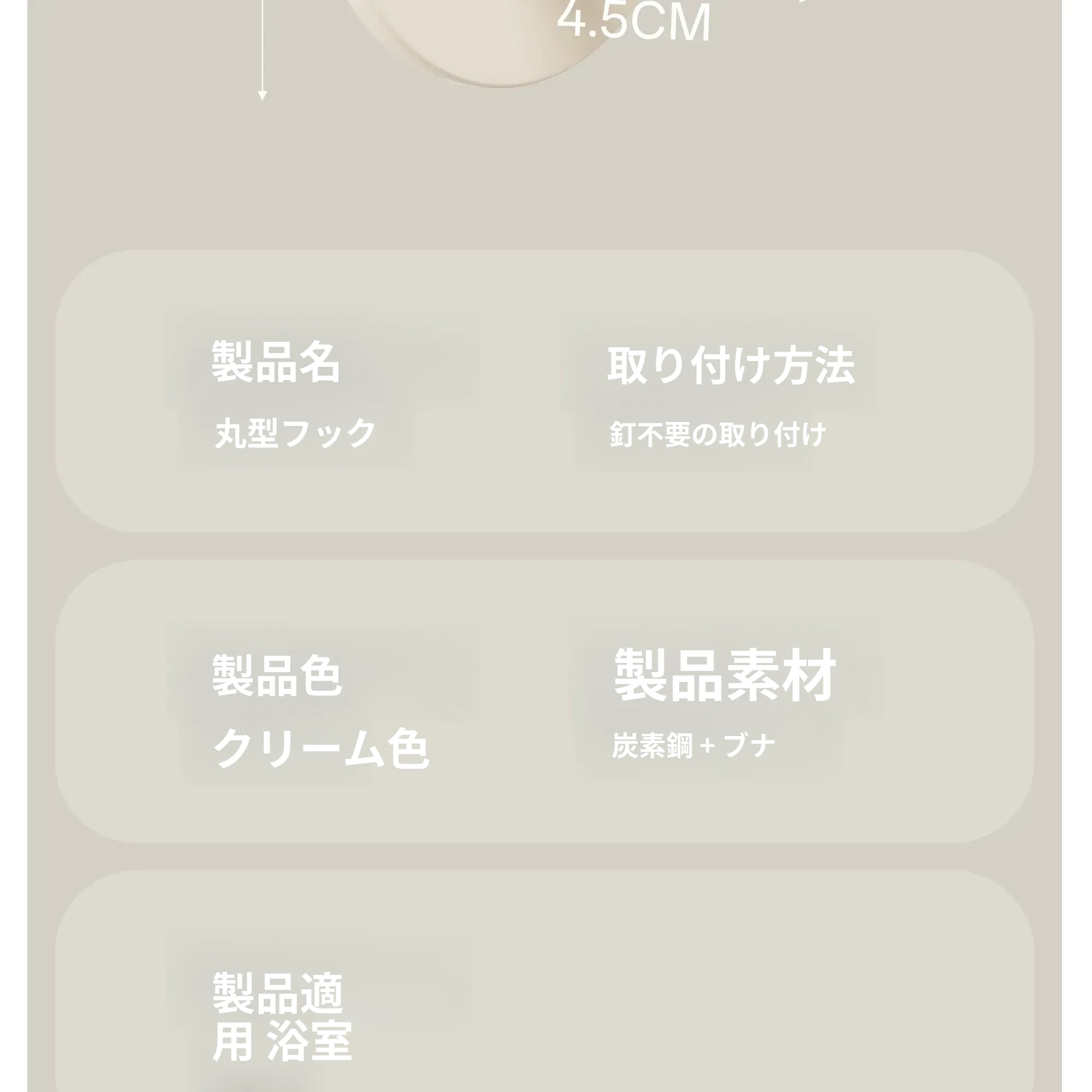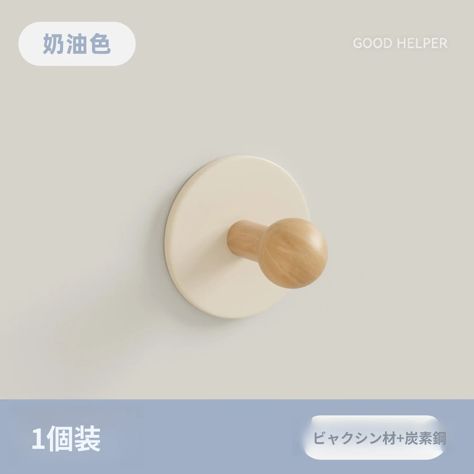 クリーム色-ブナ【丸型フック1個入り】
