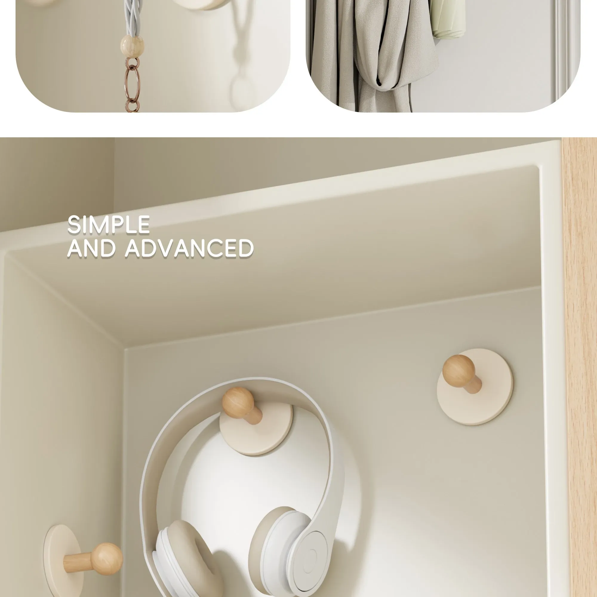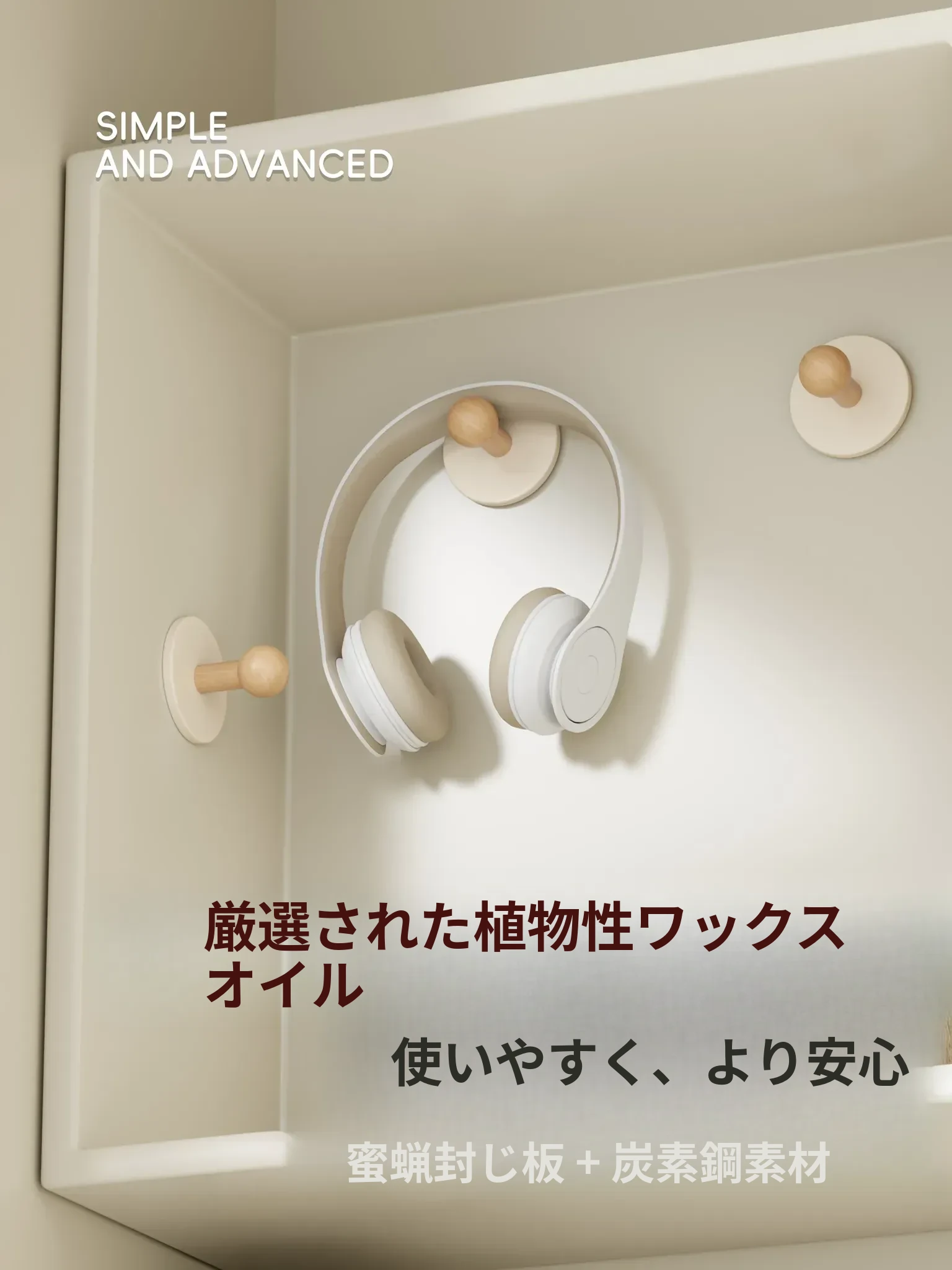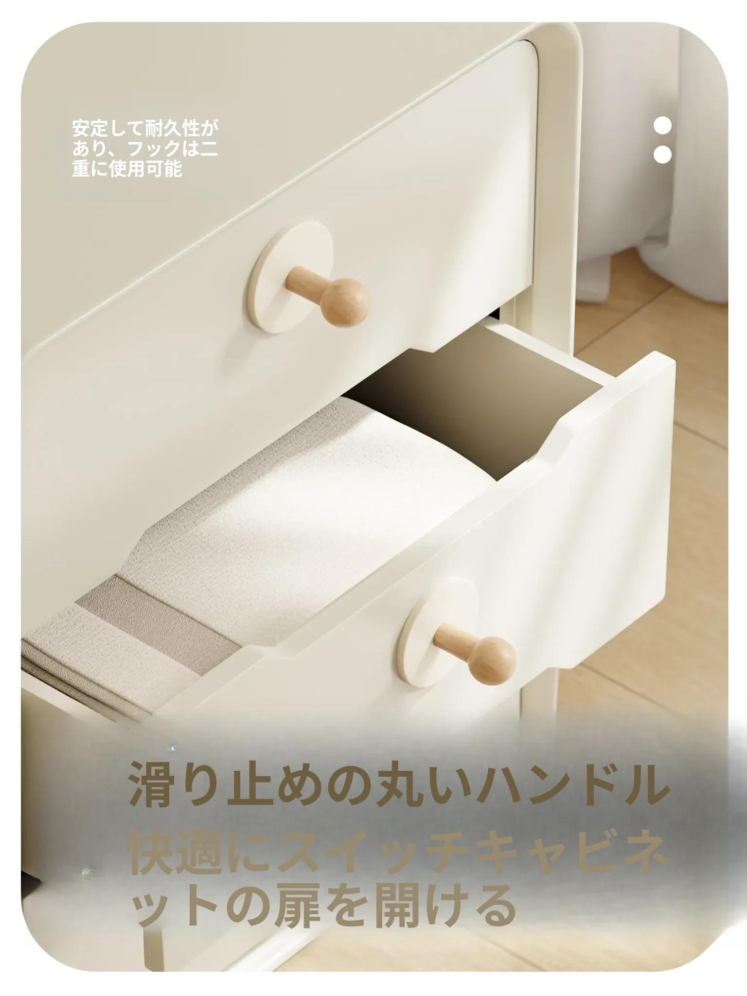 クリーム色-ブナ【丸型フック3個入り】