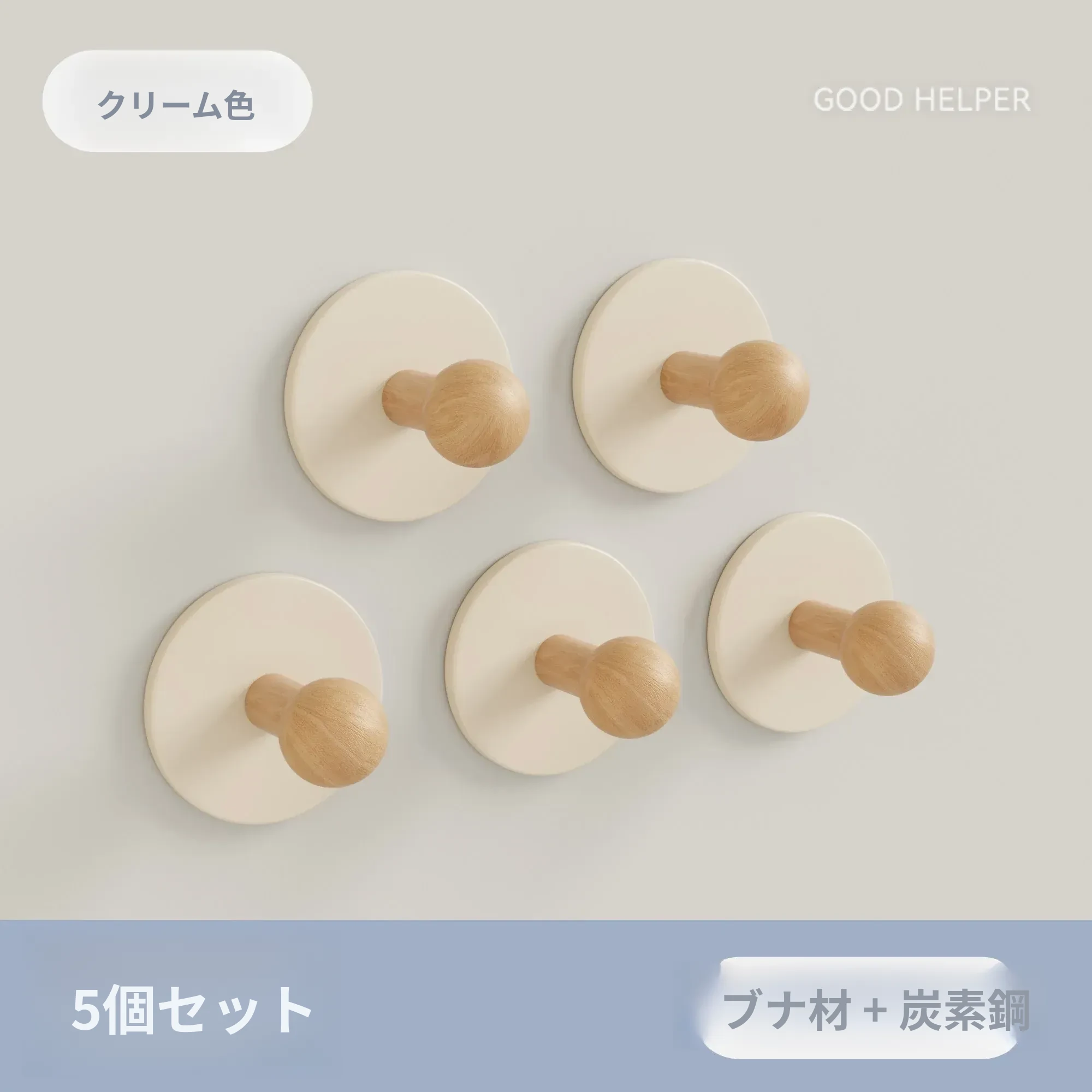 クリーム色-ブナ【丸型フック5個入り】