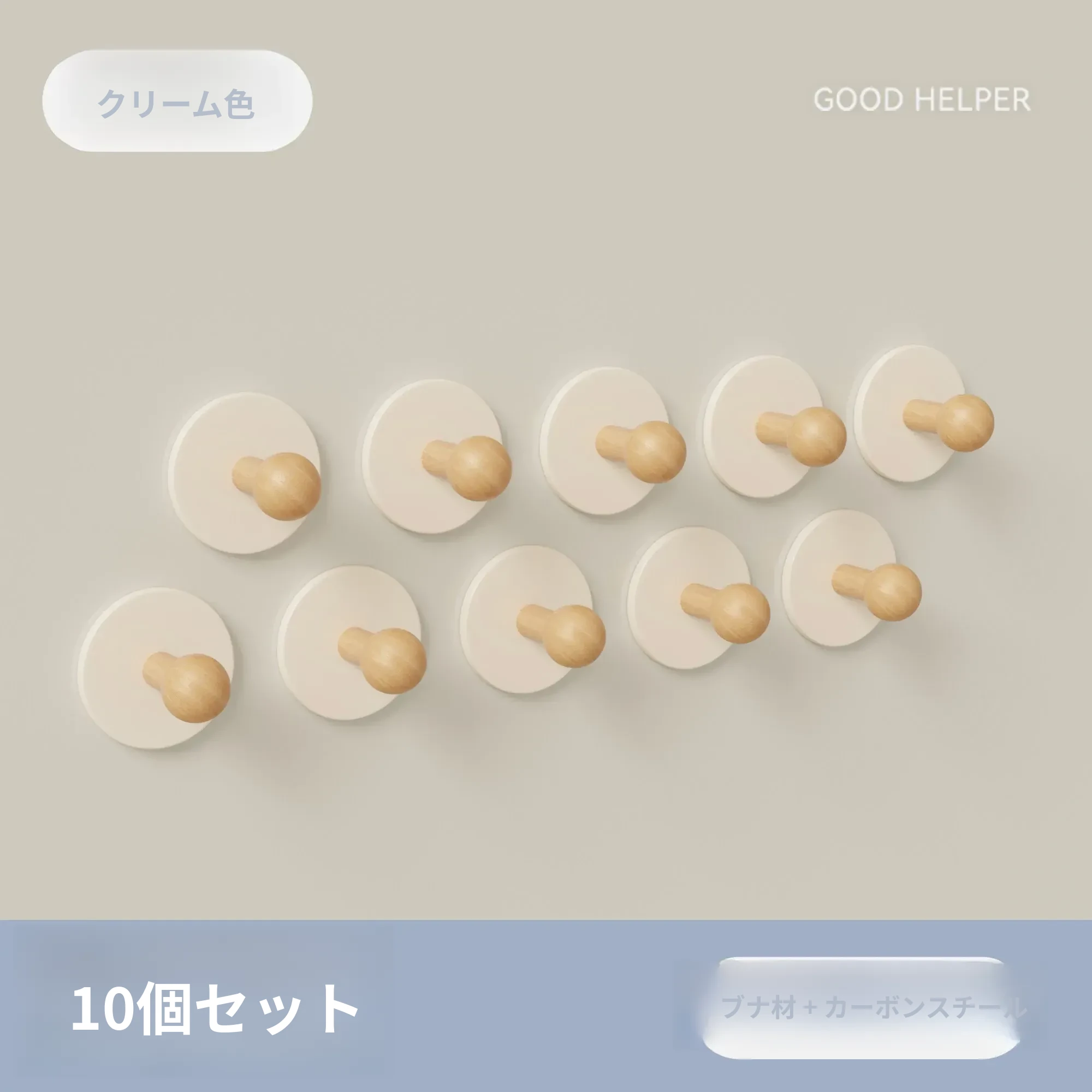 クリーム色-ブナ【丸型フック10個入り】