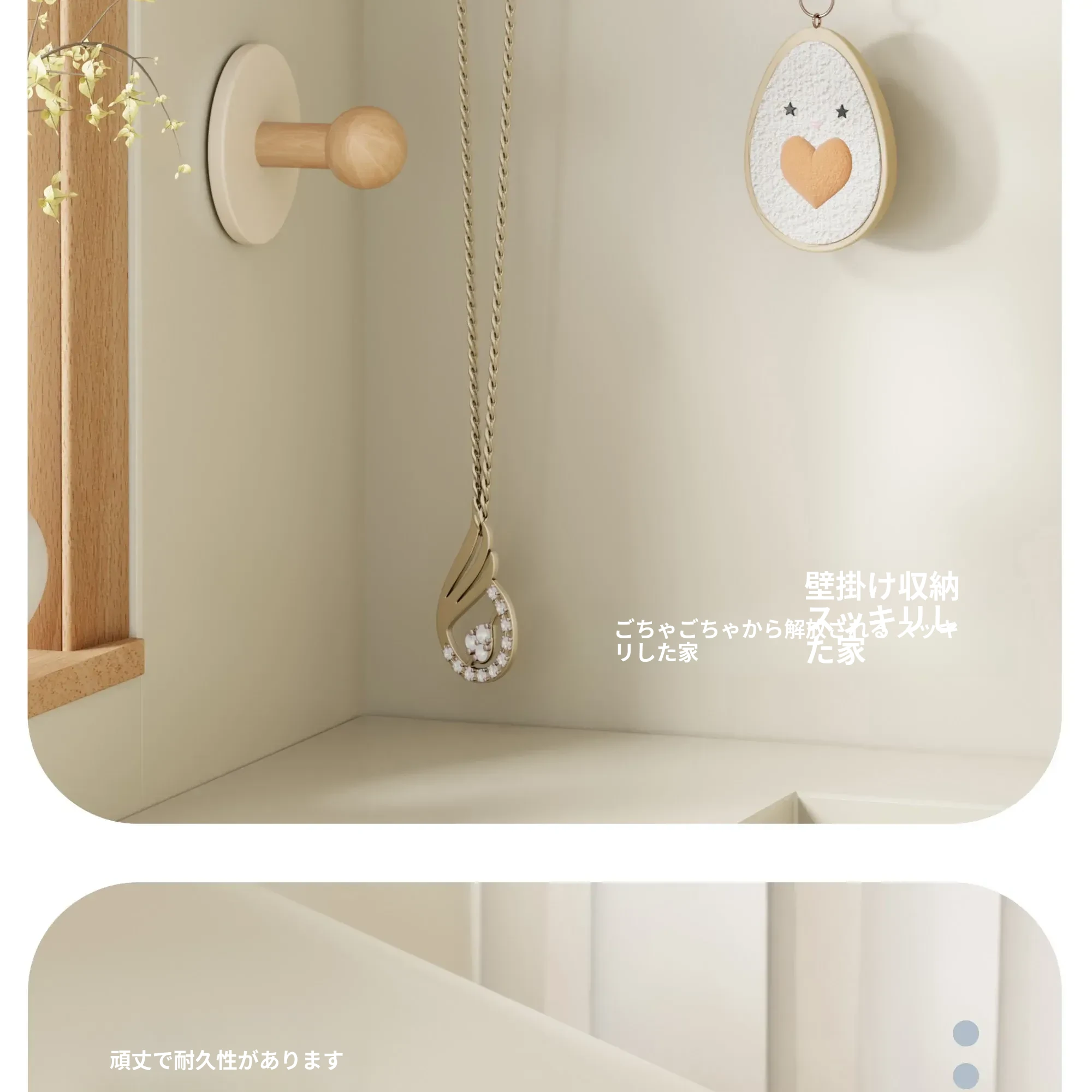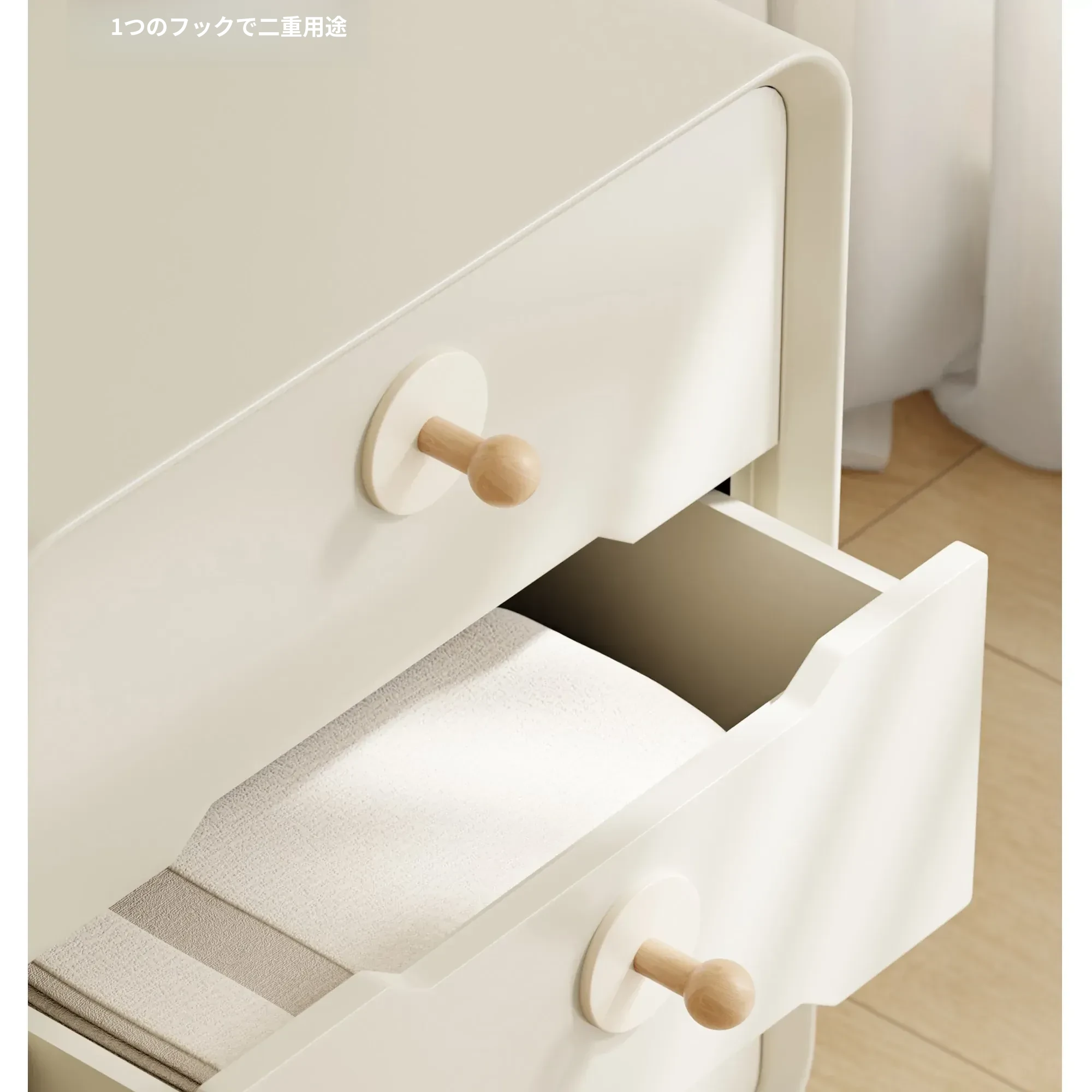 クリーム色-ブナ【丸型フック2個入り】