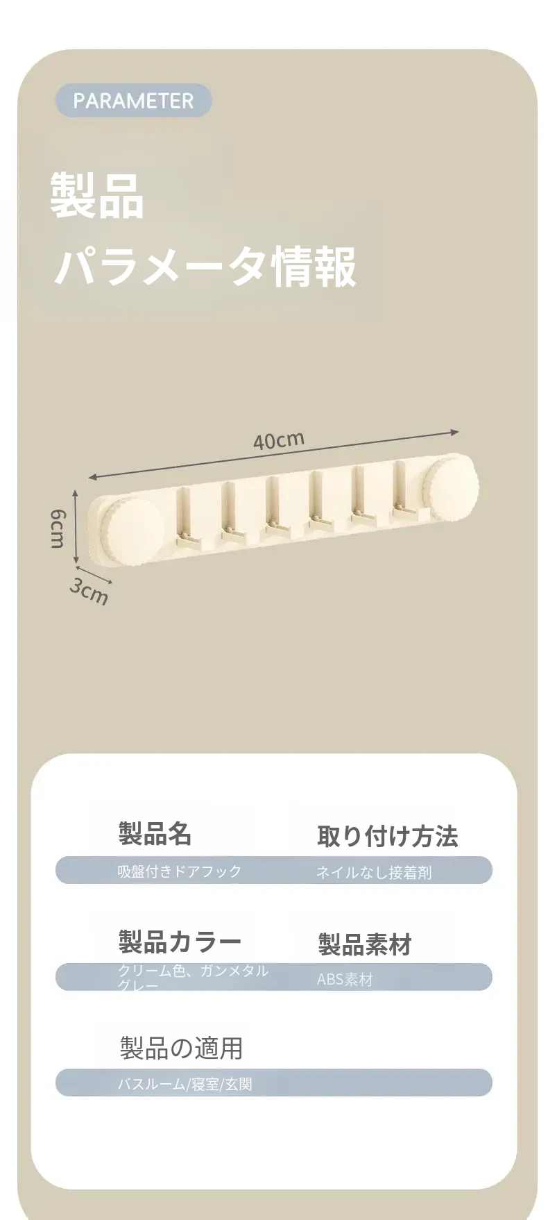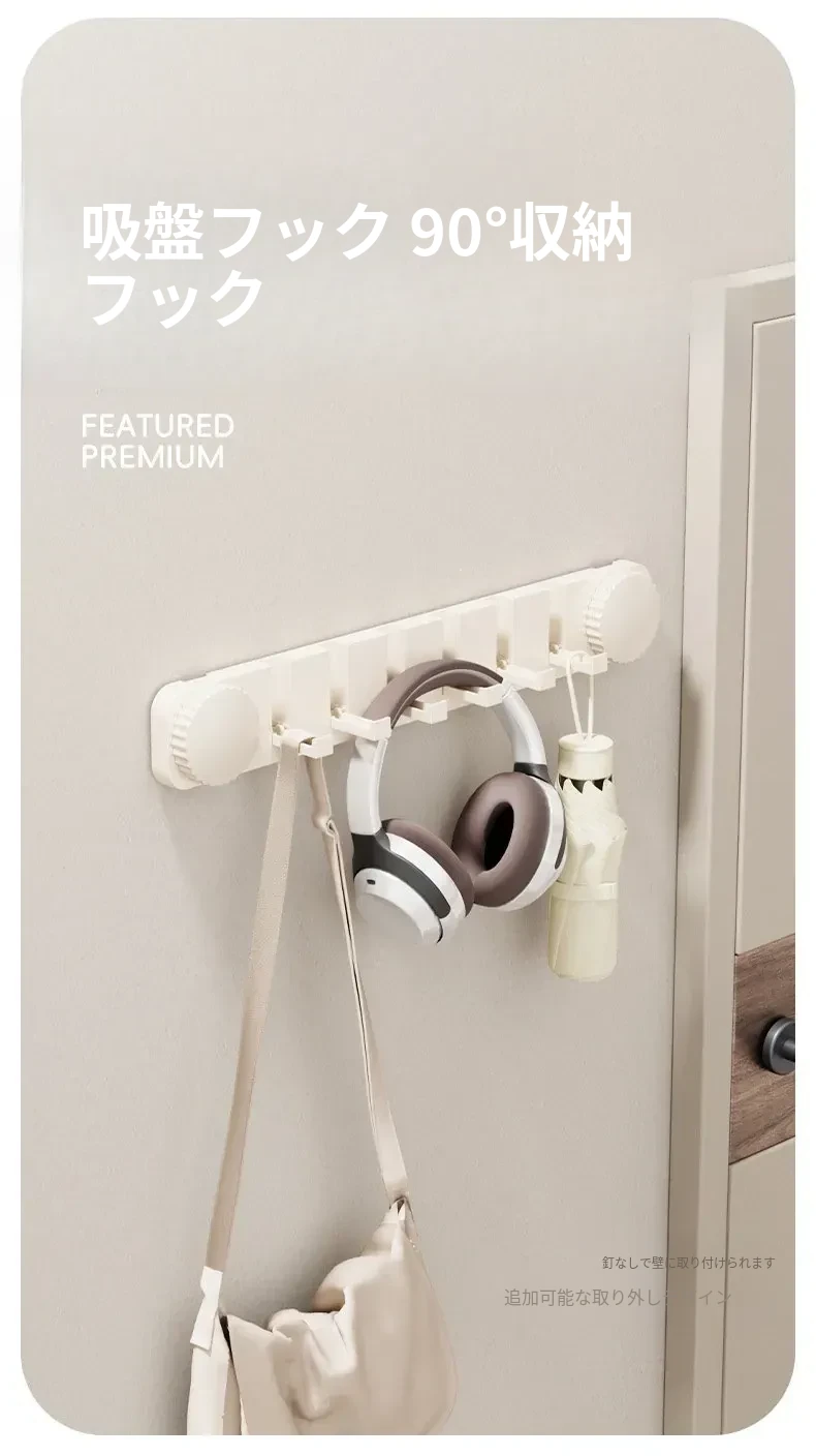 壁を傷めない吸盤フック!玄関ドアの後ろに最適な衣類・帽子掛け。穴あけ不要で強力な耐荷重を実現した壁掛け粘着フック!おしゃれで便利な収納アイテムです!