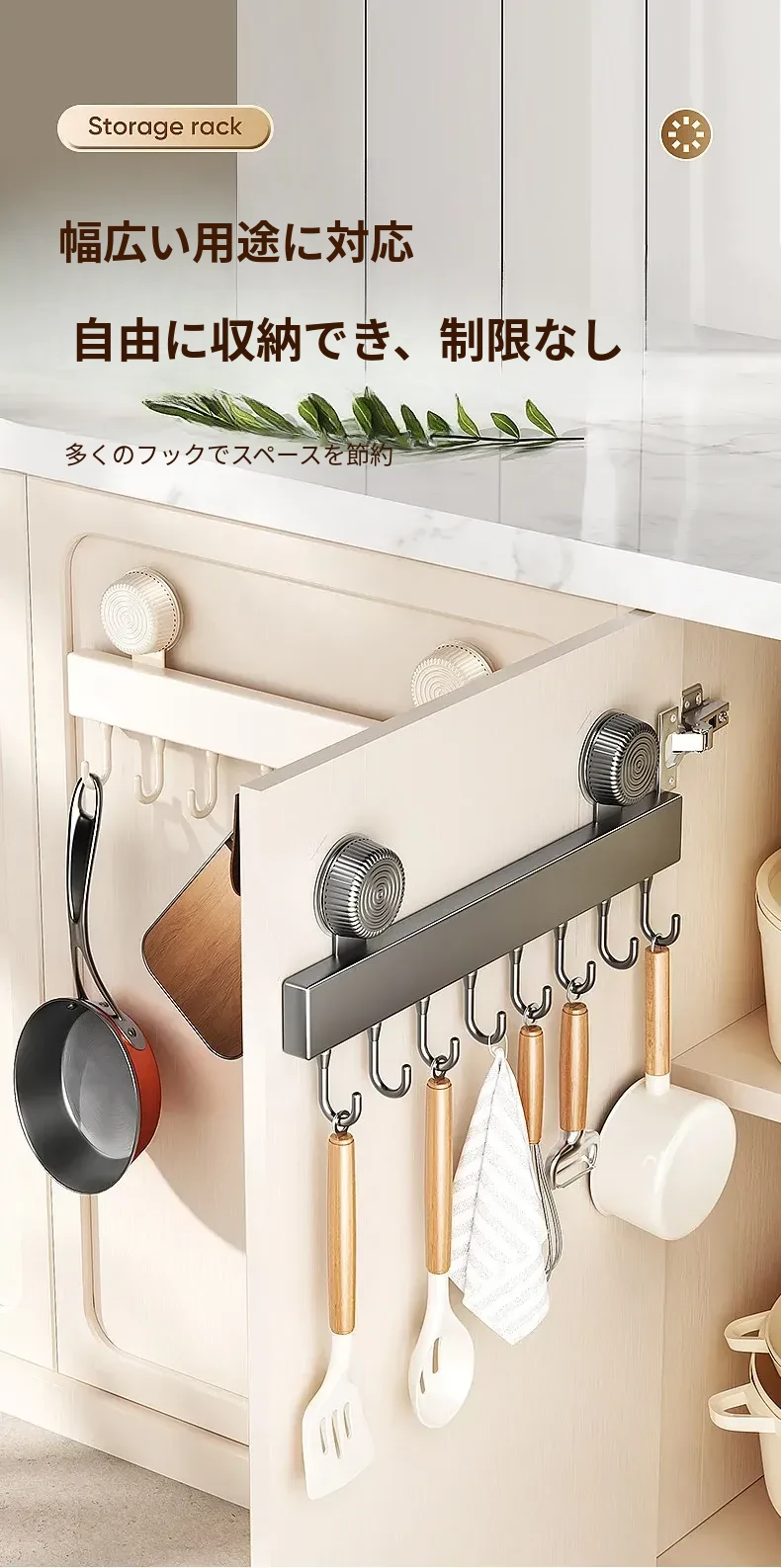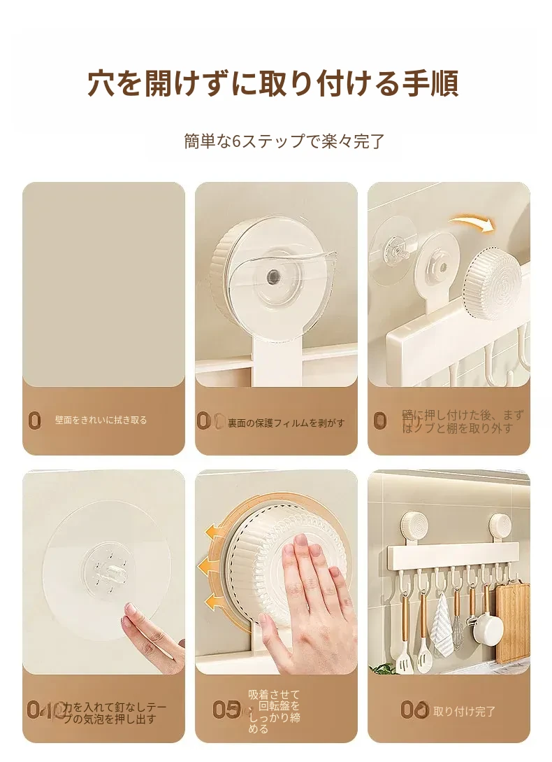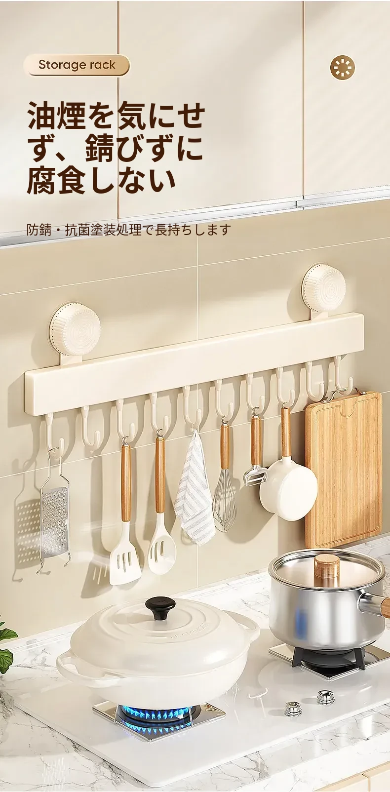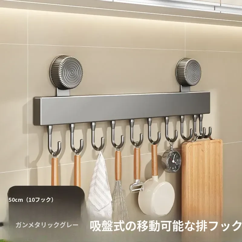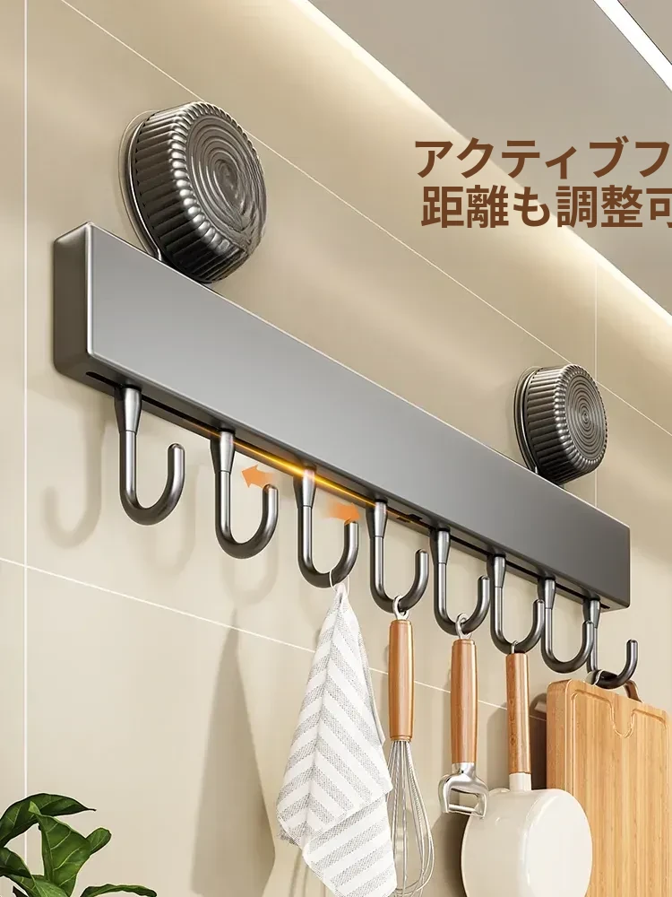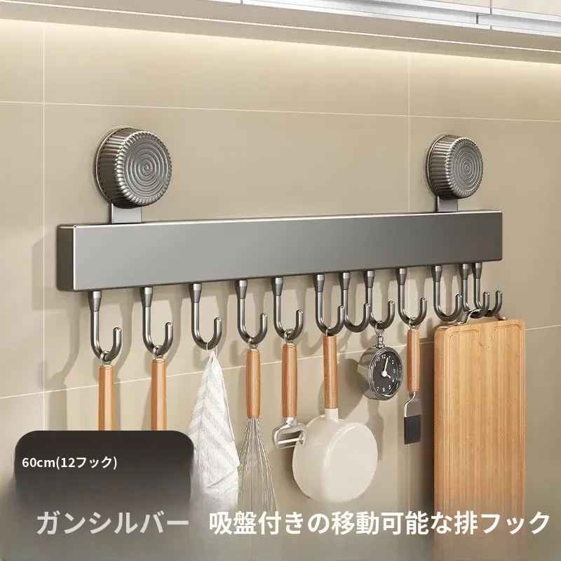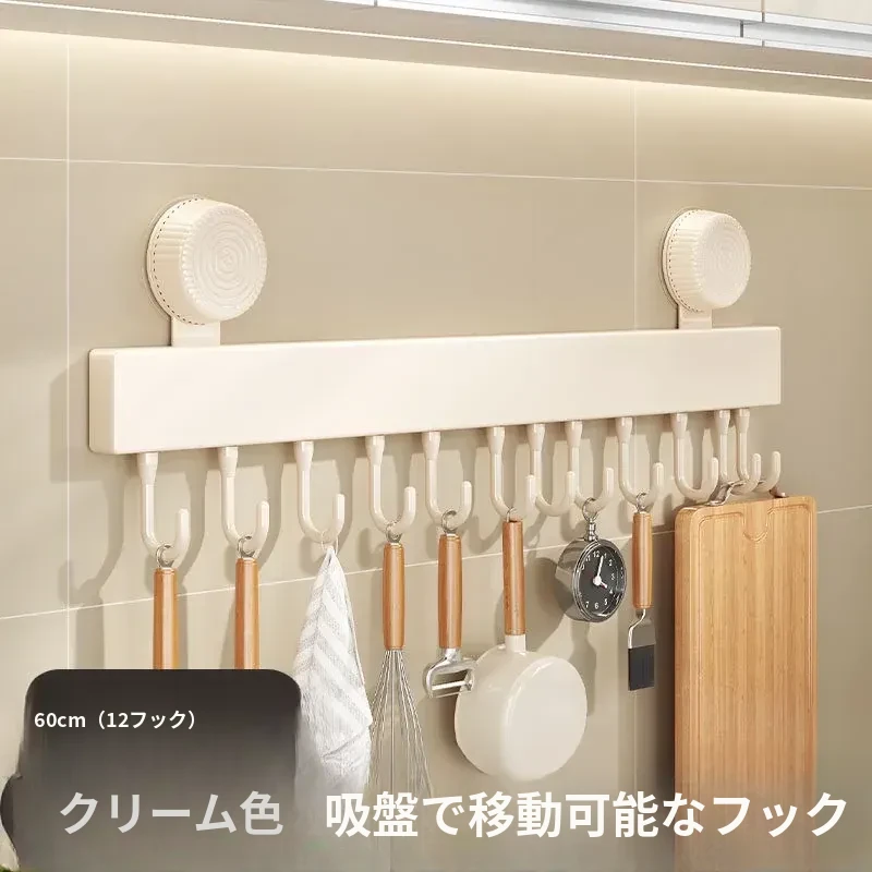 吸盤式キッチンフック - 壁掛け収納で簡単取り付け!穴あけ不要のスマートなオーガナイザー、スプーンやヘラをすっきり整理。キッチンをもっと便利に!