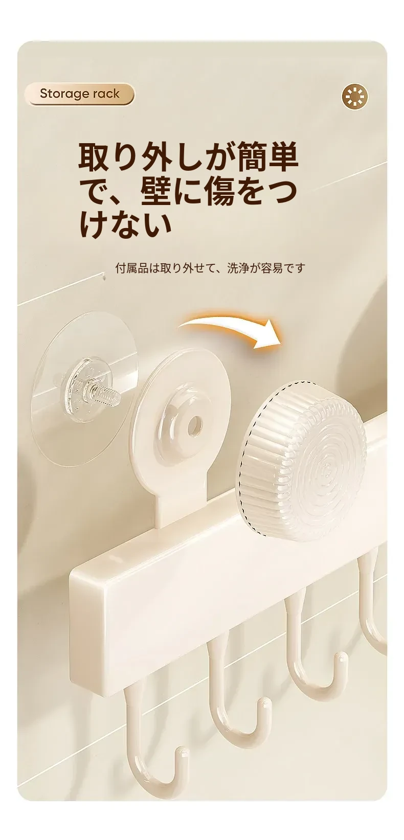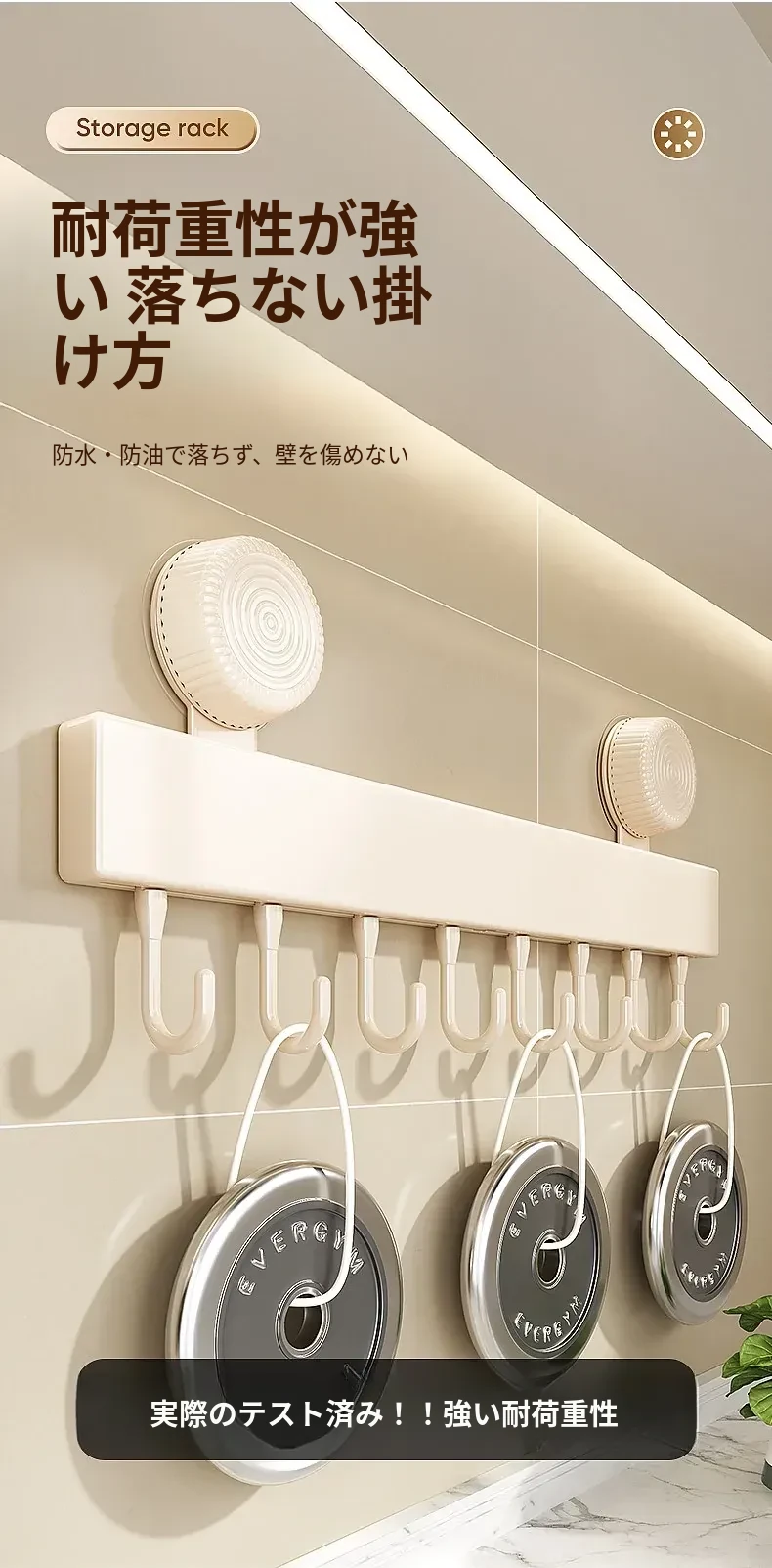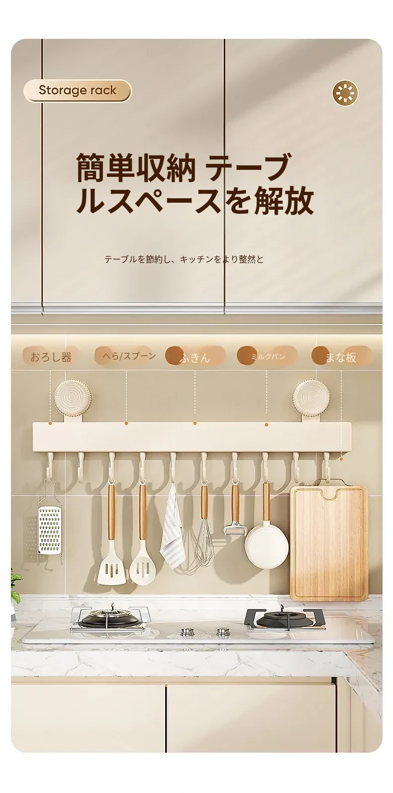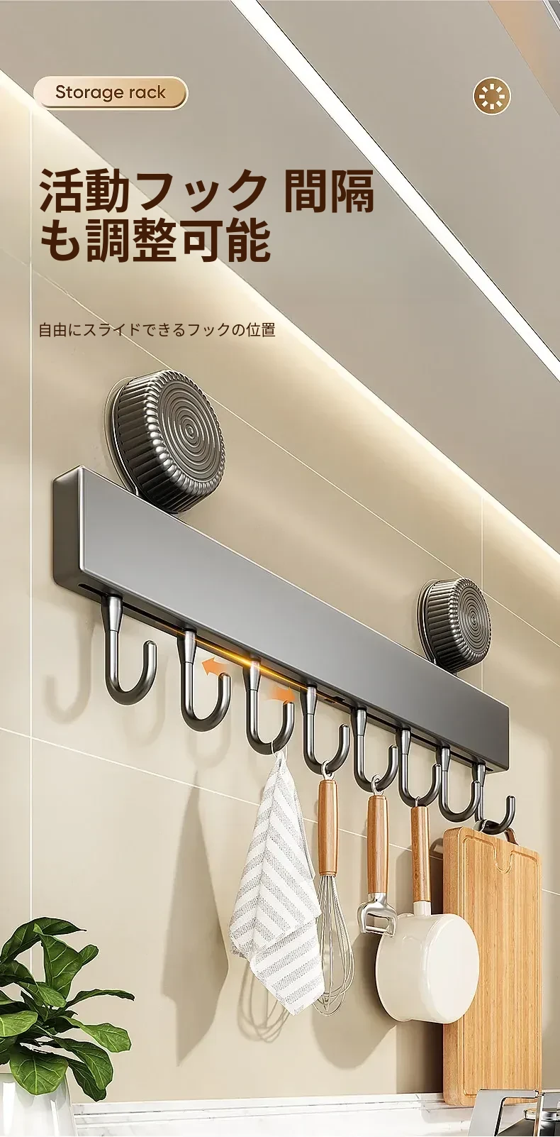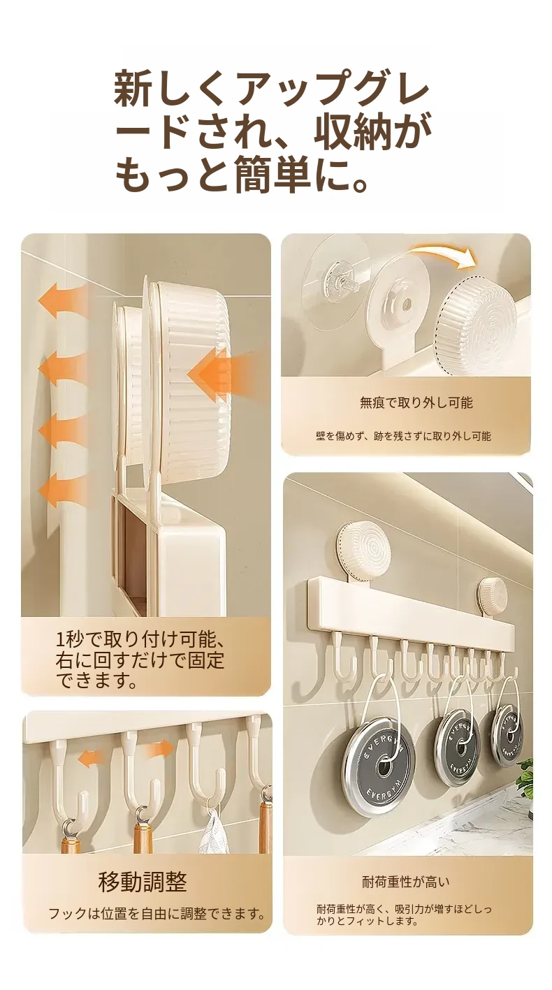 吸盤式キッチンフック - 壁掛け収納で簡単取り付け!穴あけ不要のスマートなオーガナイザー、スプーンやヘラをすっきり整理。キッチンをもっと便利に!