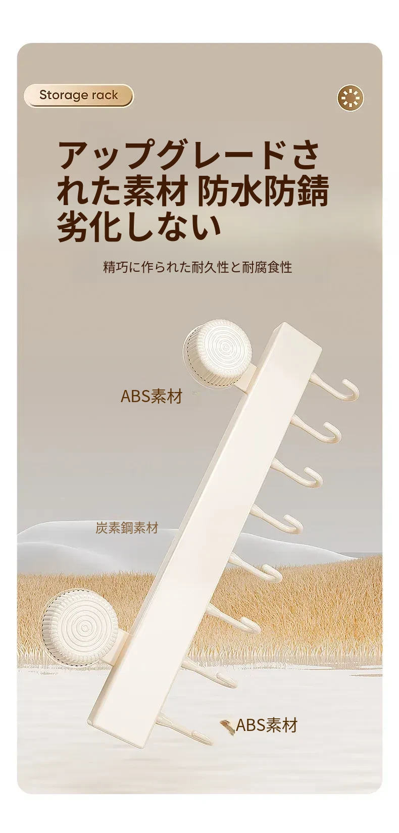 ミルクホワイト【ダブルサクションカップ30cm】6フック