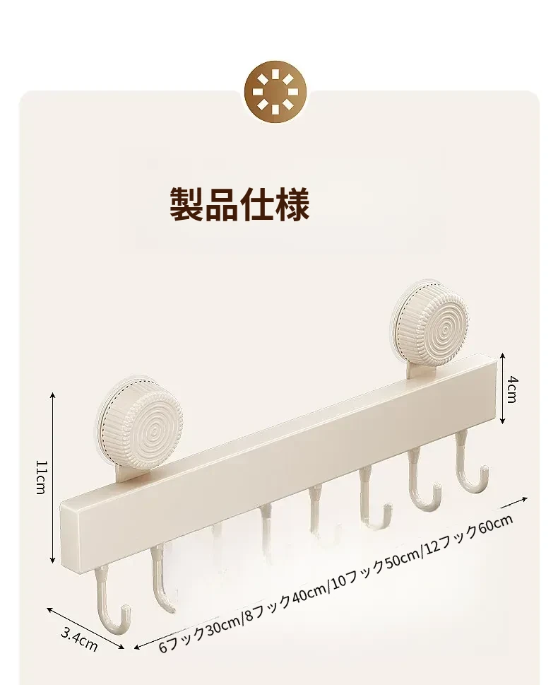 ミルクホワイト【ダブルサクションカップ60cm】12フック