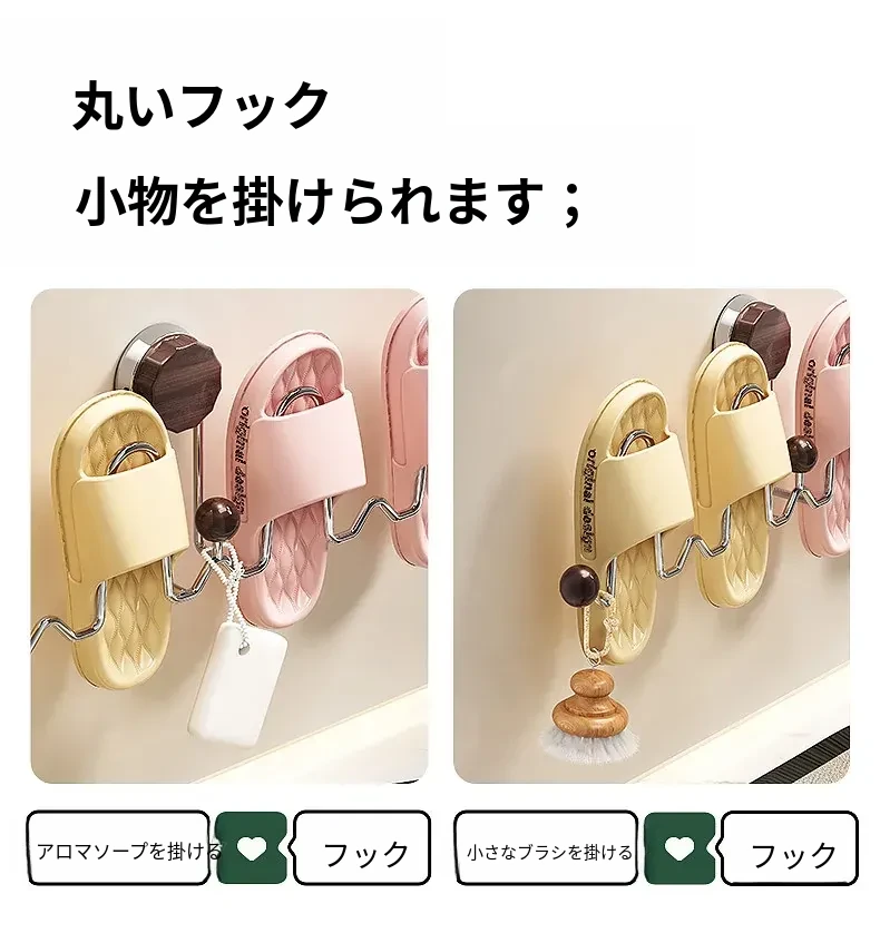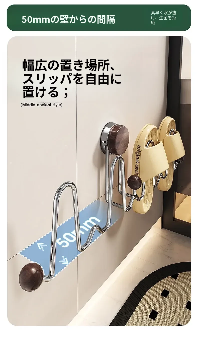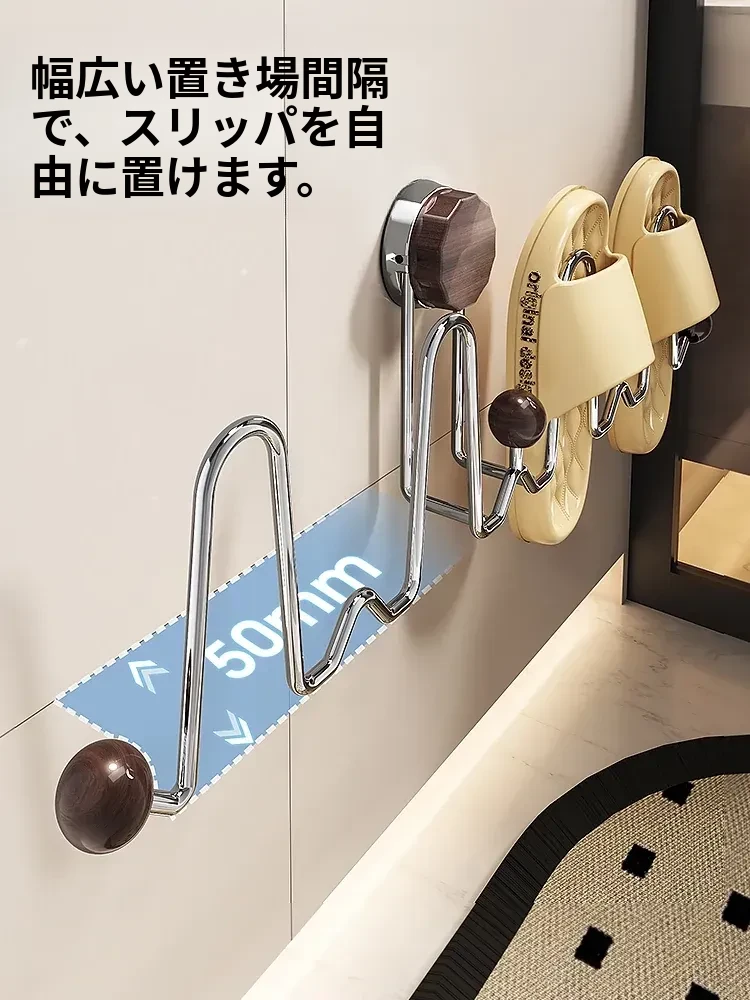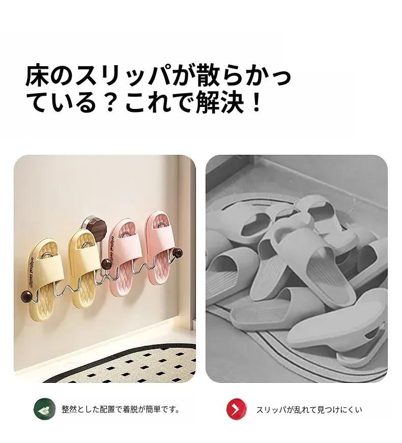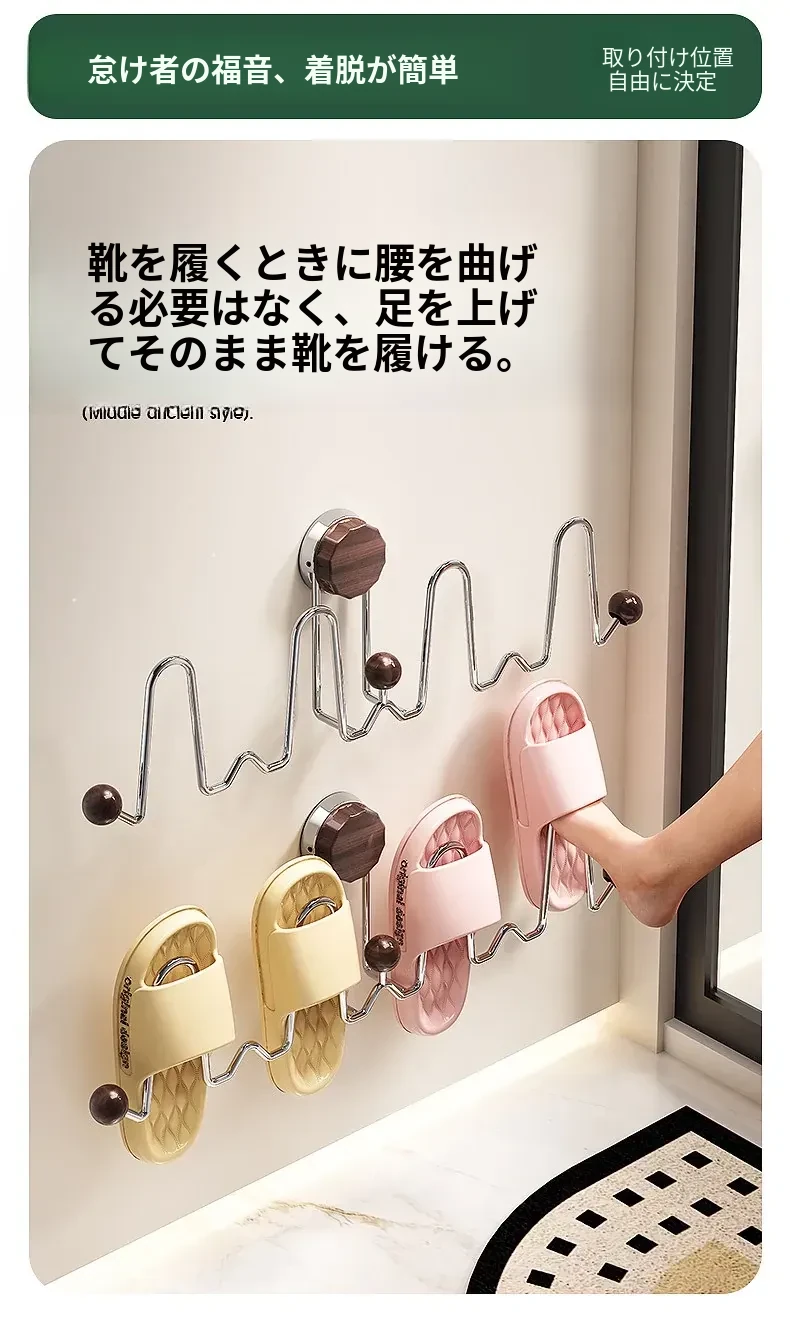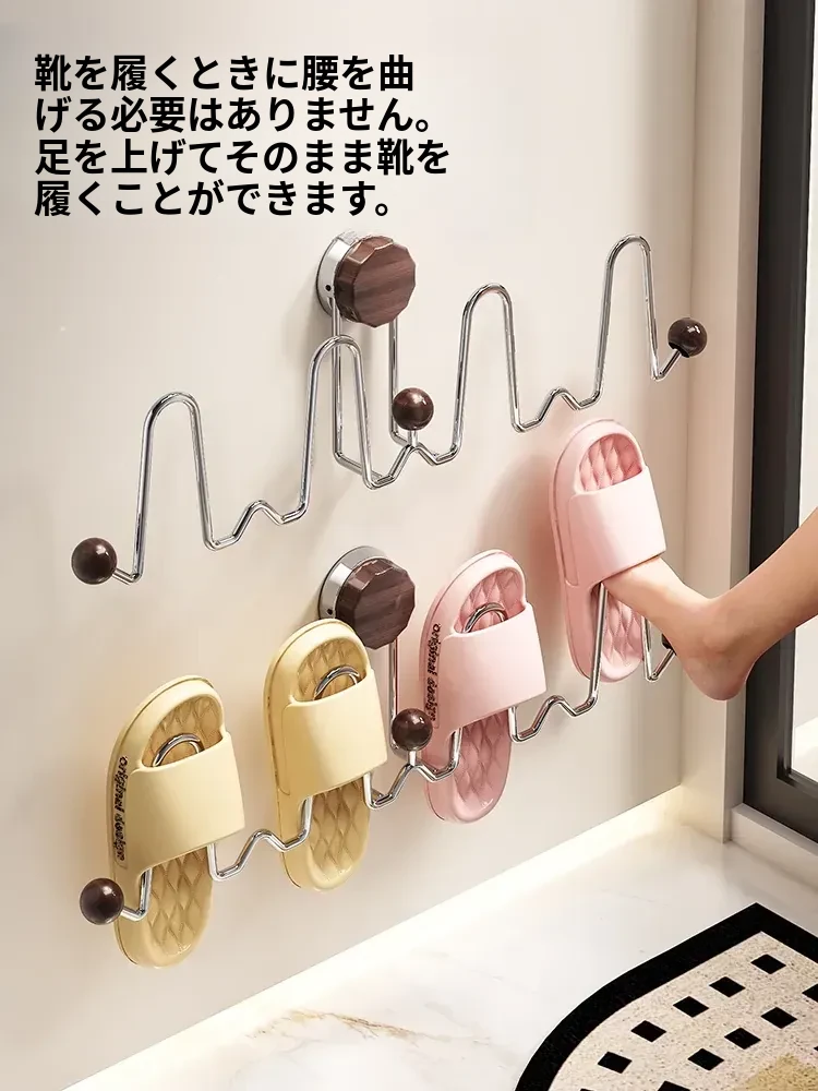 吸盤式スリッパラック 壁掛けトイレ・バスルーム用 取り付け不要!スリッパ収納に最適な便利グッズ!おしゃれで省スペース、靴をスッキリ整理!