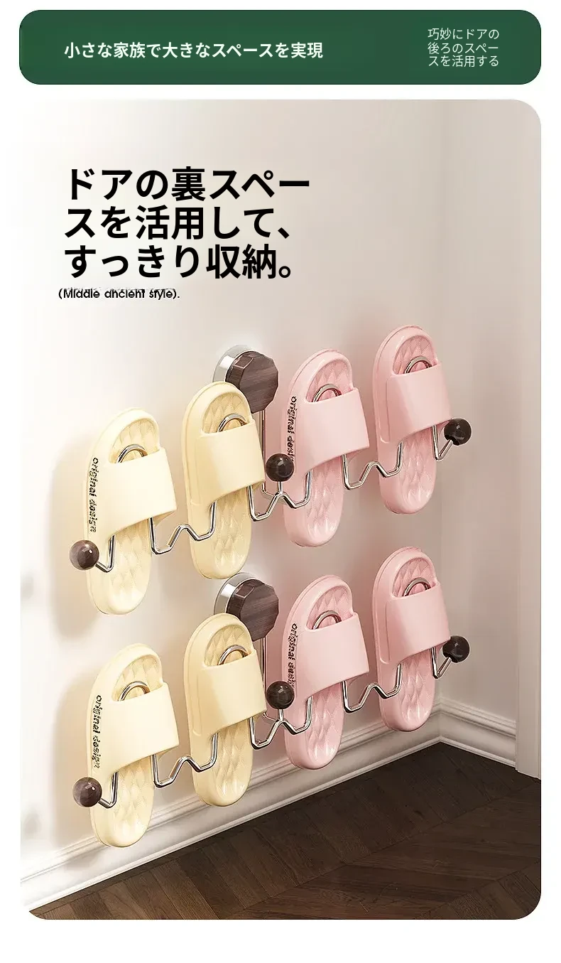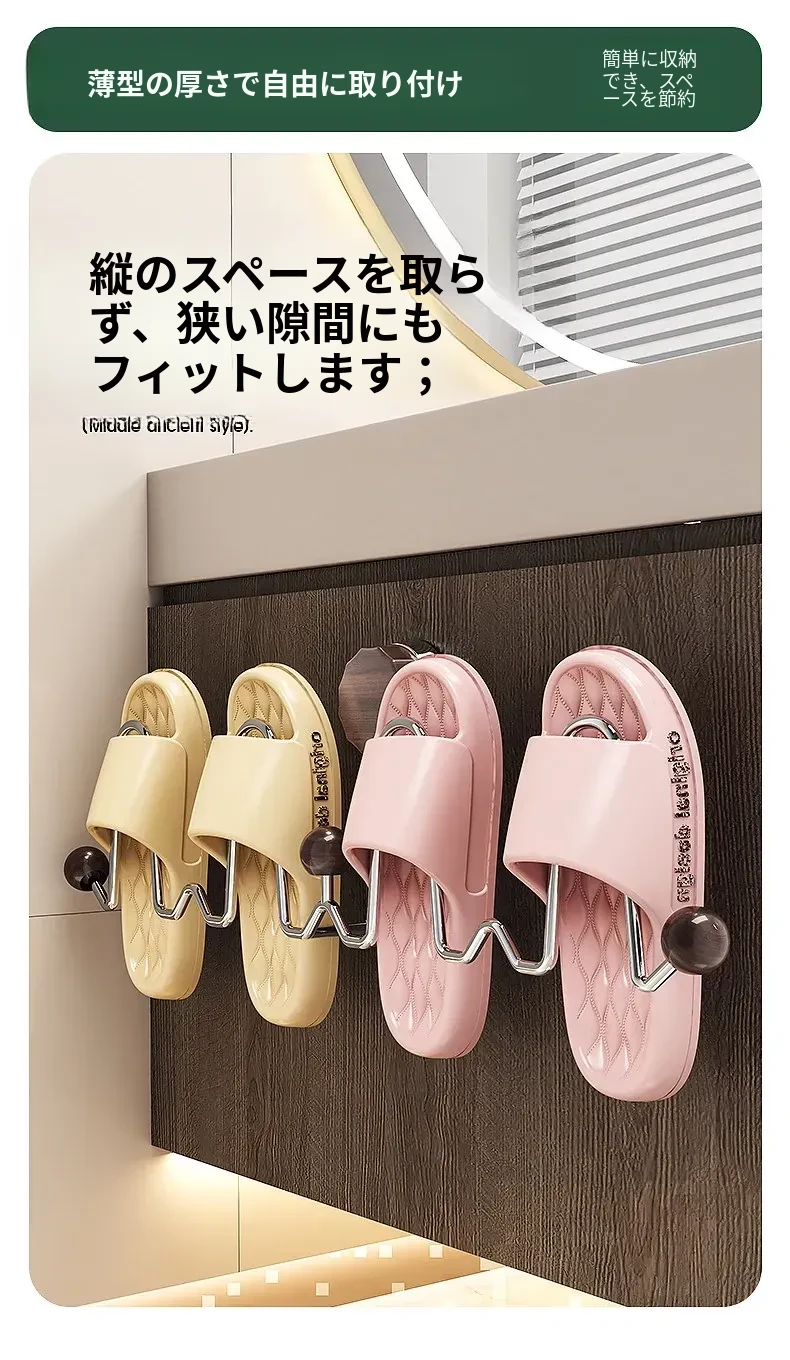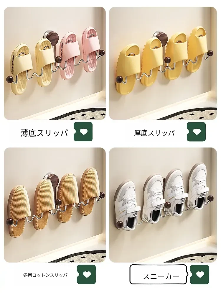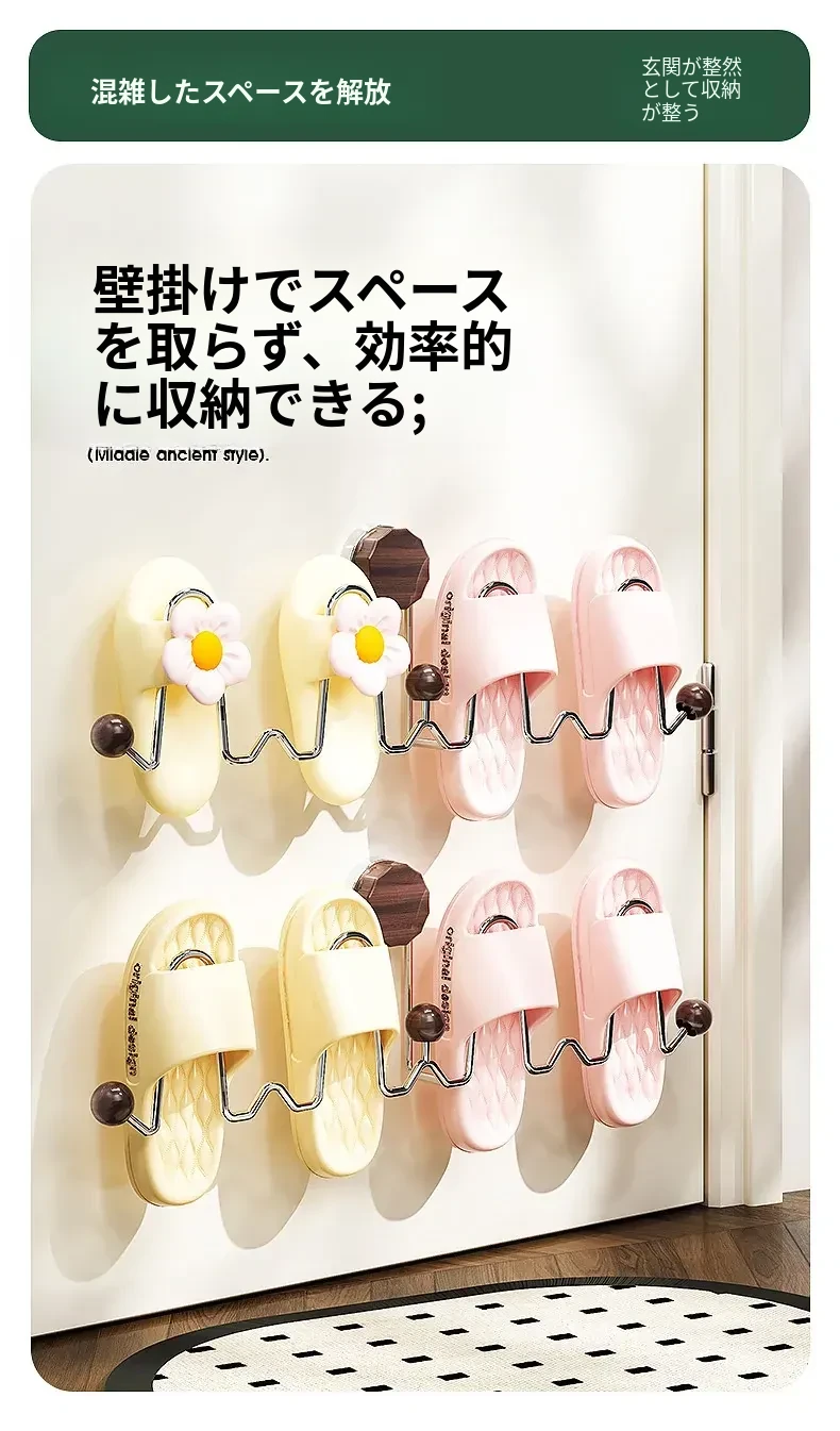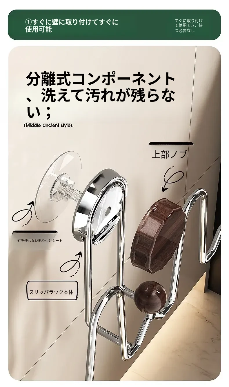 吸盤式スリッパラック 壁掛けトイレ・バスルーム用 取り付け不要!スリッパ収納に最適な便利グッズ!おしゃれで省スペース、靴をスッキリ整理!