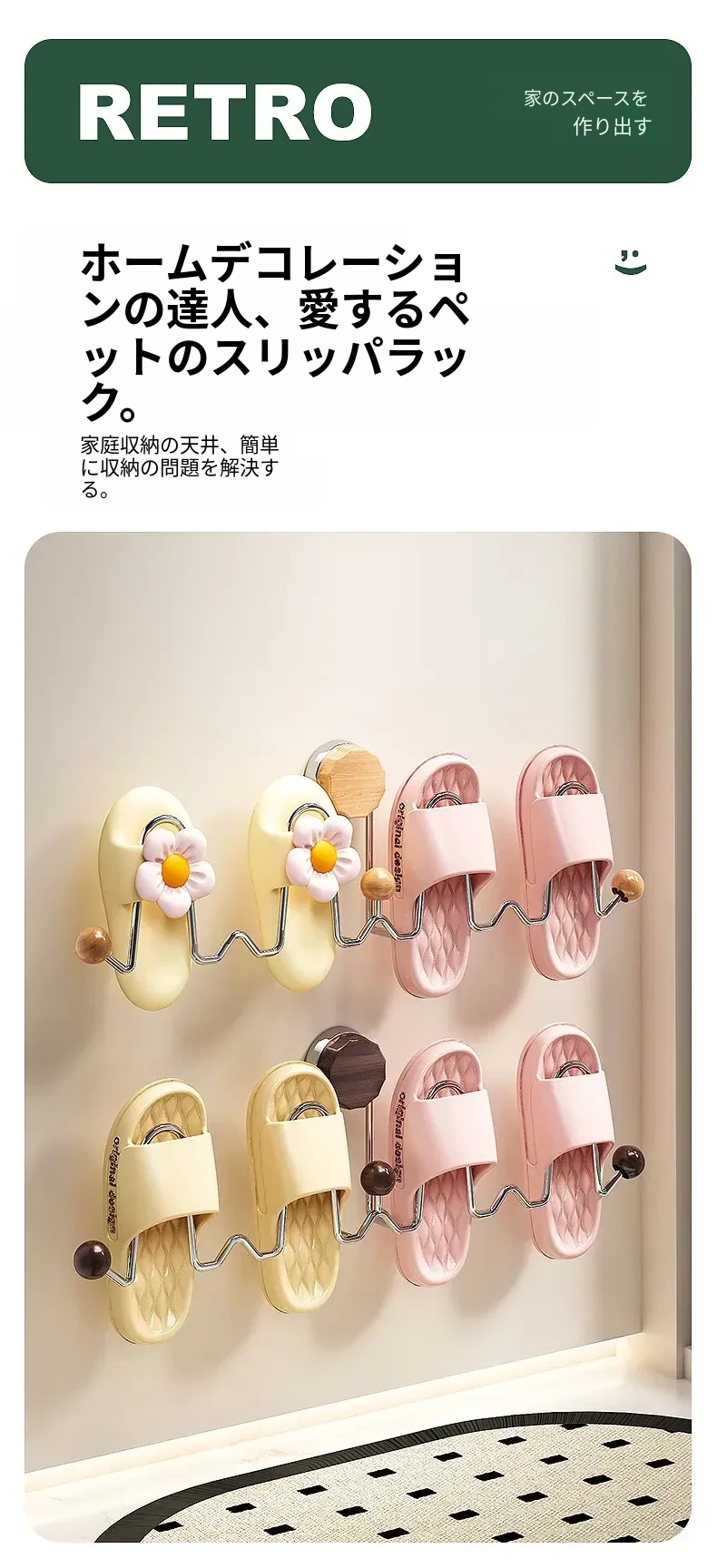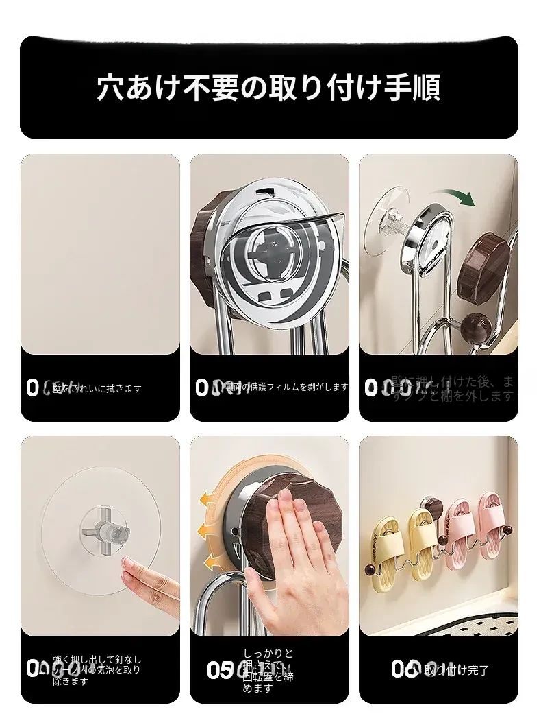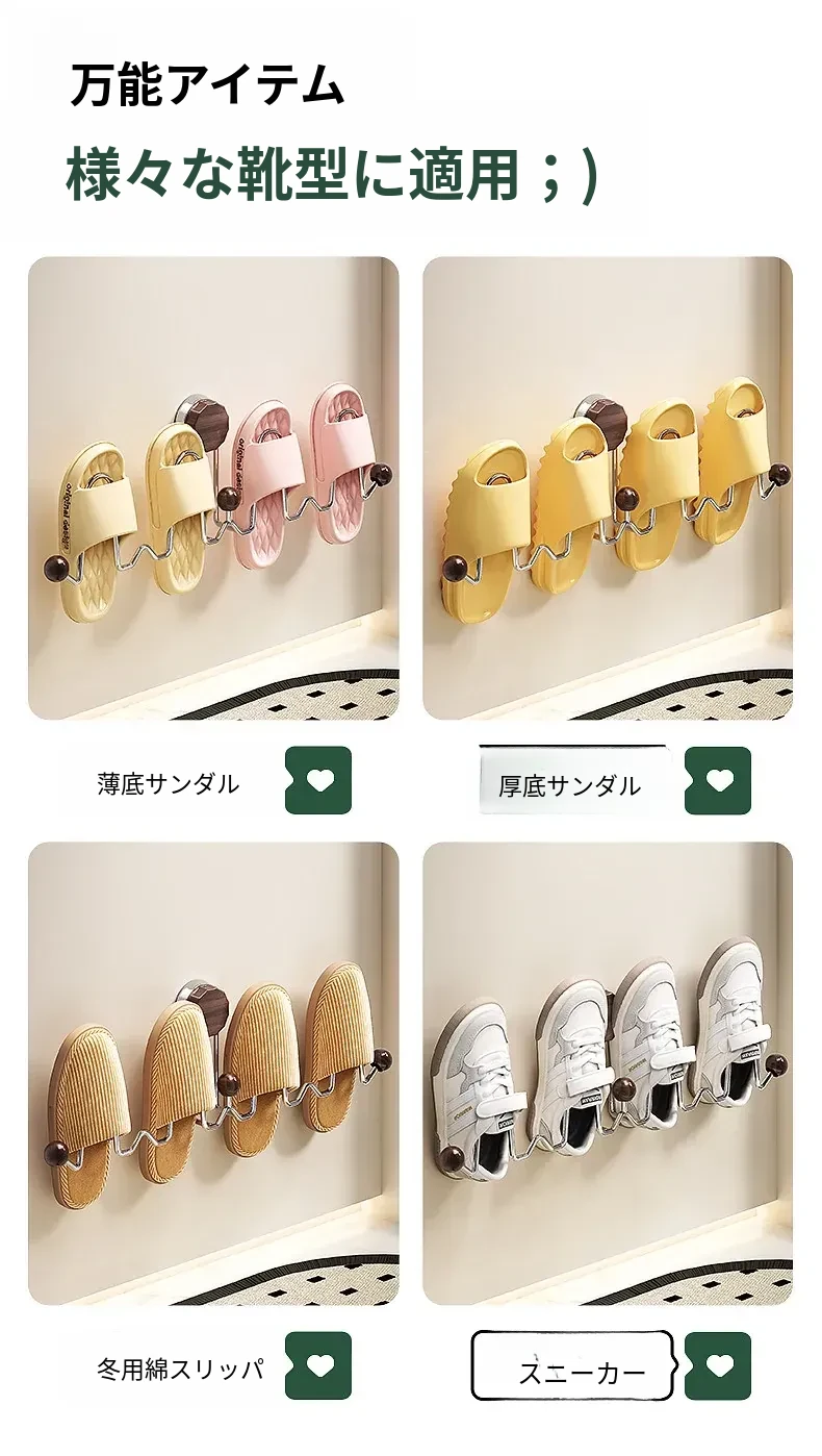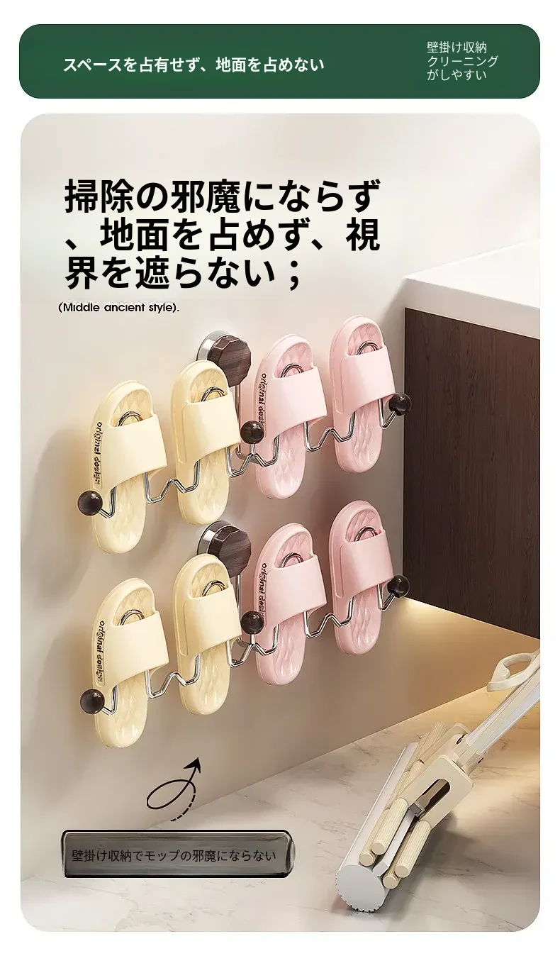 吸盤式スリッパラック 壁掛けトイレ・バスルーム用 取り付け不要!スリッパ収納に最適な便利グッズ!おしゃれで省スペース、靴をスッキリ整理!