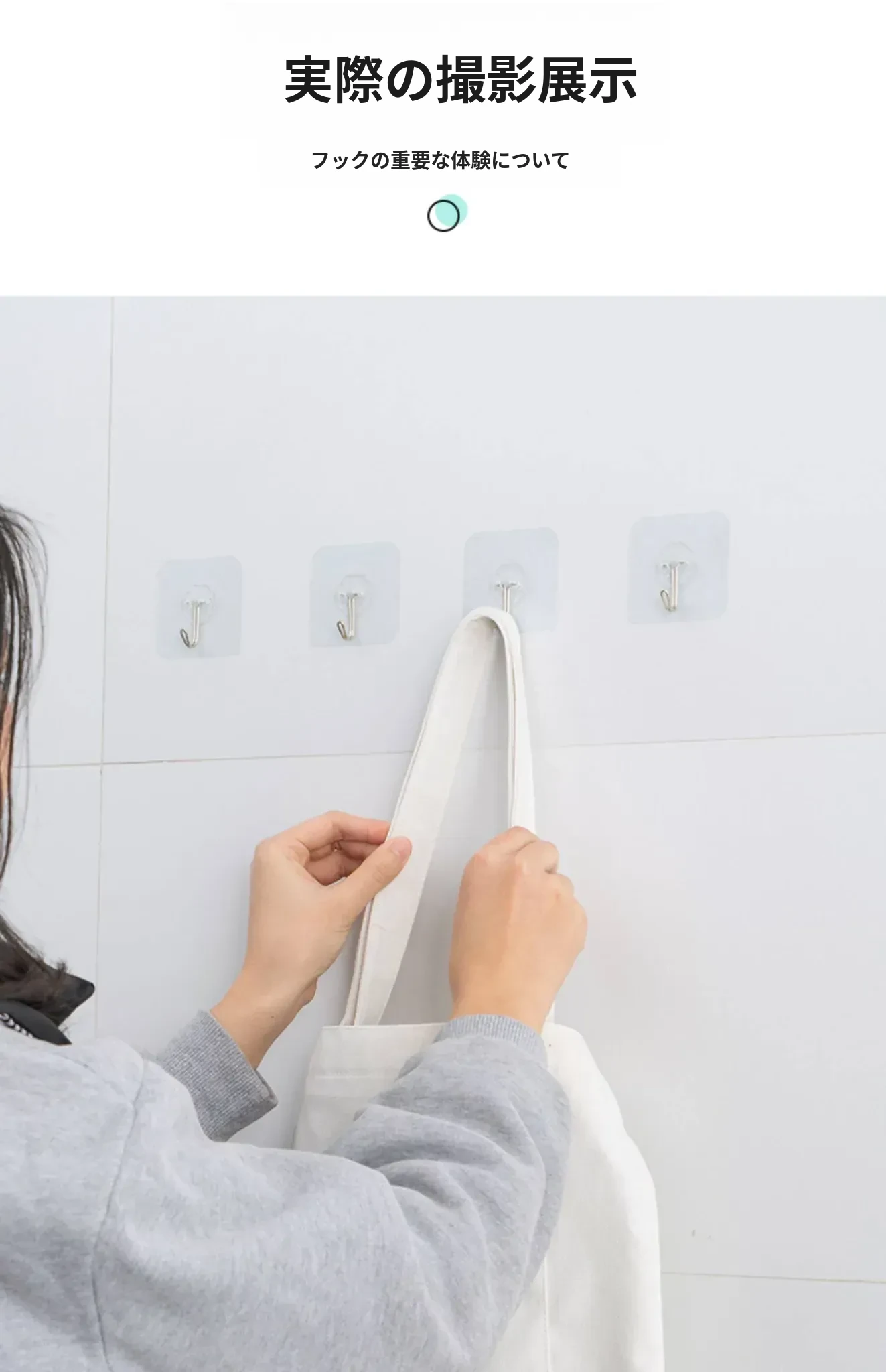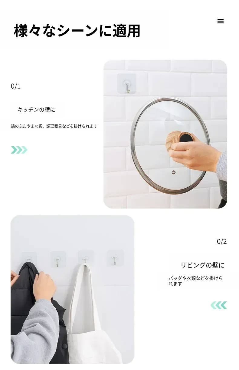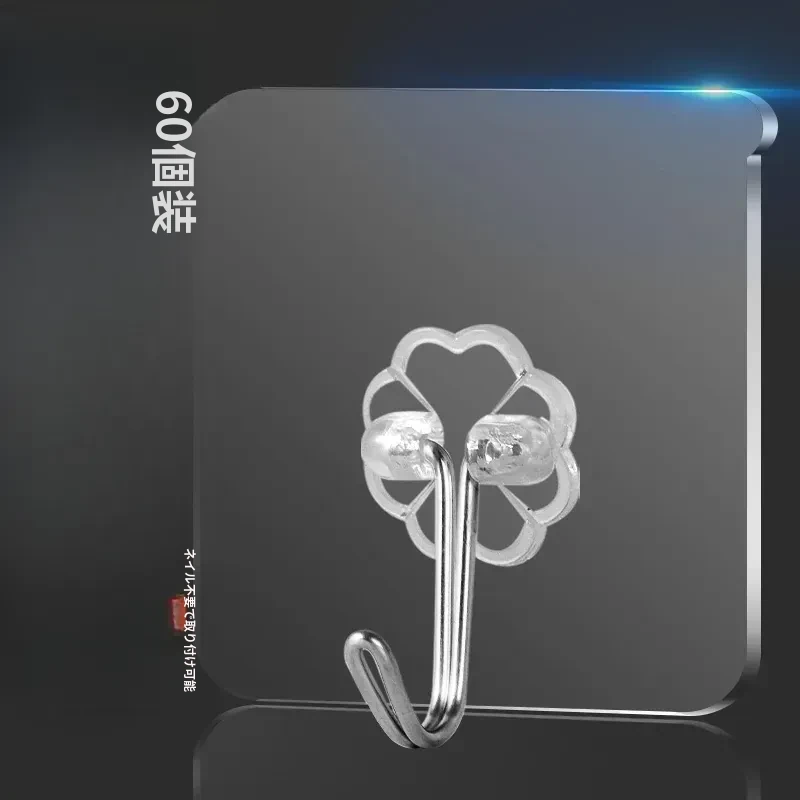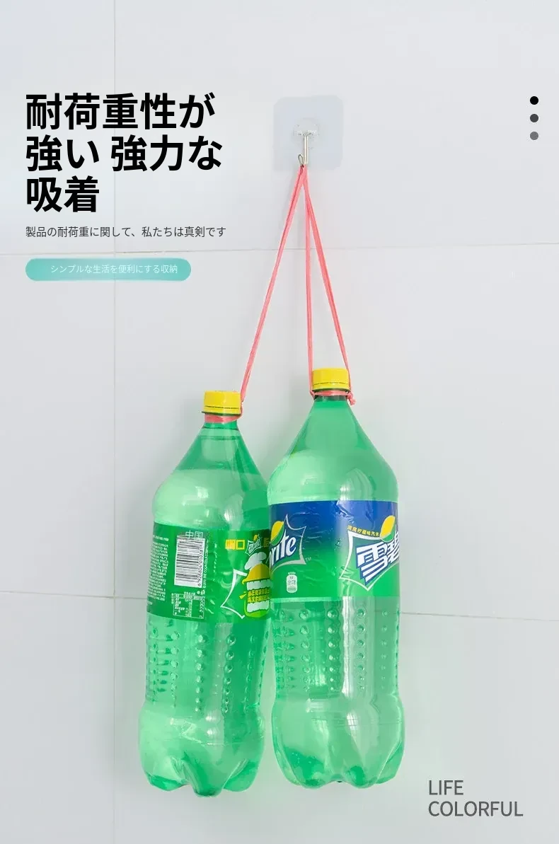 透明フック 強力粘着で穴あけ不要!壁に傷をつけず、超強力でしっかり支える小型フック。家庭用に最適な無痕粘着フックで、整理整頓も簡単!