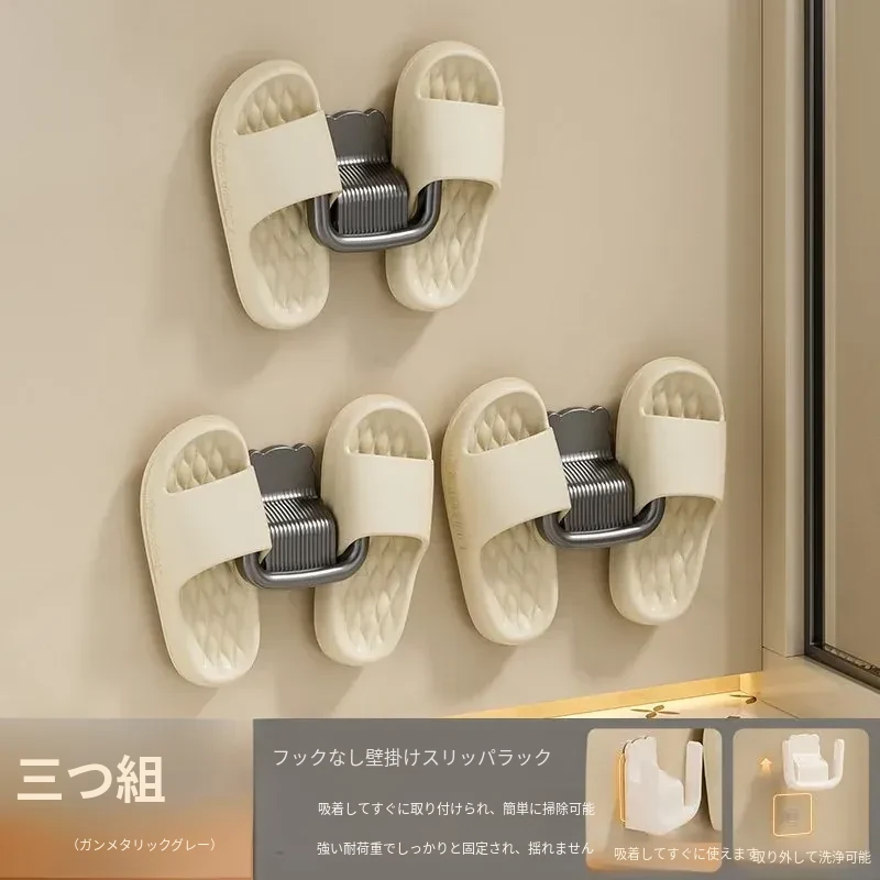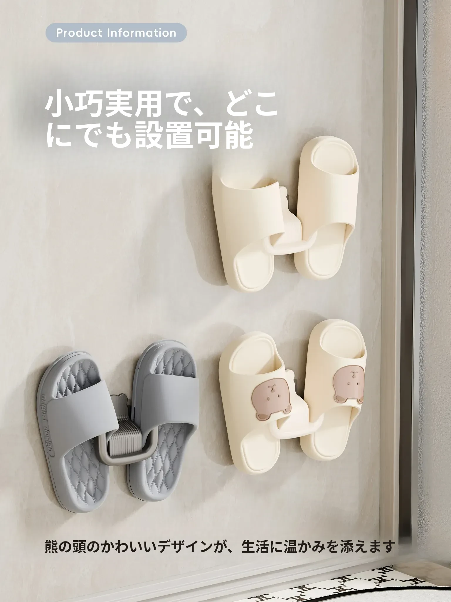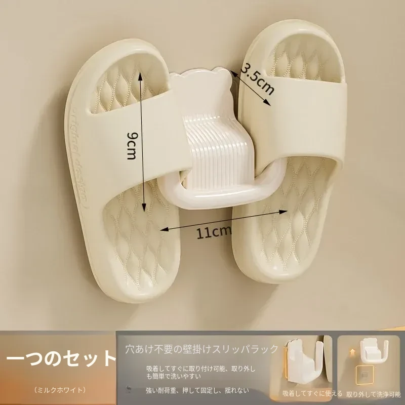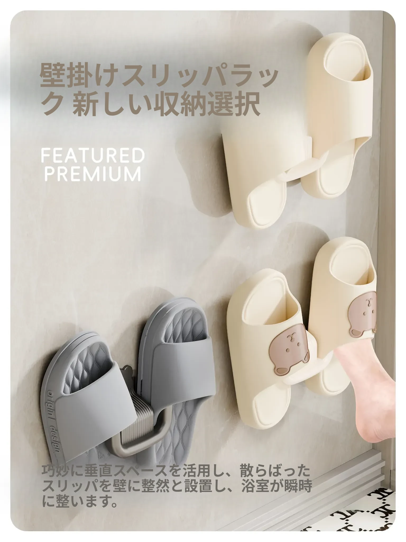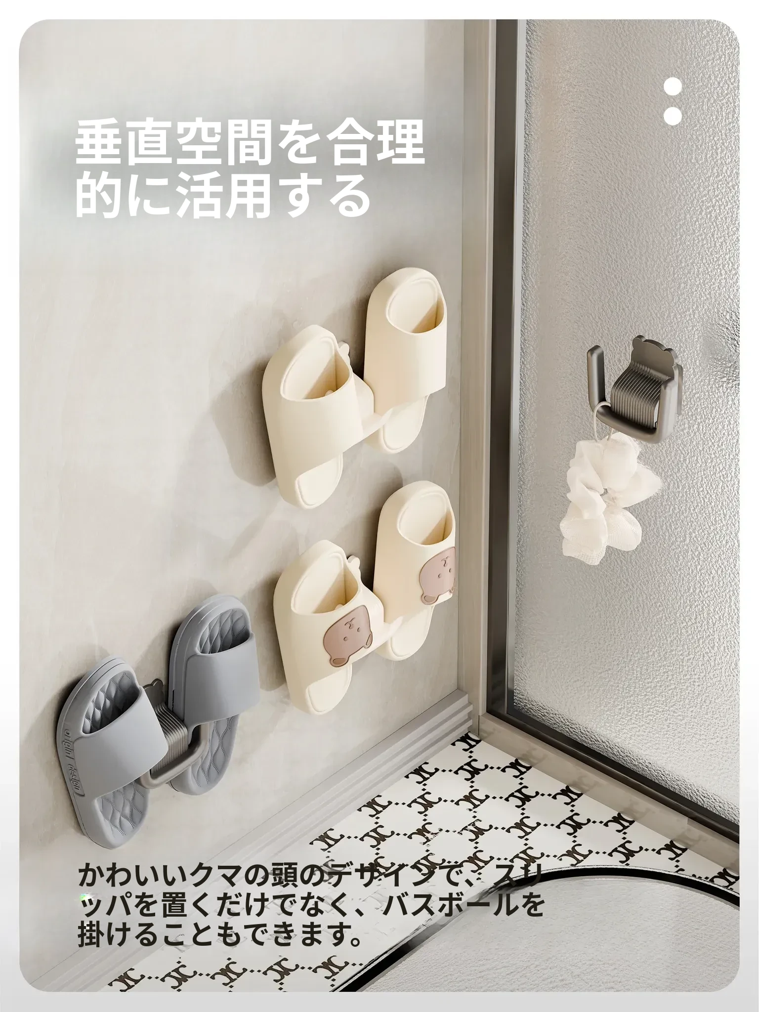 壁掛け浴室スリッパラック - トイレのドア裏に取り付けるだけで簡単収納!水切り機能付きで、湿気を防ぎ、清潔に保つ。バルコニーや衛生的なスペースを作るための理想的なアイテムです。