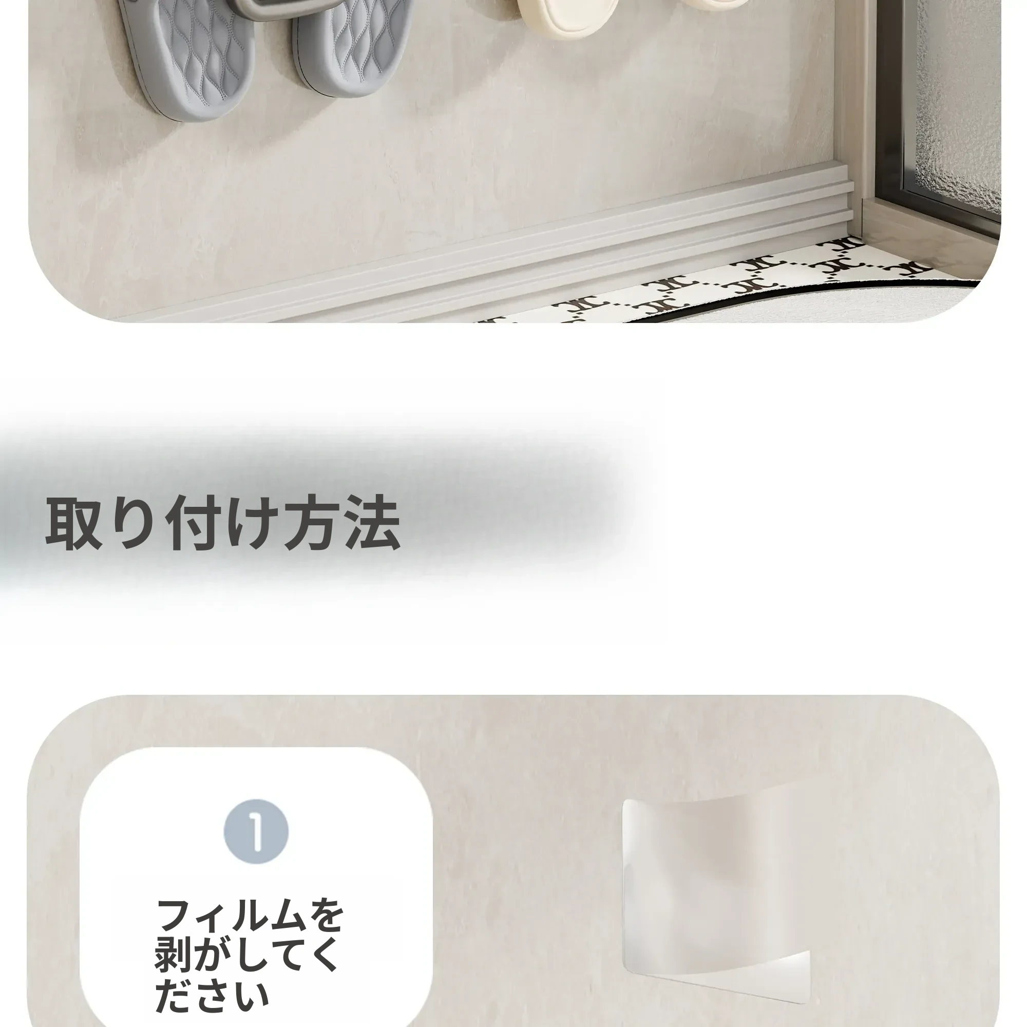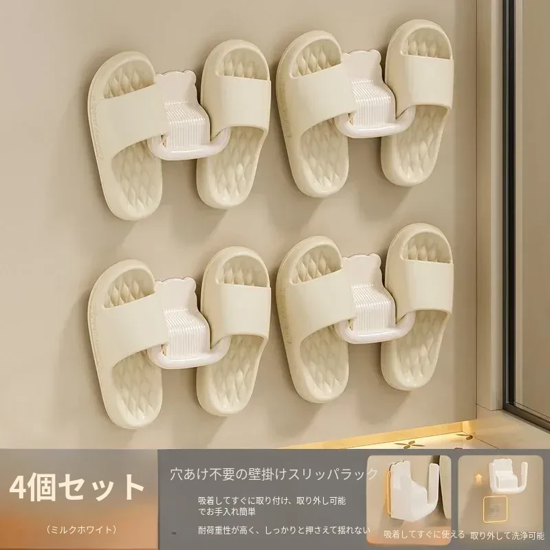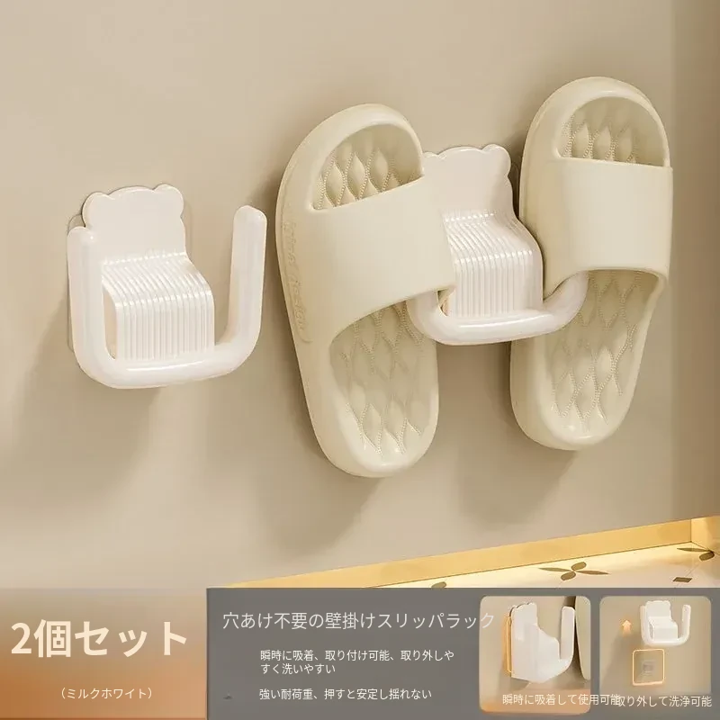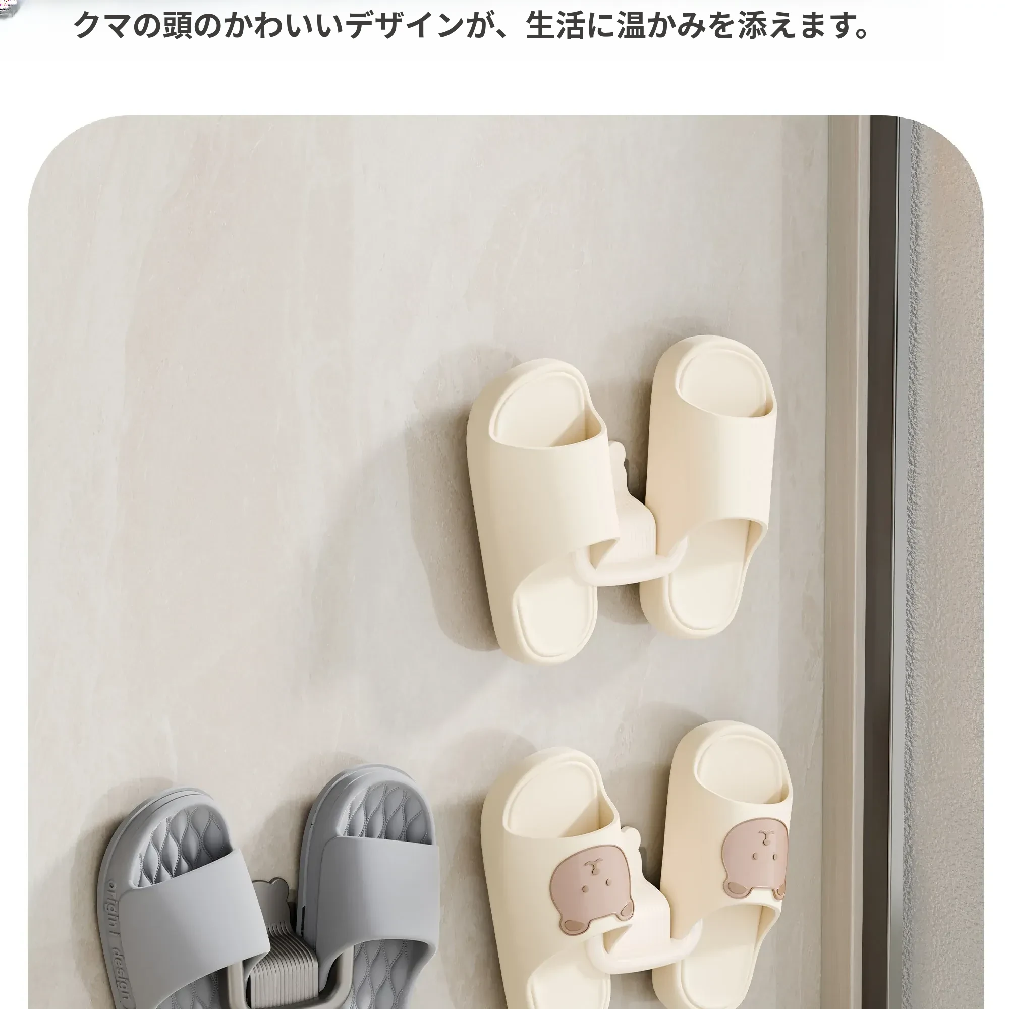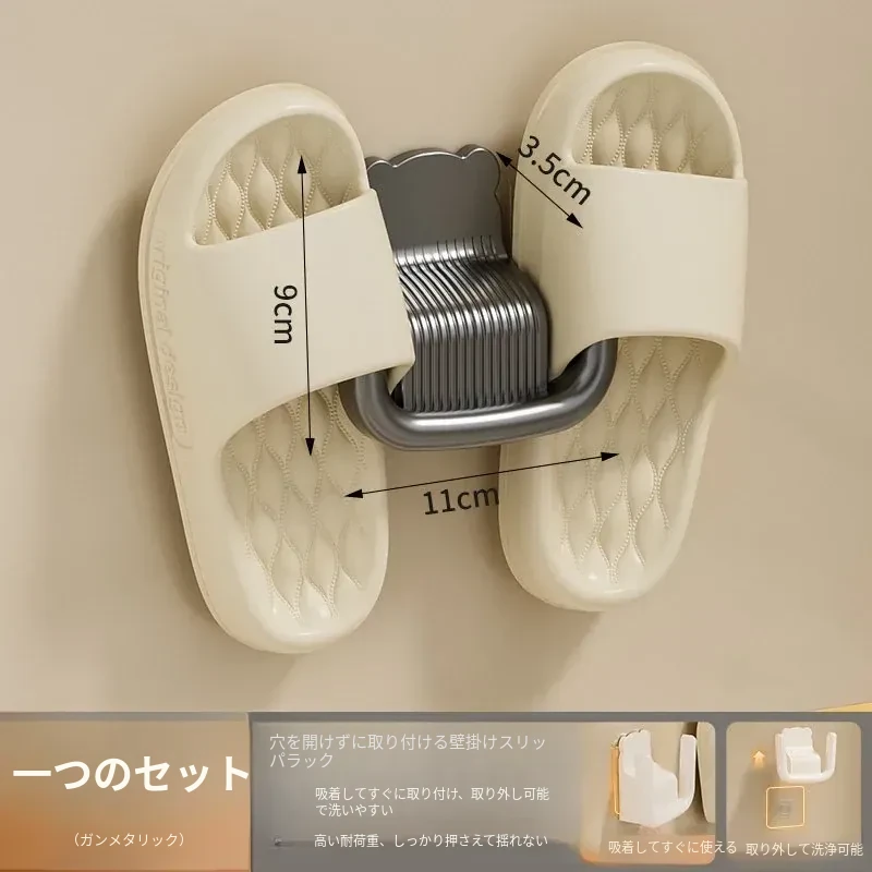 壁掛け浴室スリッパラック - トイレのドア裏に取り付けるだけで簡単収納!水切り機能付きで、湿気を防ぎ、清潔に保つ。バルコニーや衛生的なスペースを作るための理想的なアイテムです。