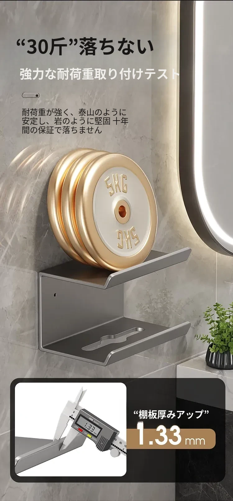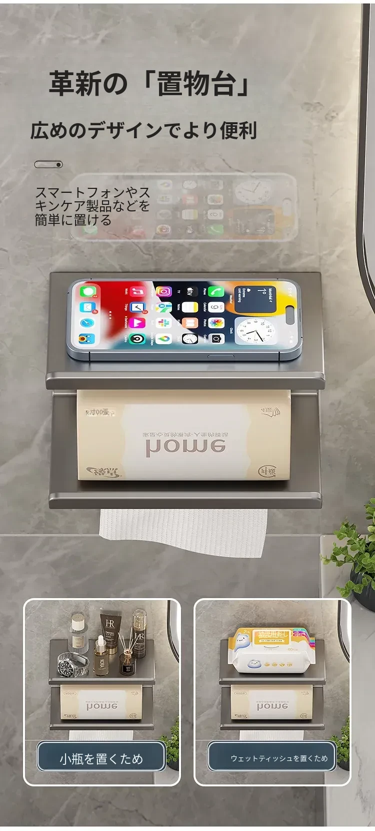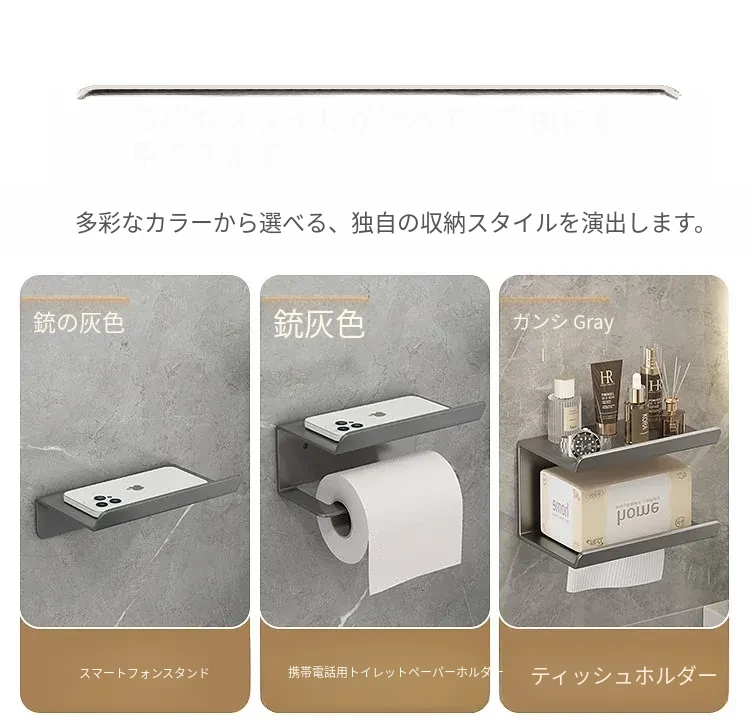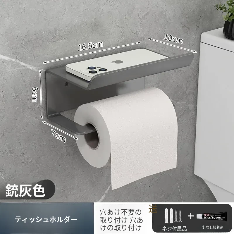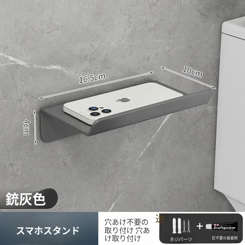 スマホトイレットペーパーホルダー - 穴あけ不要取り付け【ガンメタル】