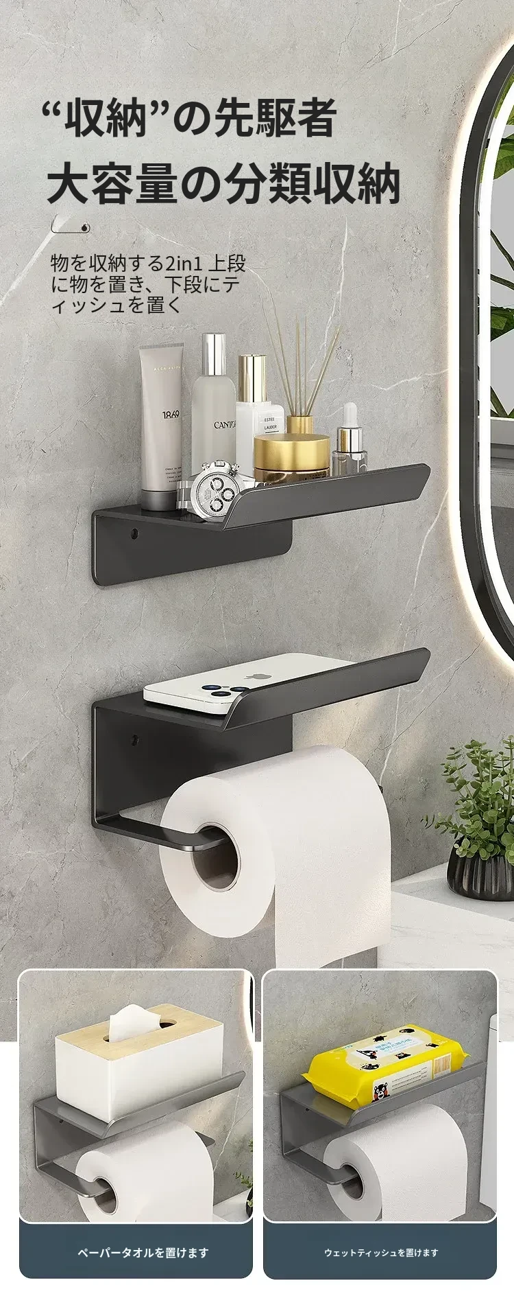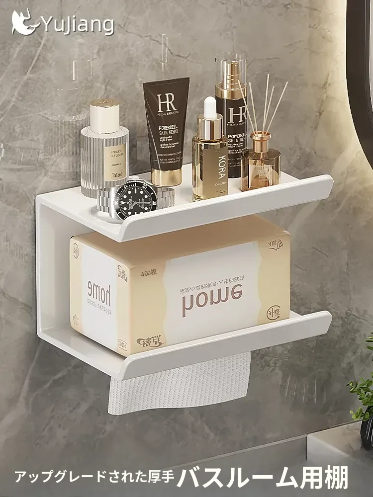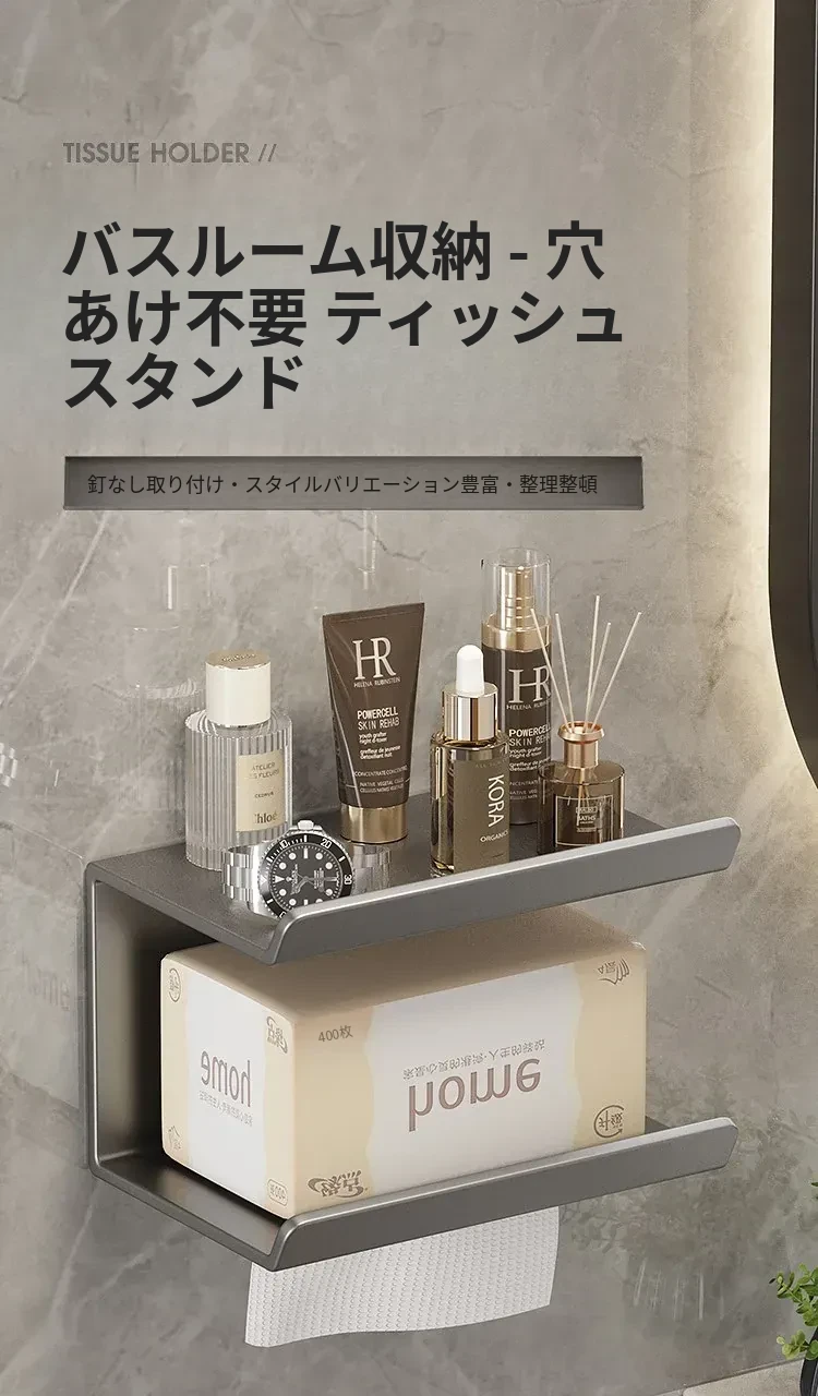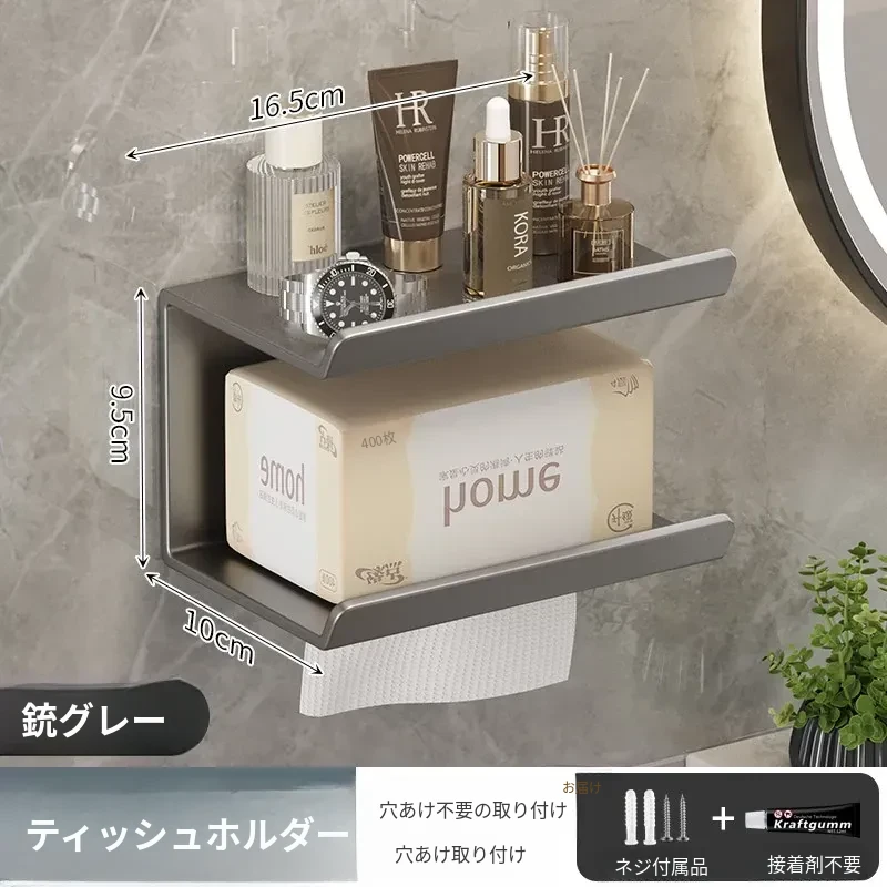 トイレ・バスルーム用壁掛けティッシュボックス|穴あけ不要で簡単取り付け|ティッシュ・トイレットペーパー収納ラック|スッキリ整理できるデザインでおしゃれ空間を演出!