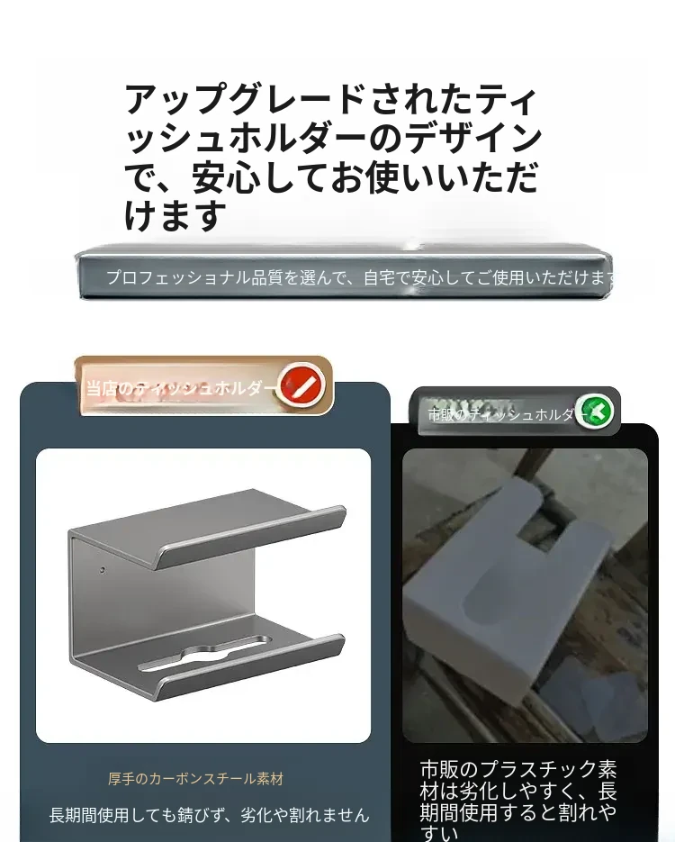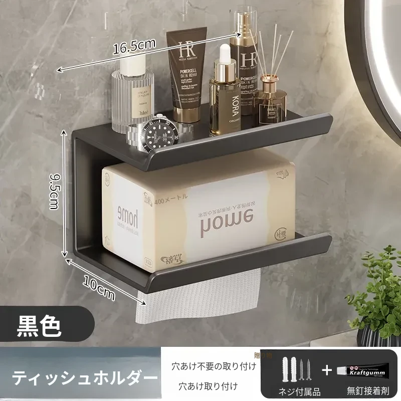 ティッシュホルダー - 穴あけ不要取り付け【ブラック】