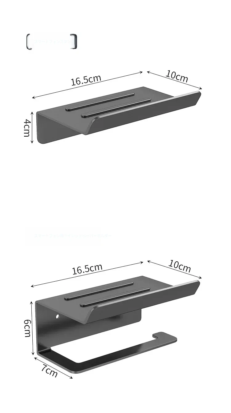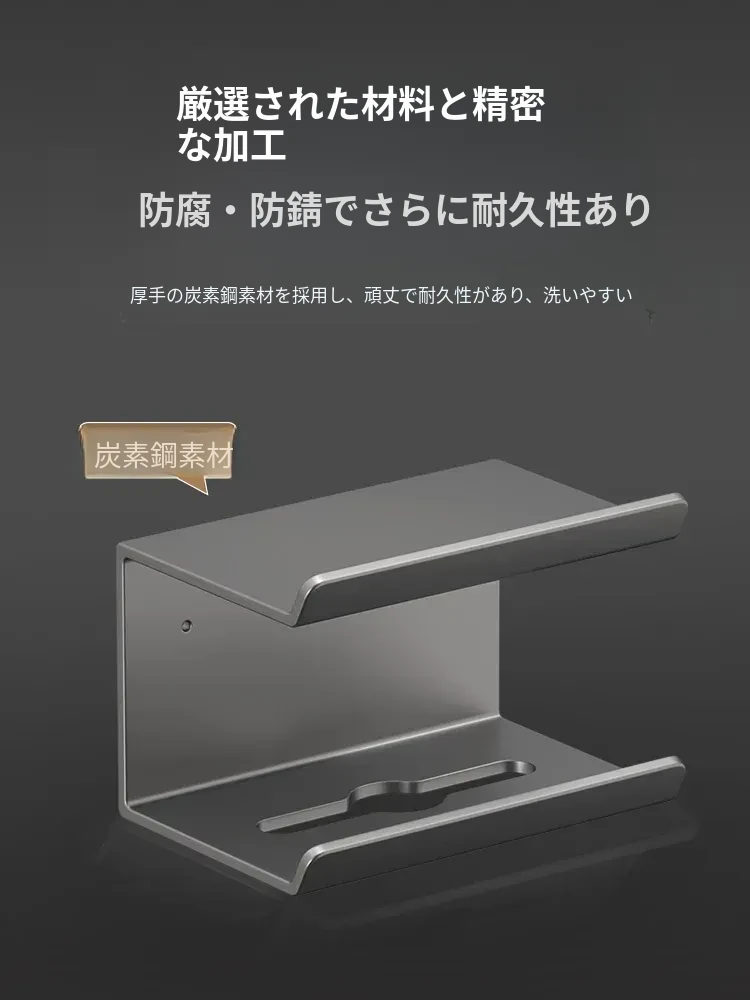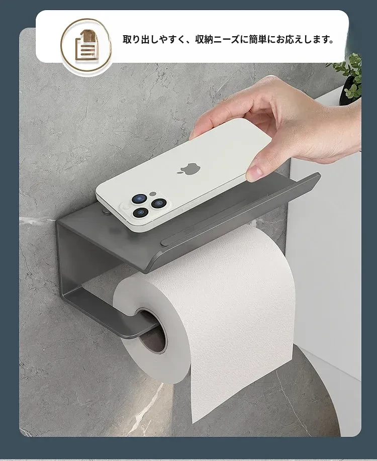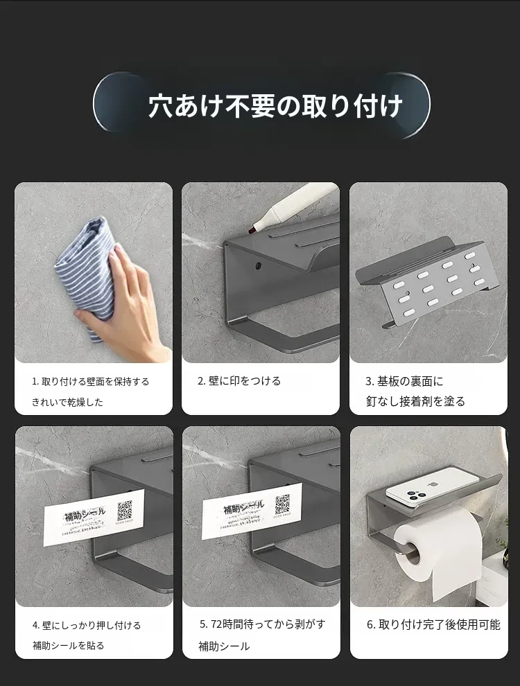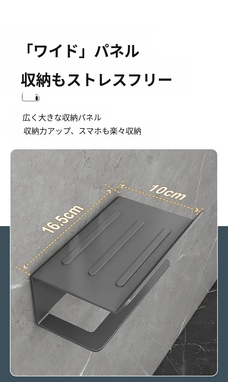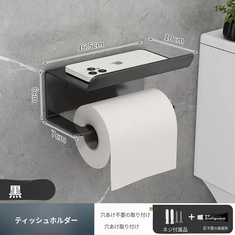 スマホトイレットペーパーホルダー - 穴あけ不要取り付け【ブラック】