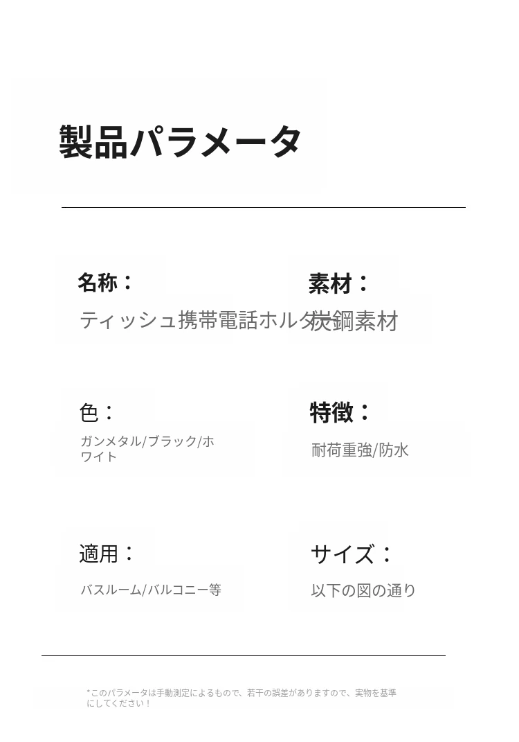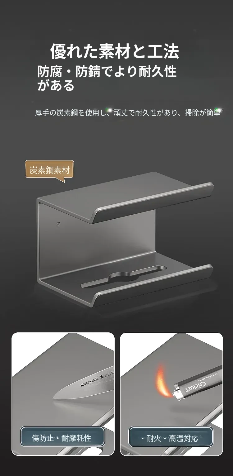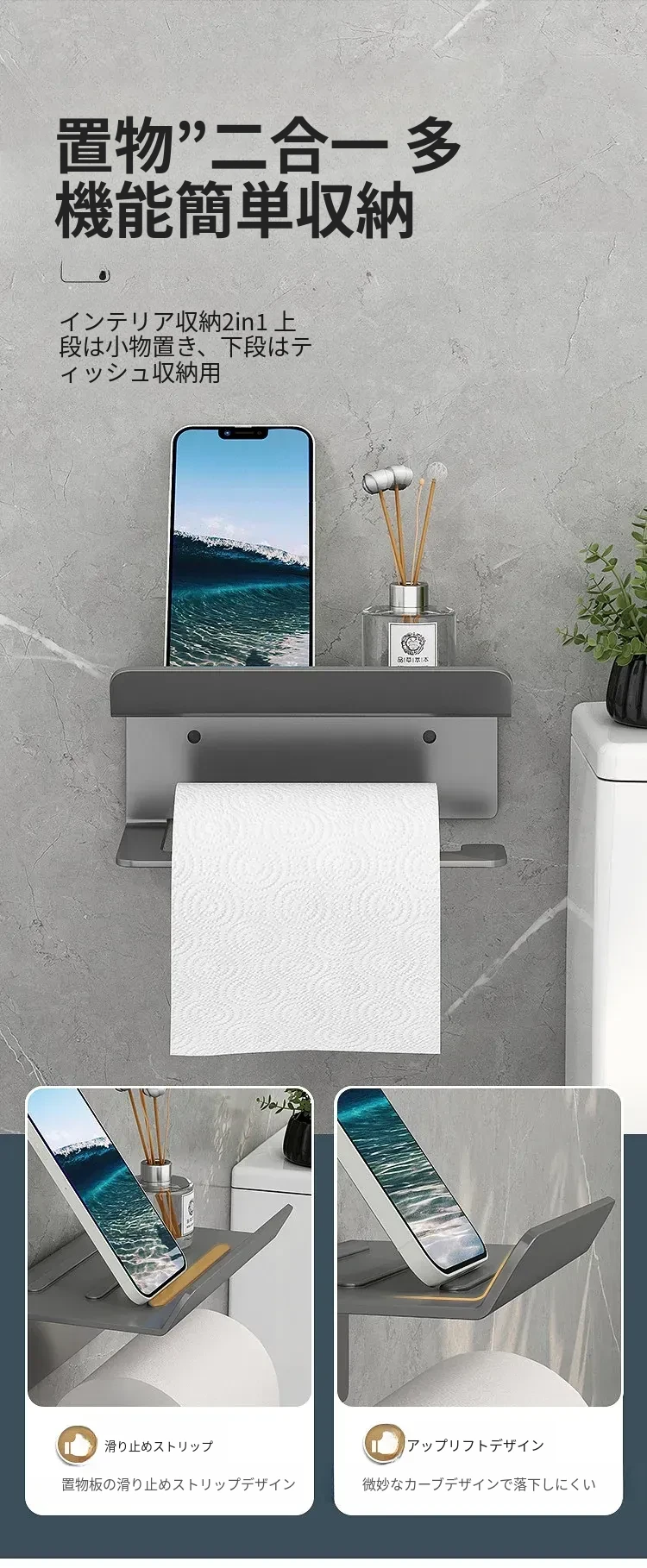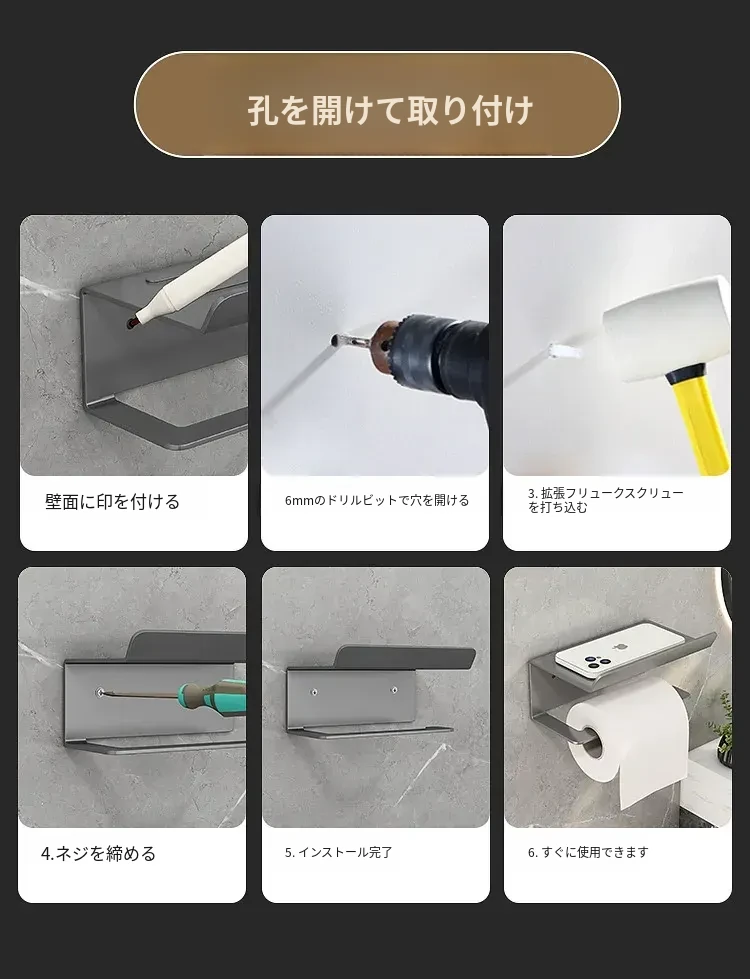 スマホトイレットペーパーホルダー - 穴あけ不要取り付け【ブラック】