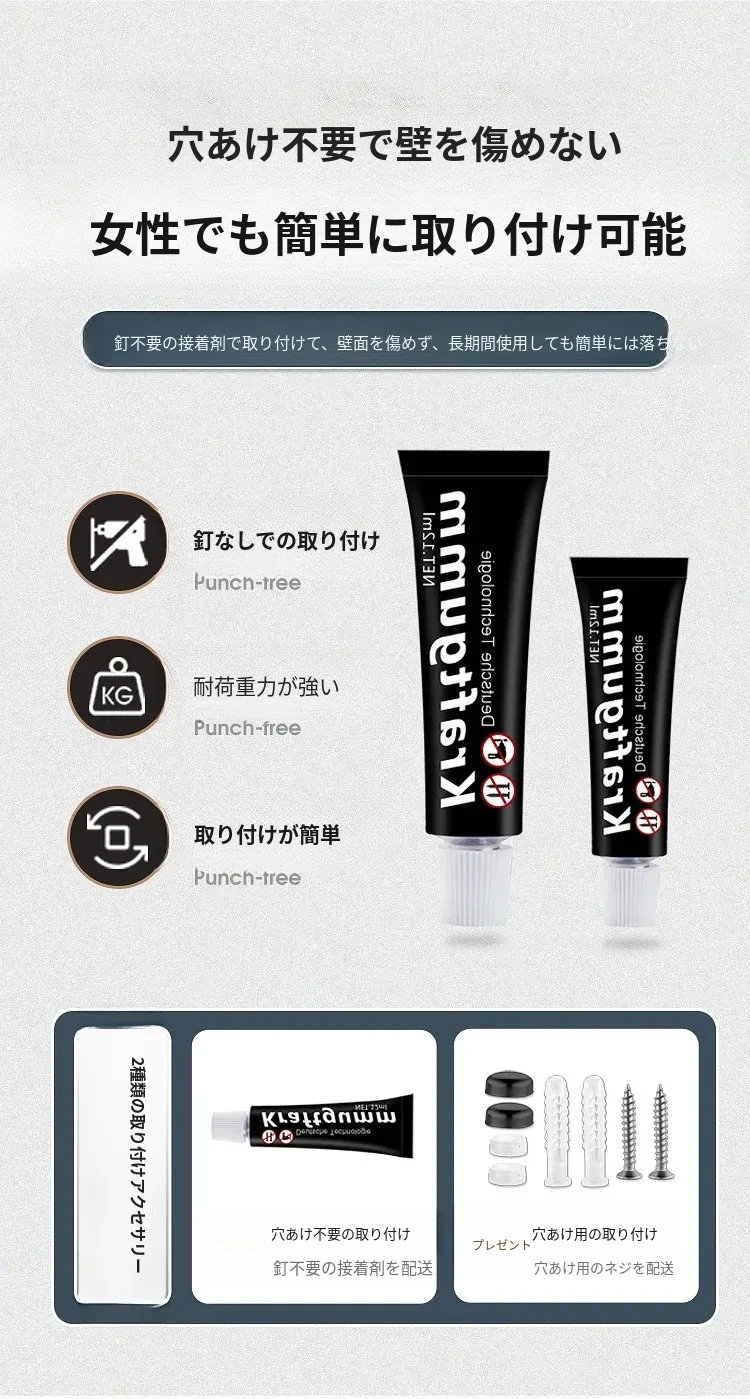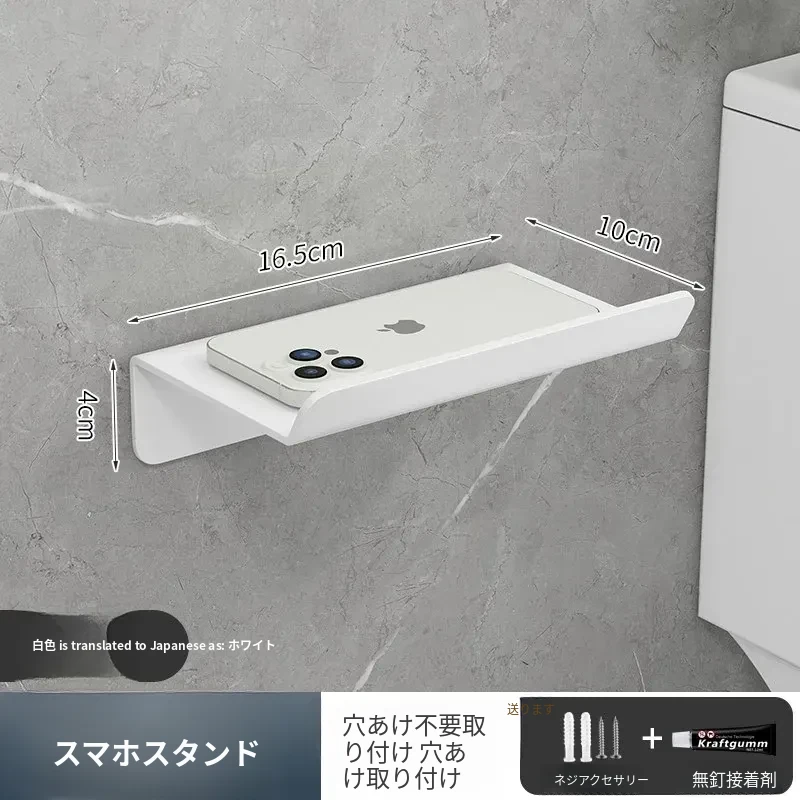 スマホトイレットペーパーホルダー - 穴あけ不要取り付け【ホワイト】