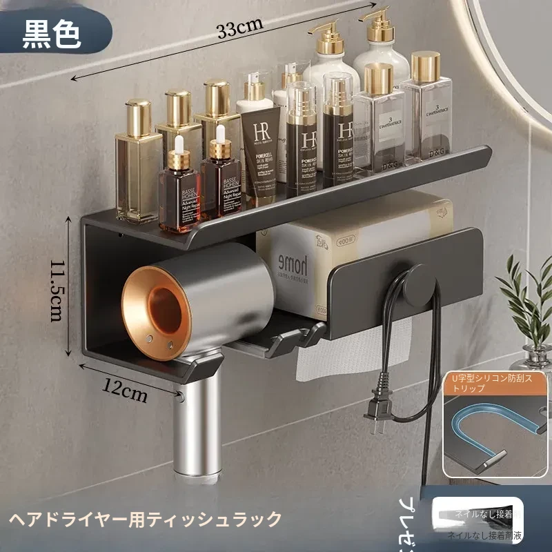 ヘアドライヤー用ティッシュホルダー - 穴あけ不要取り付け【ブラック】