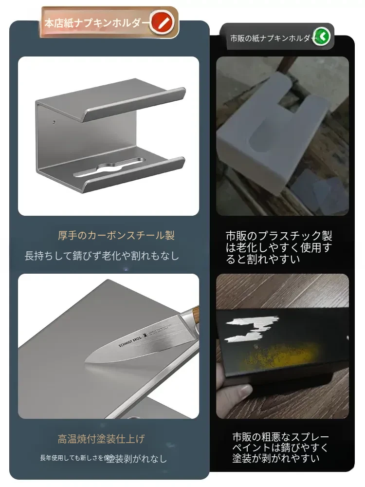 ティッシュホルダー - 穴あけ不要取り付け【ガンメタル】