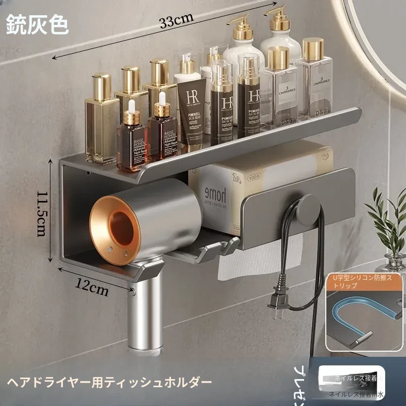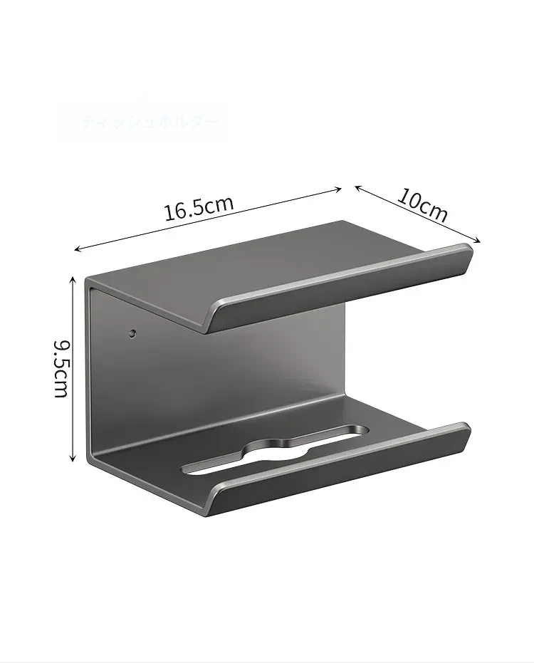 ヘアドライヤー用ティッシュホルダー - 穴あけ不要取り付け【ガンメタル】