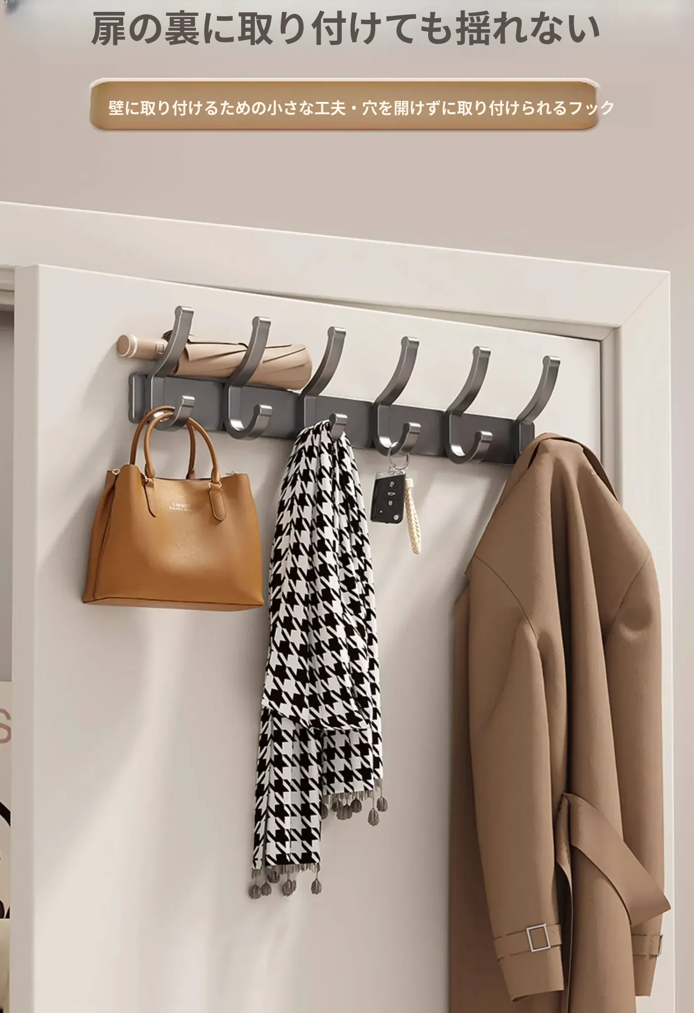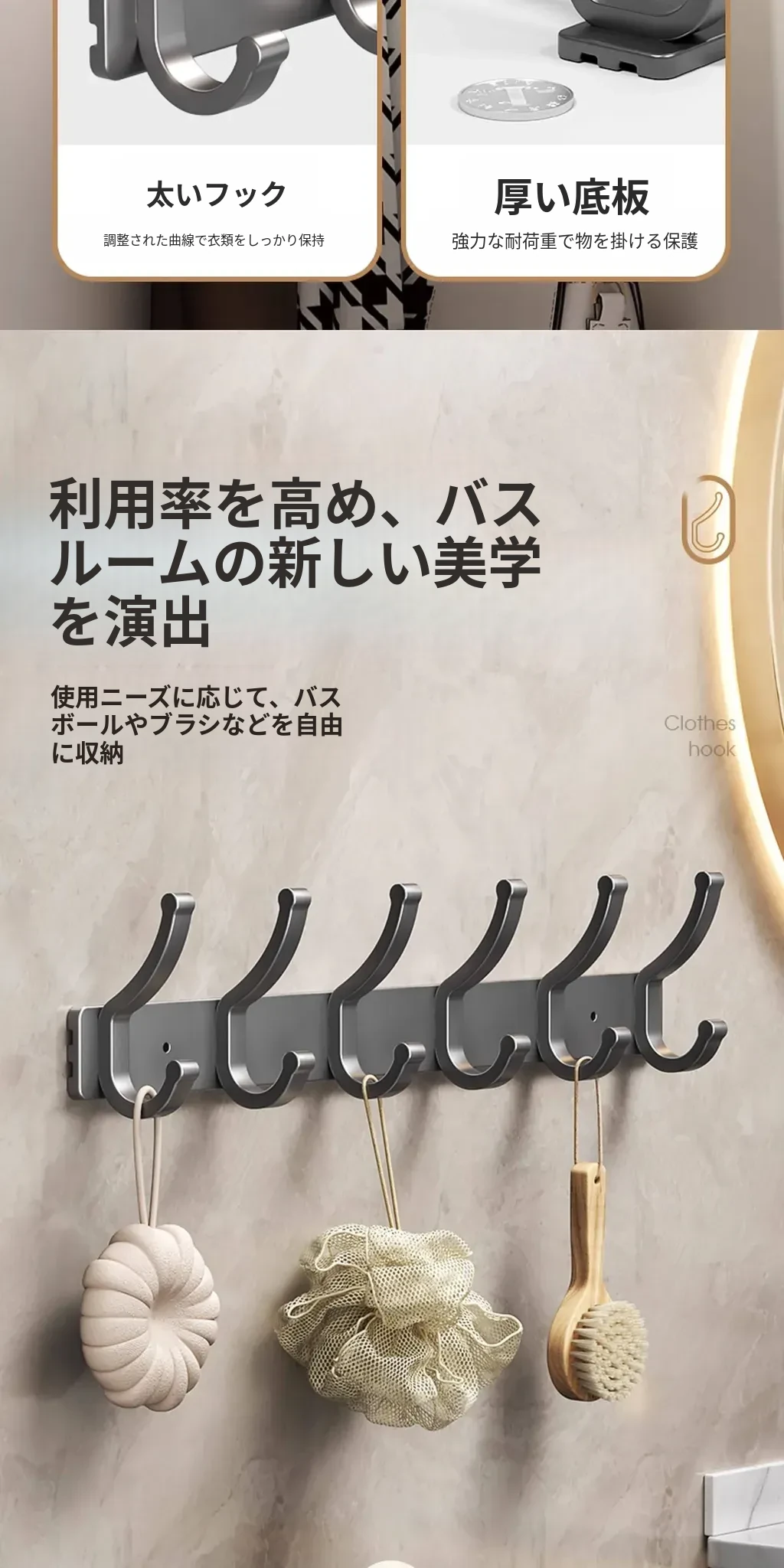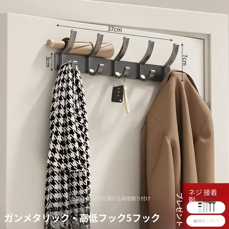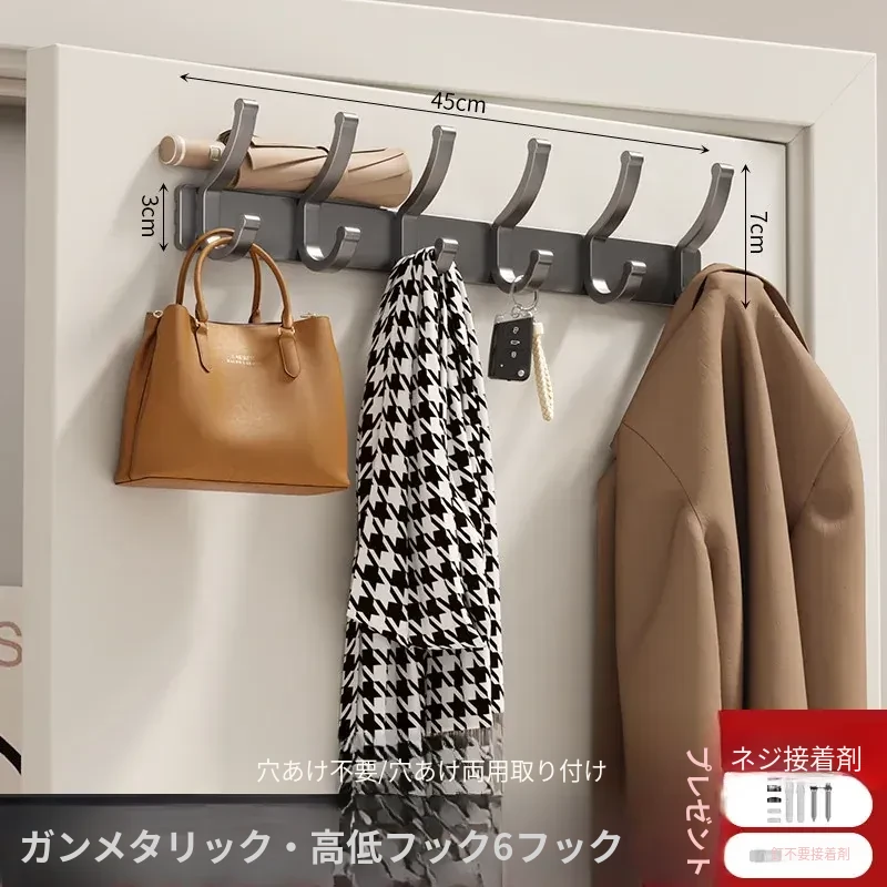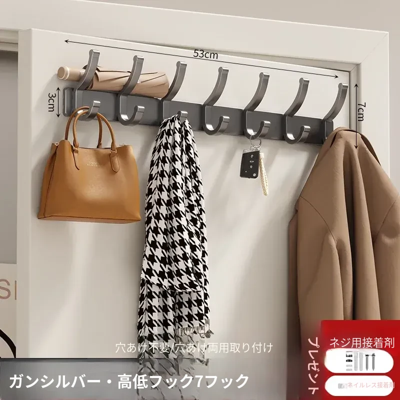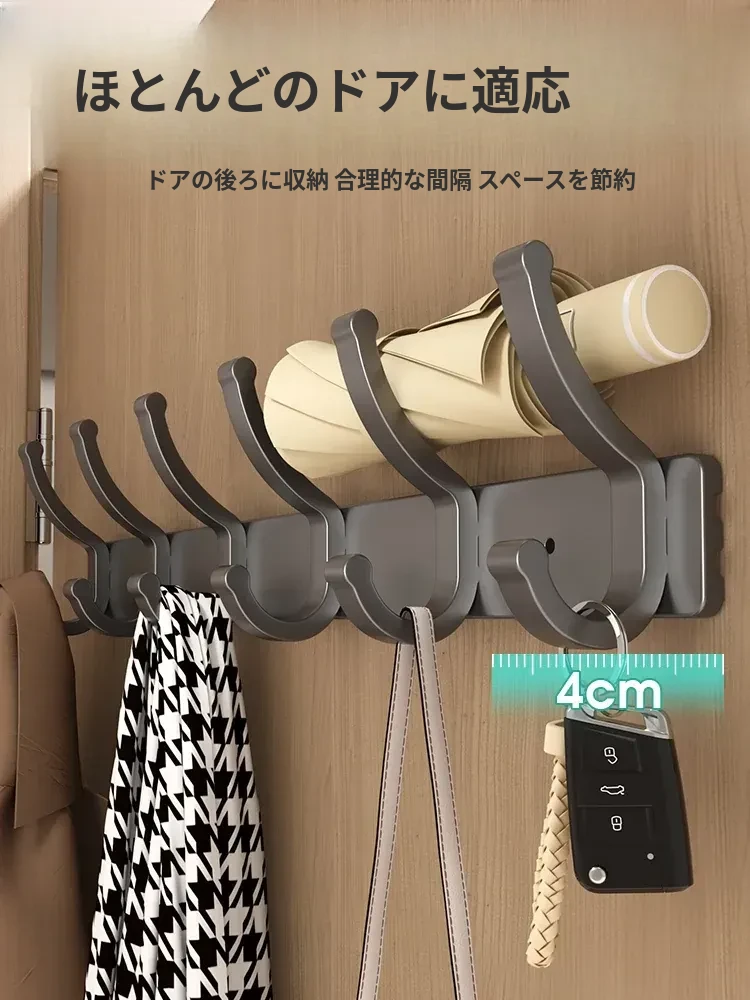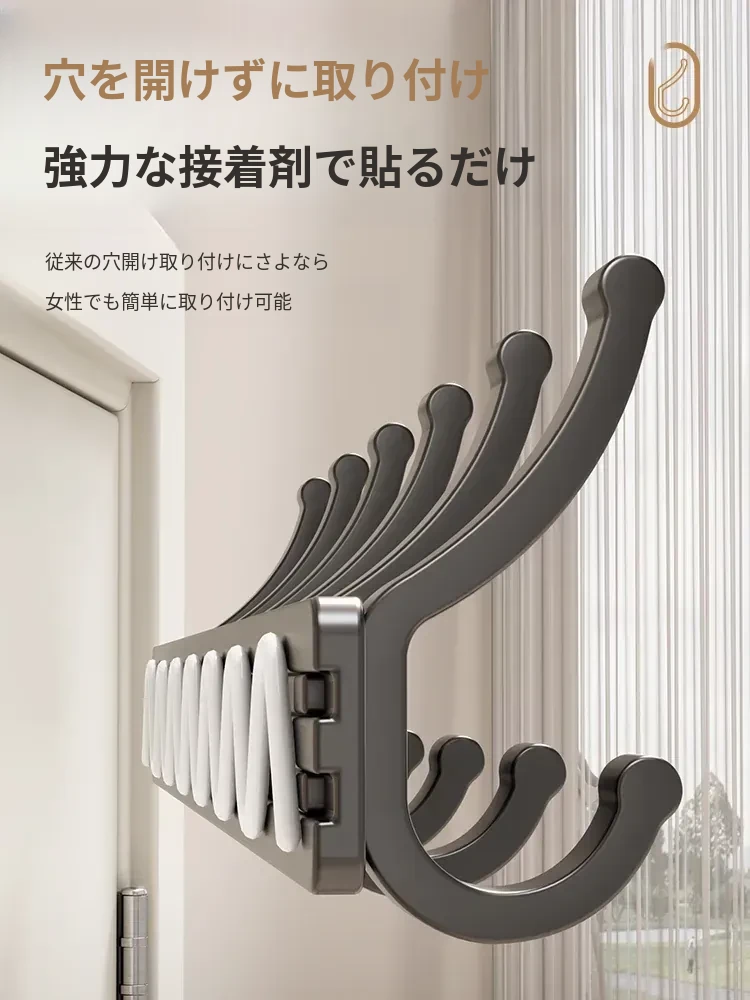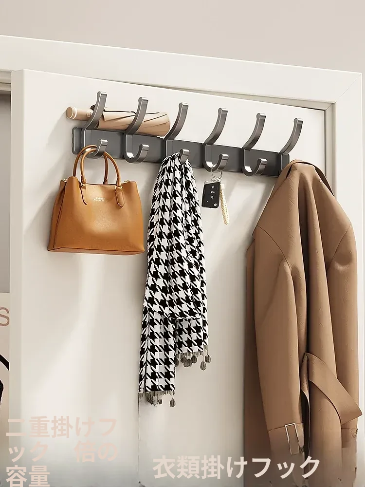 壁掛けフック付きハンガー!トイレやバスルームに最適なノー打孔デザイン。ドアの裏や壁に簡単に取り付け、服や小物をスッキリ整理!スペースを有効活用して、生活をもっと快適に!