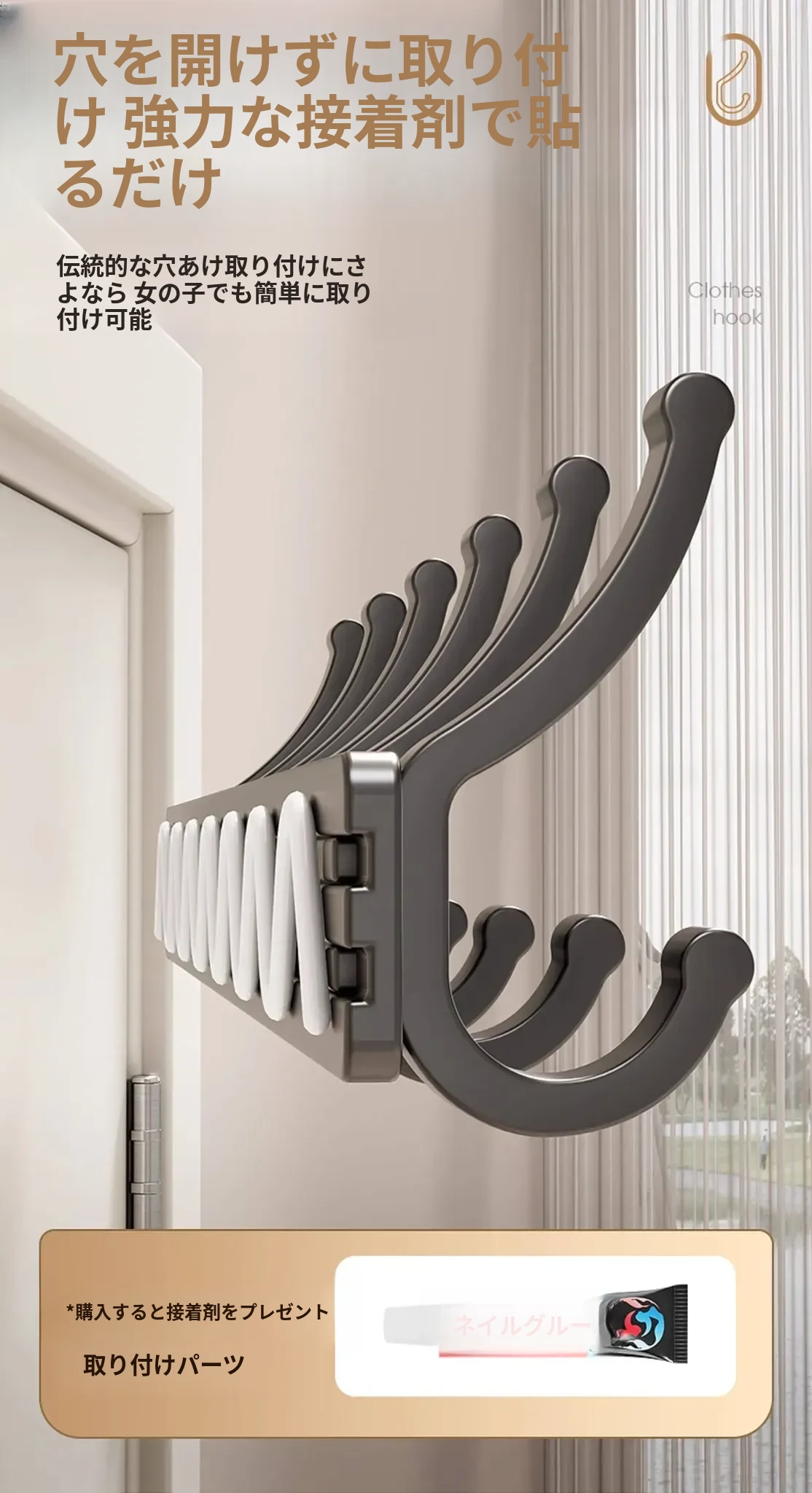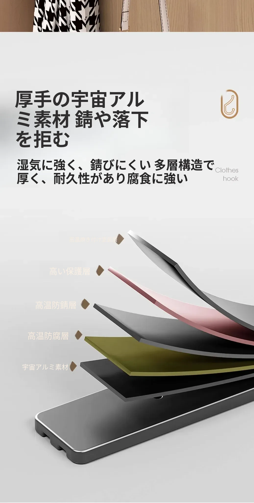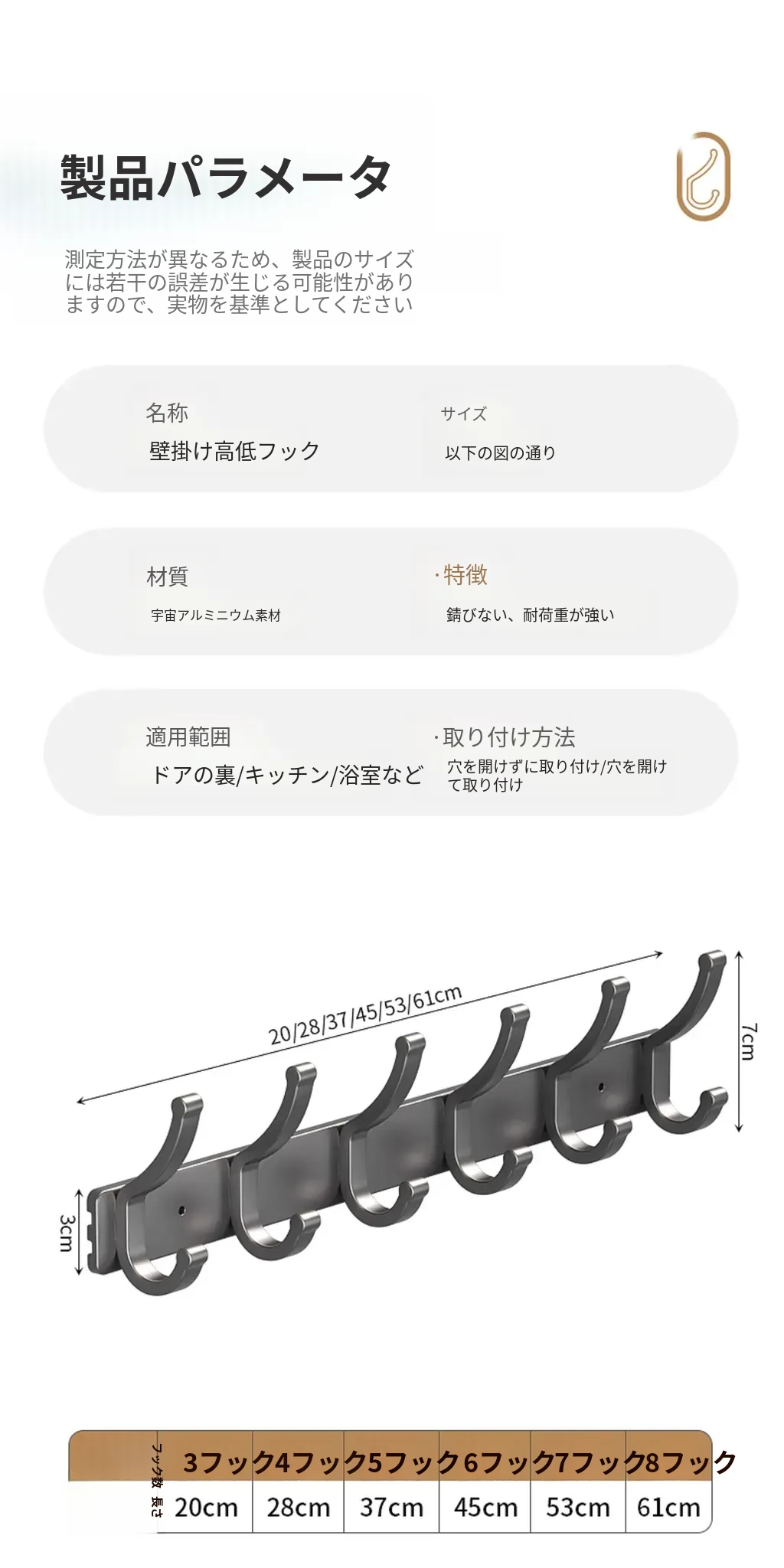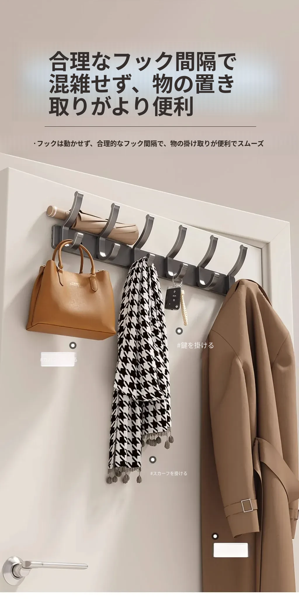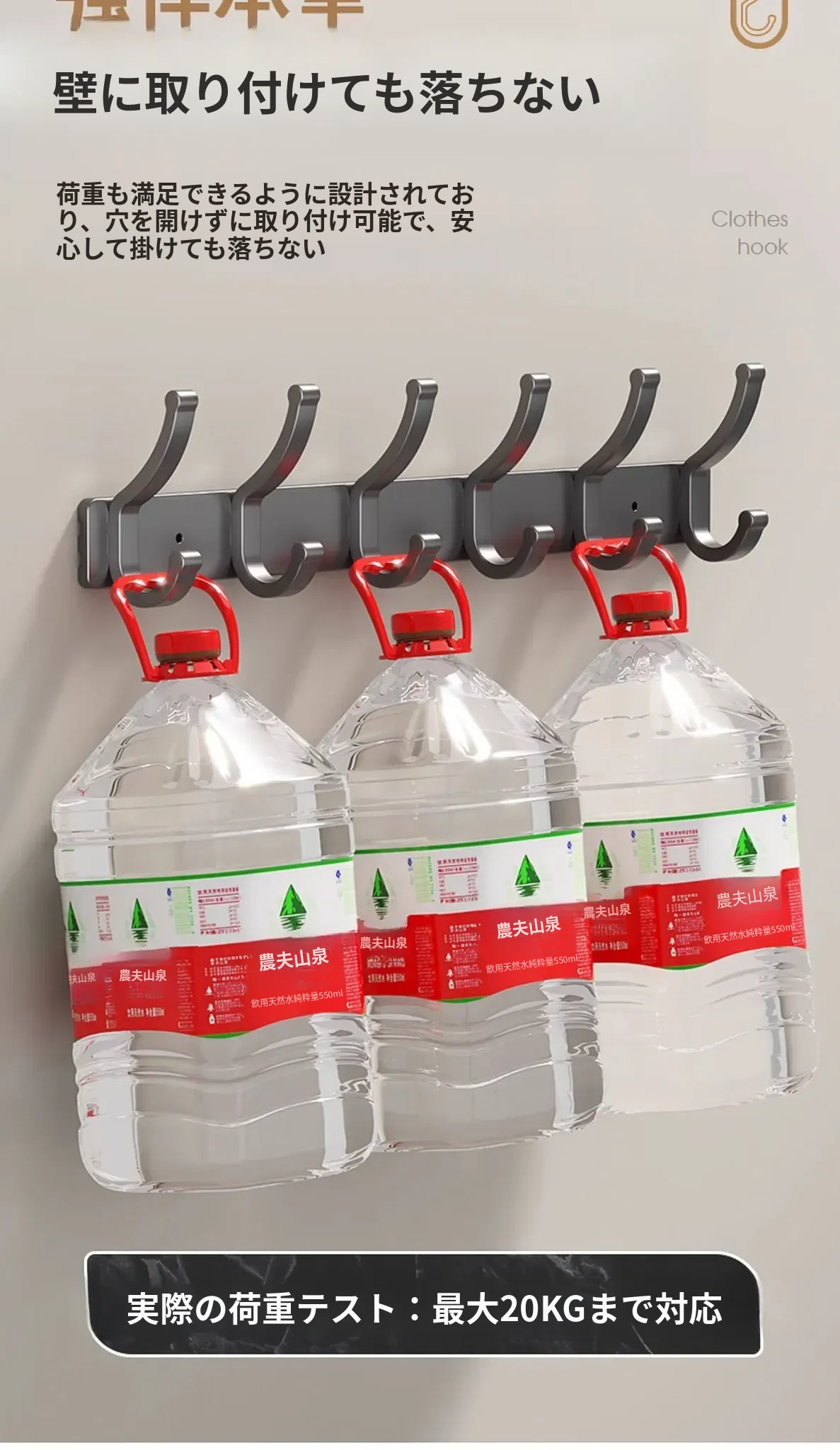 壁掛けフック付きハンガー!トイレやバスルームに最適なノー打孔デザイン。ドアの裏や壁に簡単に取り付け、服や小物をスッキリ整理!スペースを有効活用して、生活をもっと快適に!