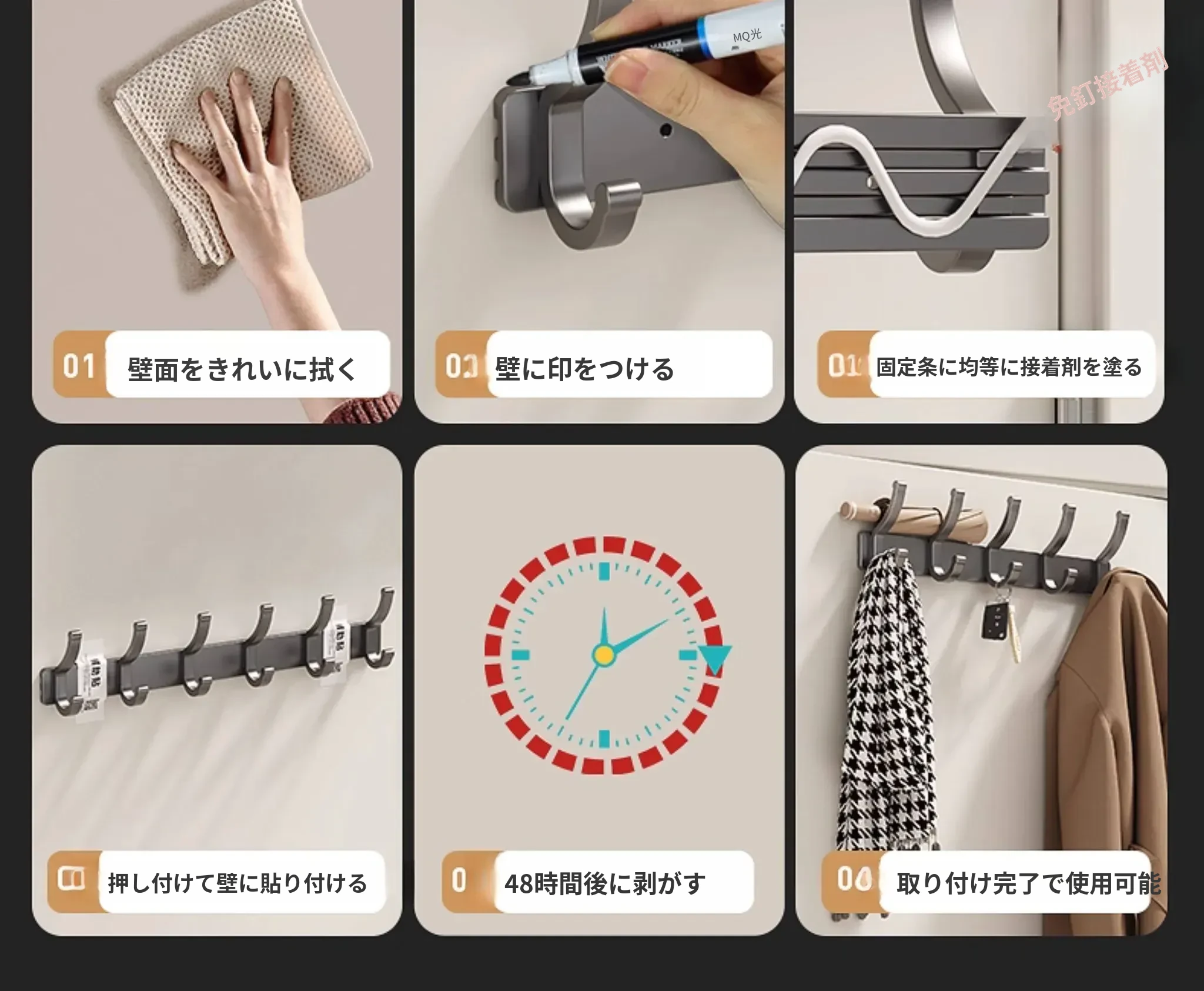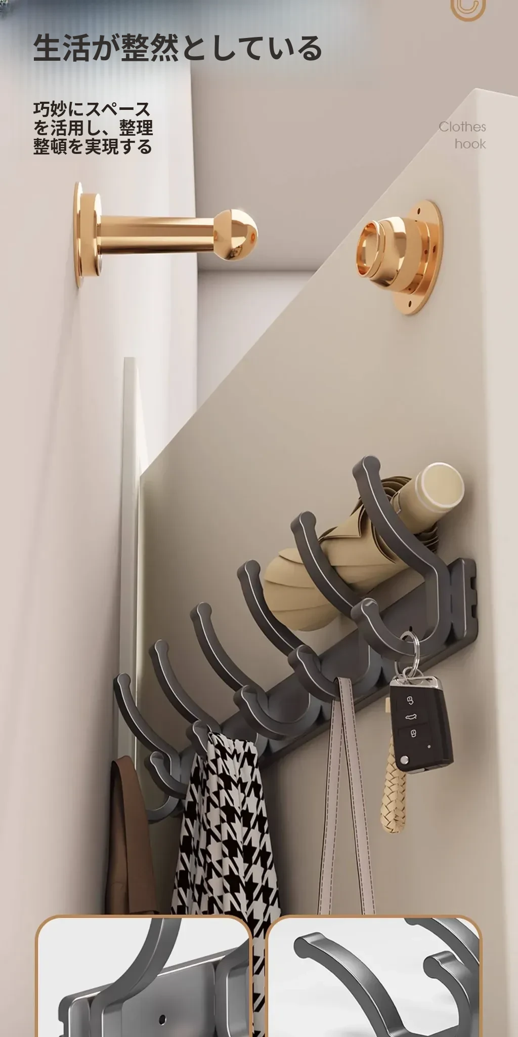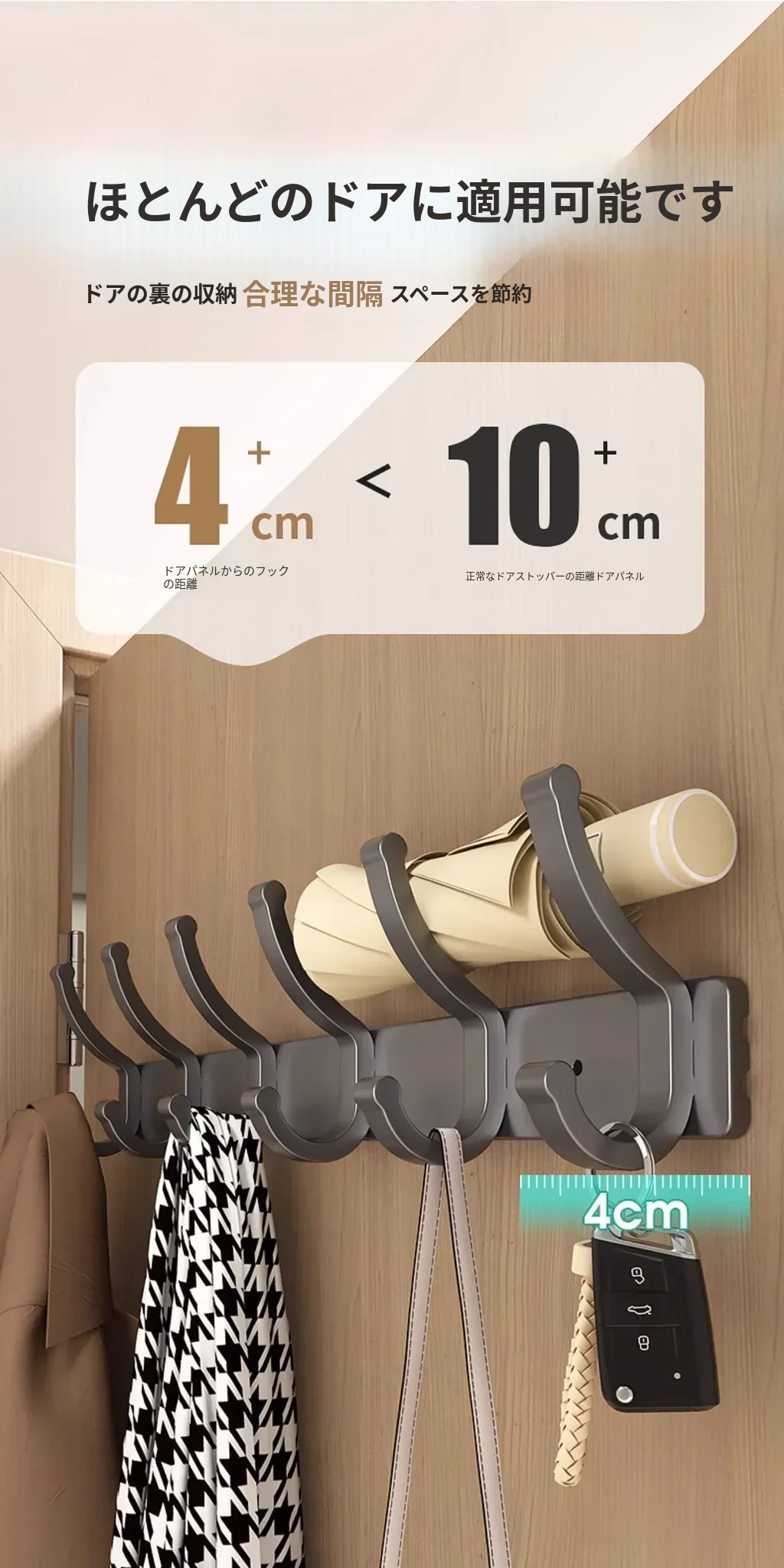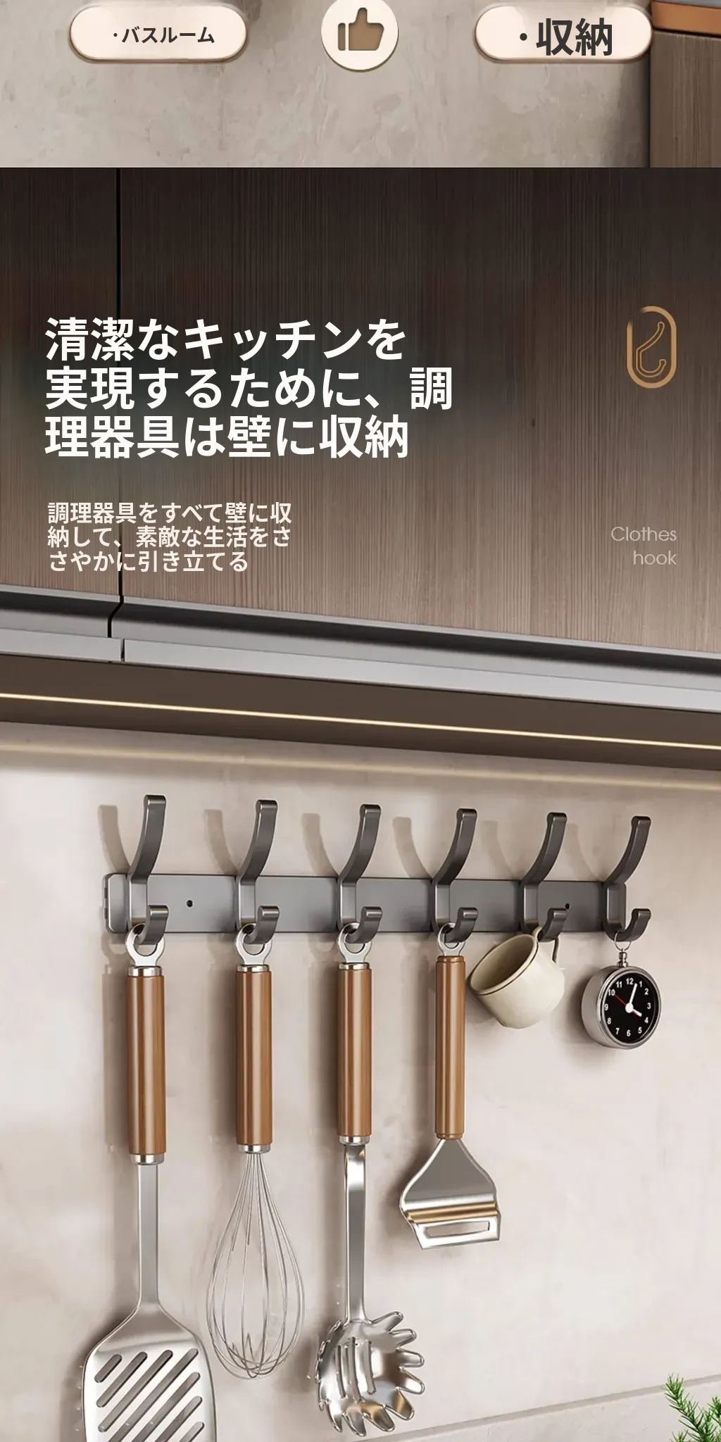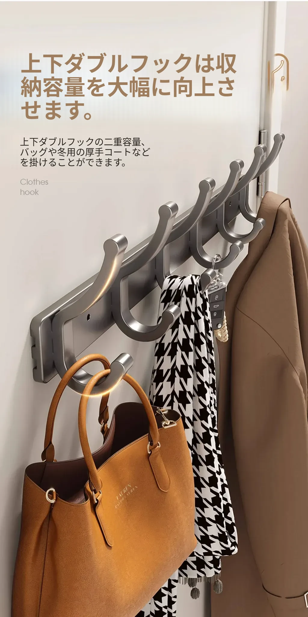 壁掛けフック付きハンガー!トイレやバスルームに最適なノー打孔デザイン。ドアの裏や壁に簡単に取り付け、服や小物をスッキリ整理!スペースを有効活用して、生活をもっと快適に!