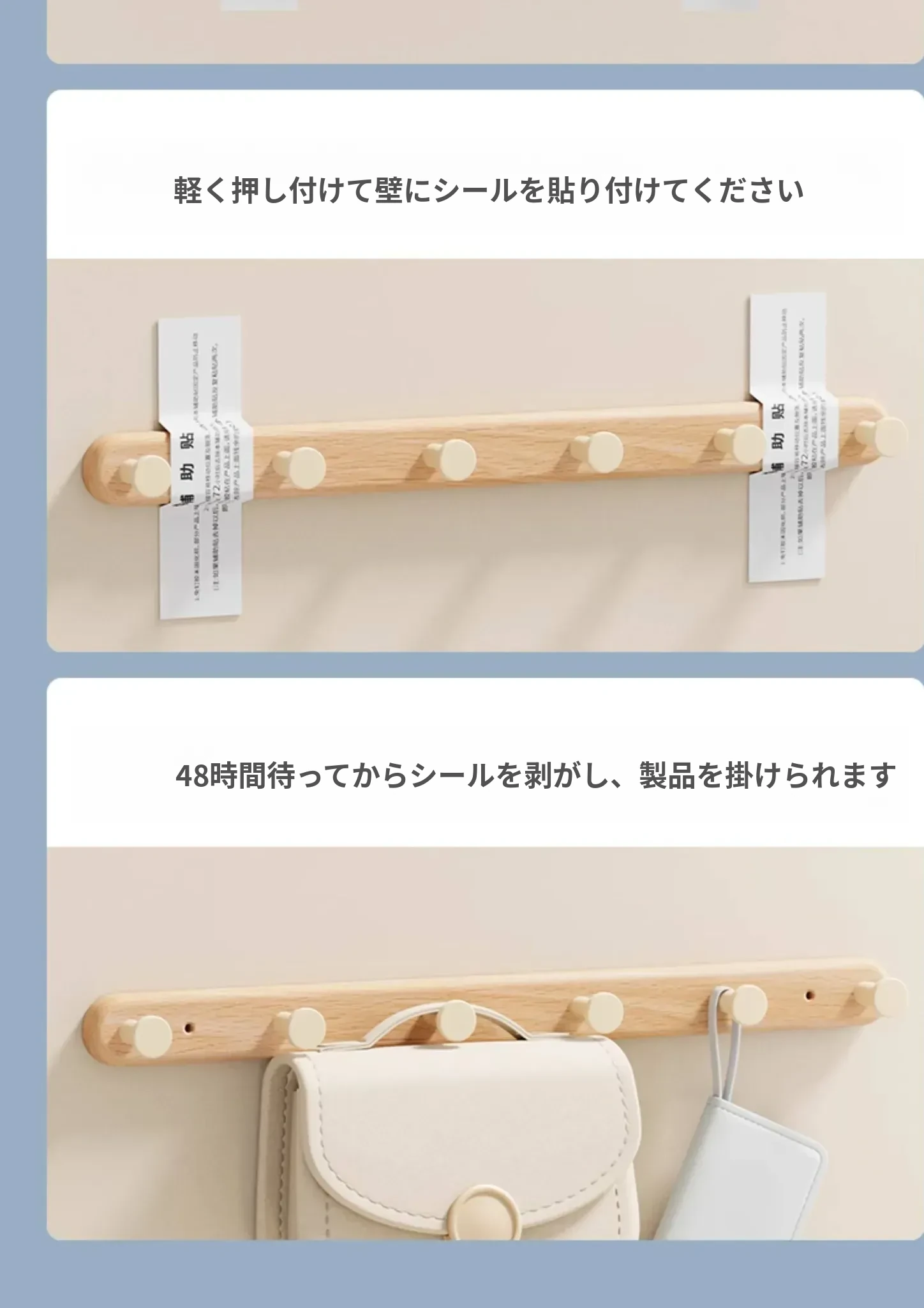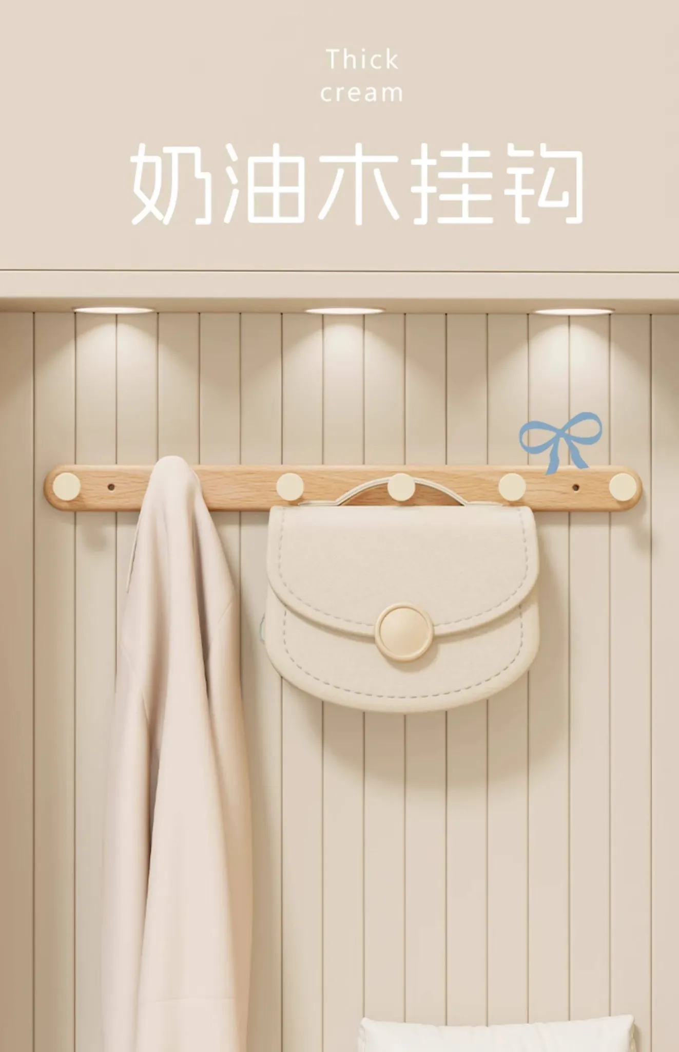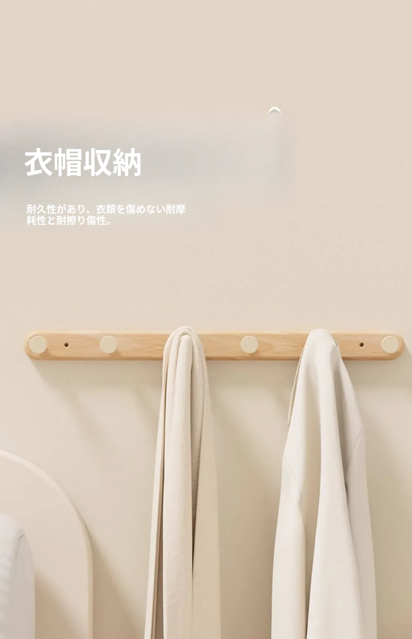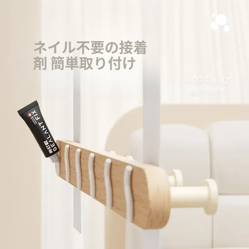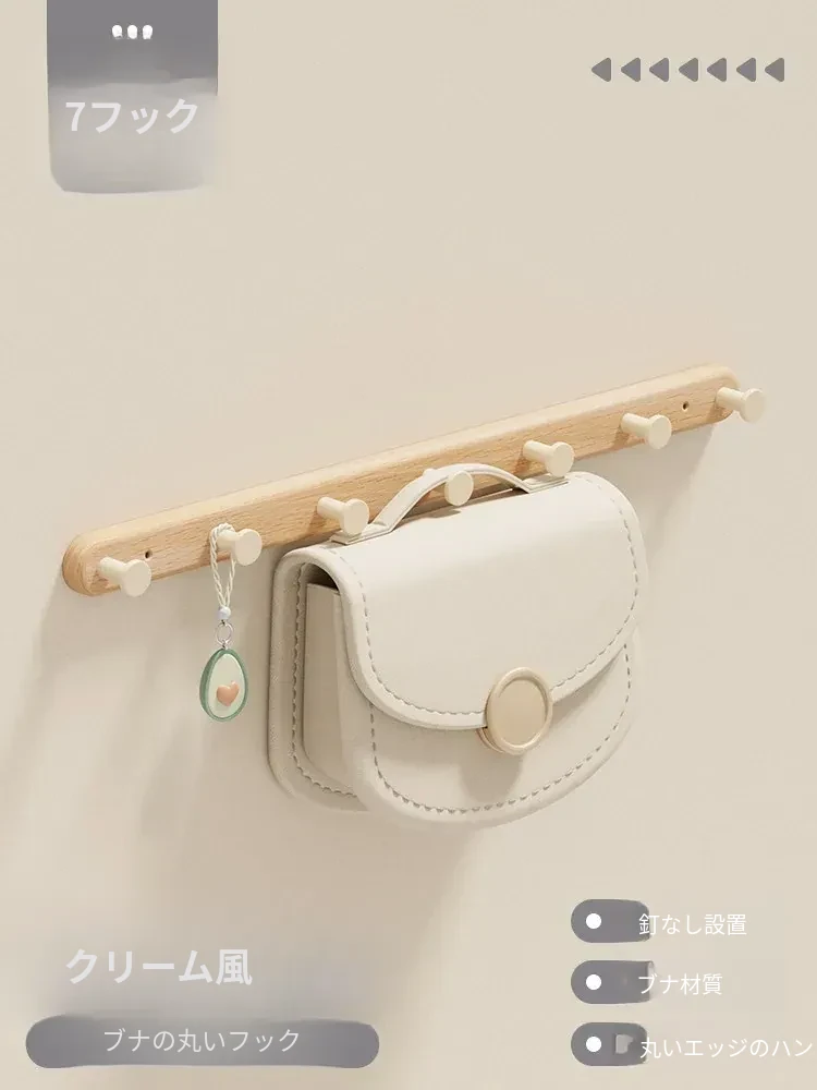壁掛けフック コートハンガー タオル掛け クリーム風デザイン 穴なし取り付け可能 バスルーム用 強力粘着 木製ハットフック おしゃれで実用的、スペースを有効活用!