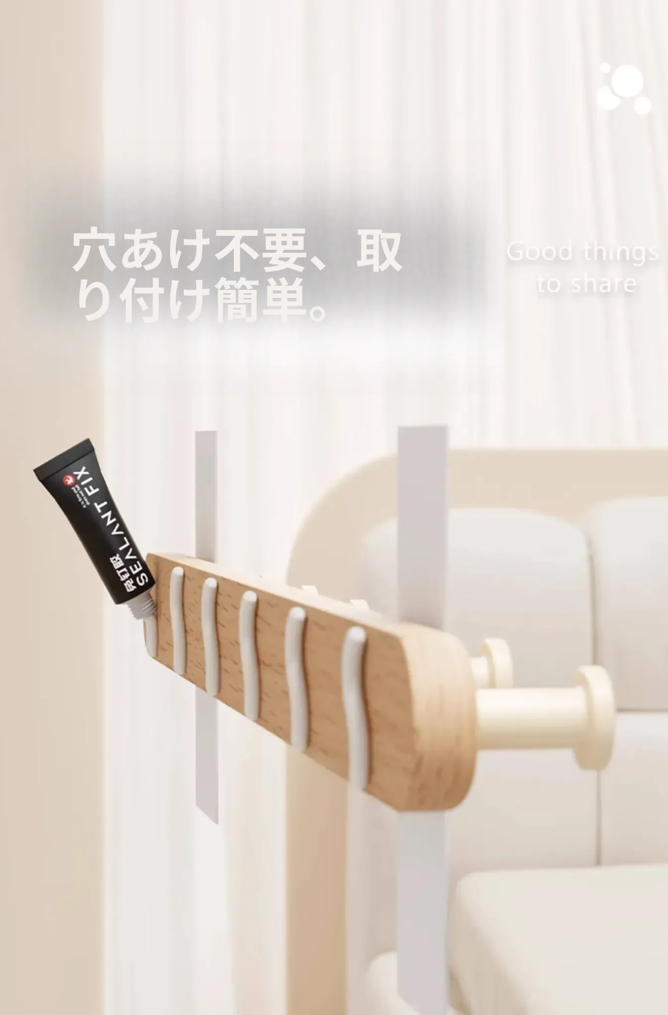 ブナ製の丸いフッククリーム【6フック】