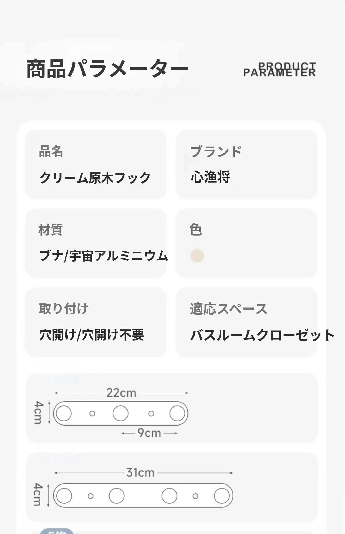 ブナ製の丸いフッククリーム【4フック】