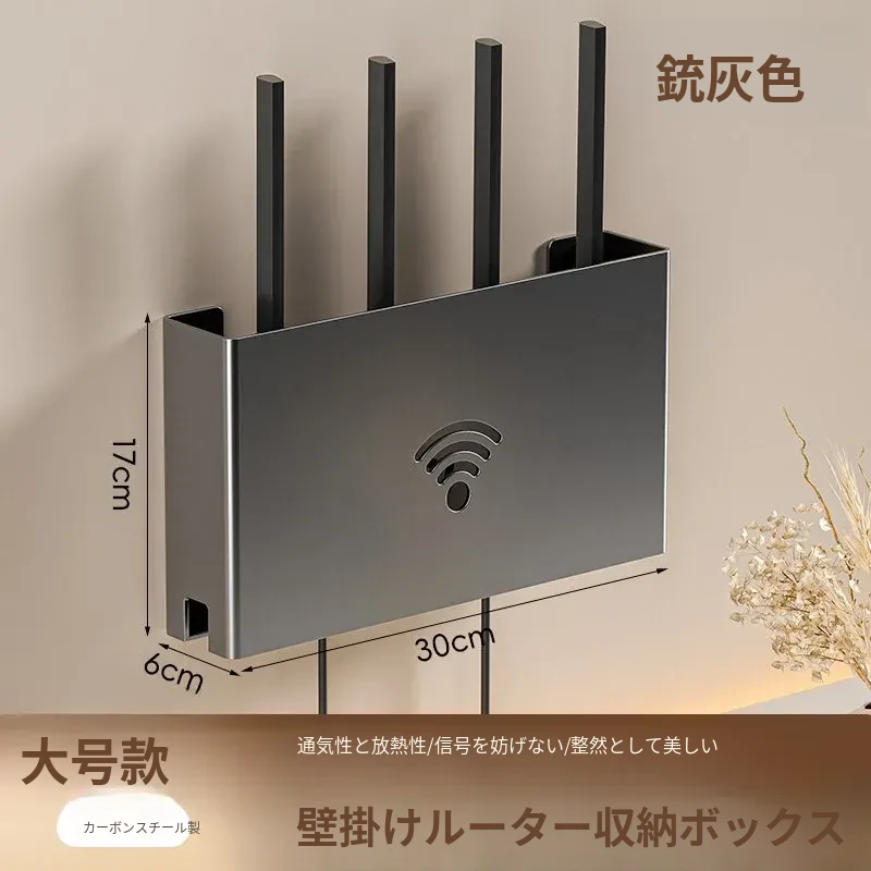 【グレー-大サイズ30cm】壁掛けルーター収納ボックス