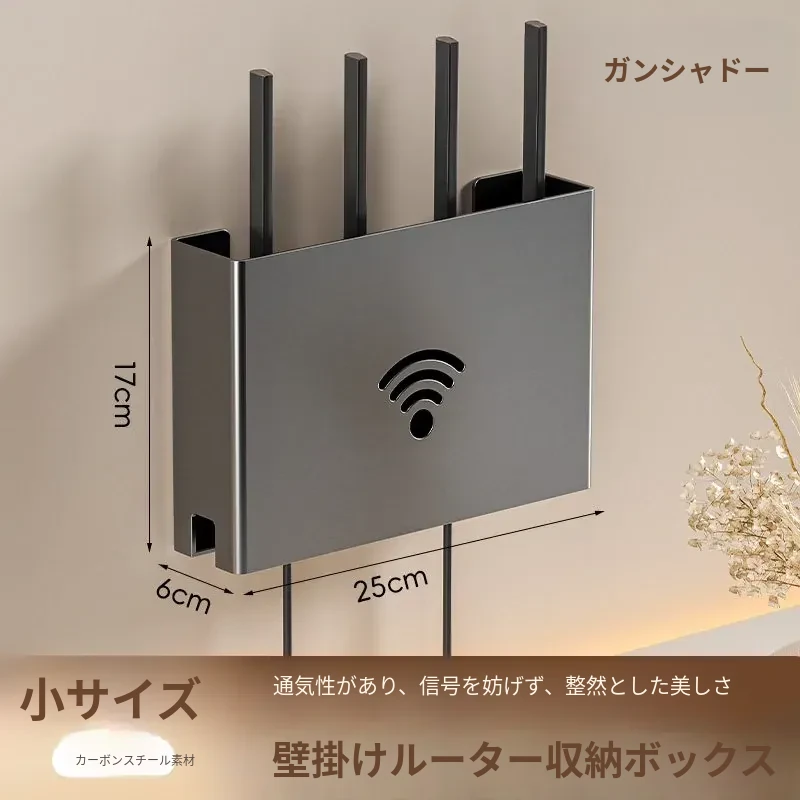 【グレー-小サイズ25cm】壁掛けルーター収納ボックス