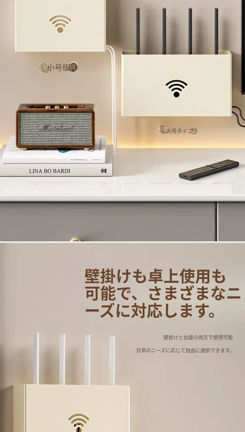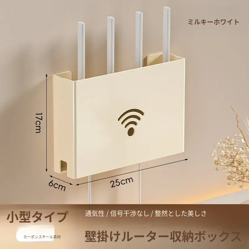 【クリーム-小サイズ25cm】壁掛けルーター収納ボックス
