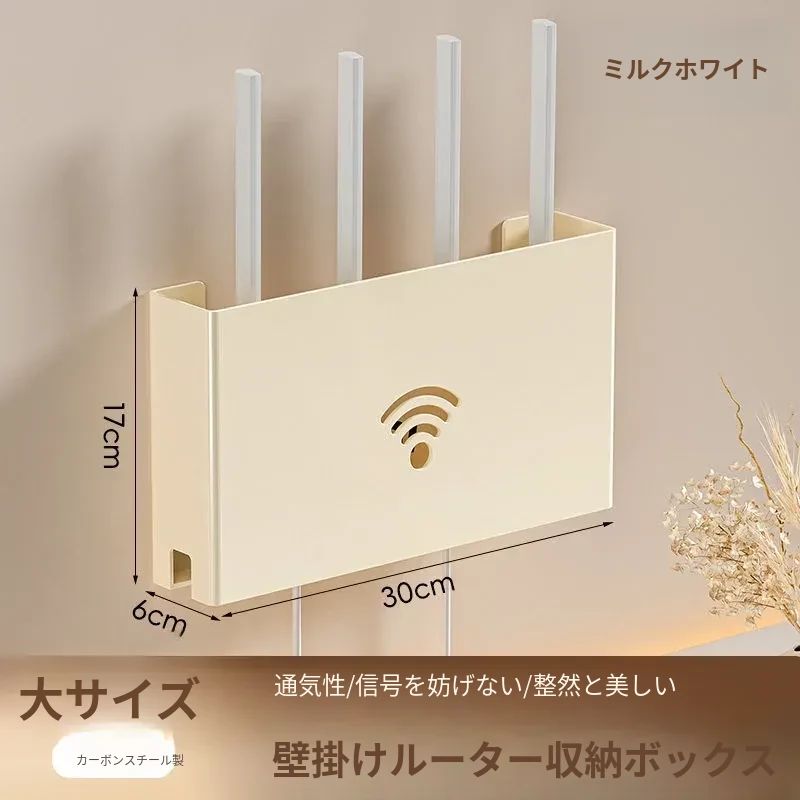 【クリーム-大サイズ30cm】壁掛けルーター収納ボックス