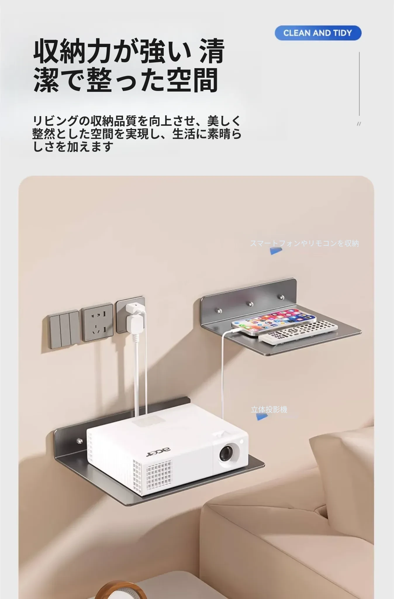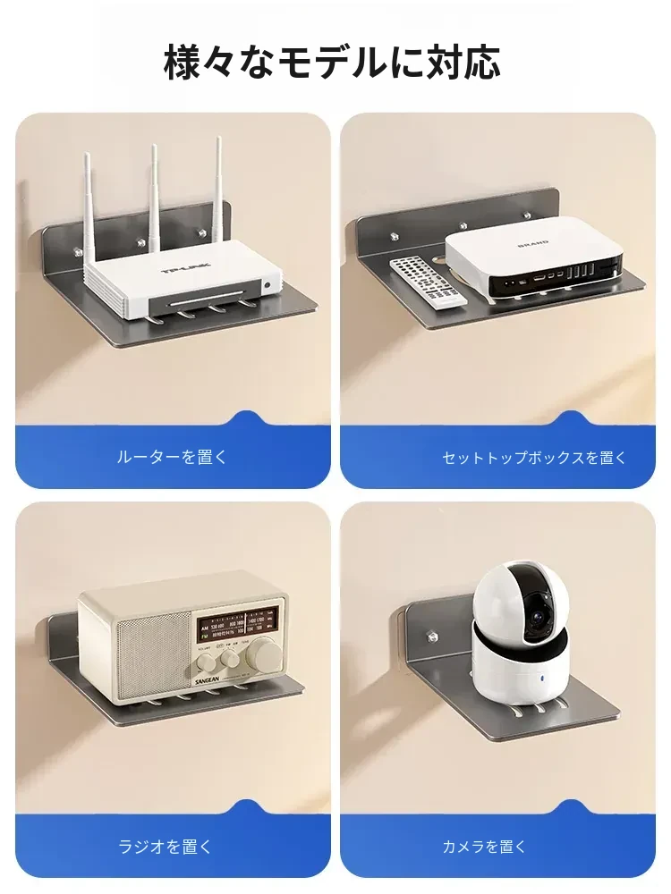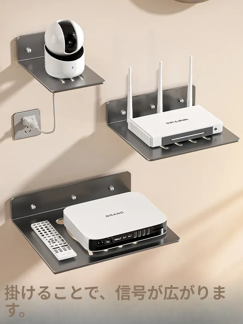 ルーター収納ラック 壁掛けマウント 便利なセットトップボックス・プロジェクター・監視カメラ用 固定器 Wi-Fi収納棚でスッキリ整理!空間を有効活用し、快適な暮らしを実現。